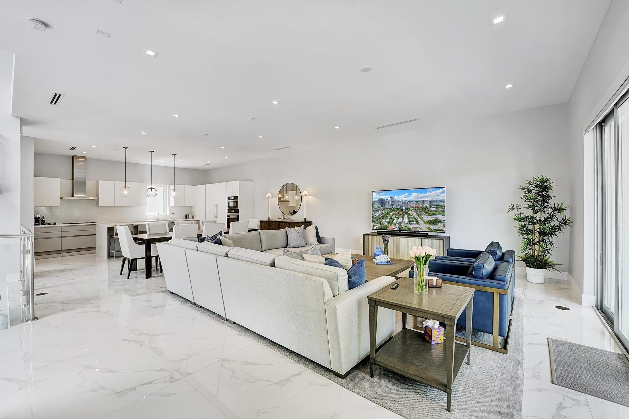 Nestled in the center of it all, walk to everything. This 3/3 new construction corner townhouse is all you need. The main level is set for entertaining with a 27 x 41 kitchen / living / dining combo that opens to a 11 x 32 patio, 10-foot ceilings, huge floor to ceiling windows to let in all that sunshine. The kitchen is fit for a chef, with a huge waterfall center island, Miele appliances, natural gas cooktop and a huge pantry. All the bedrooms are en-suite and well appointed. There is an elevator for easy accessibility to each floor. On the ground floor there is a huge paver patio and a heated splash pool. The oversized two-car garage is equipped with an EV charger. Automatic shades, tankless hot water heater and a whole house generator. Why buy something old, this one is almost new!!