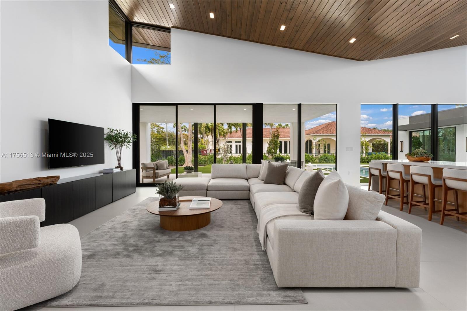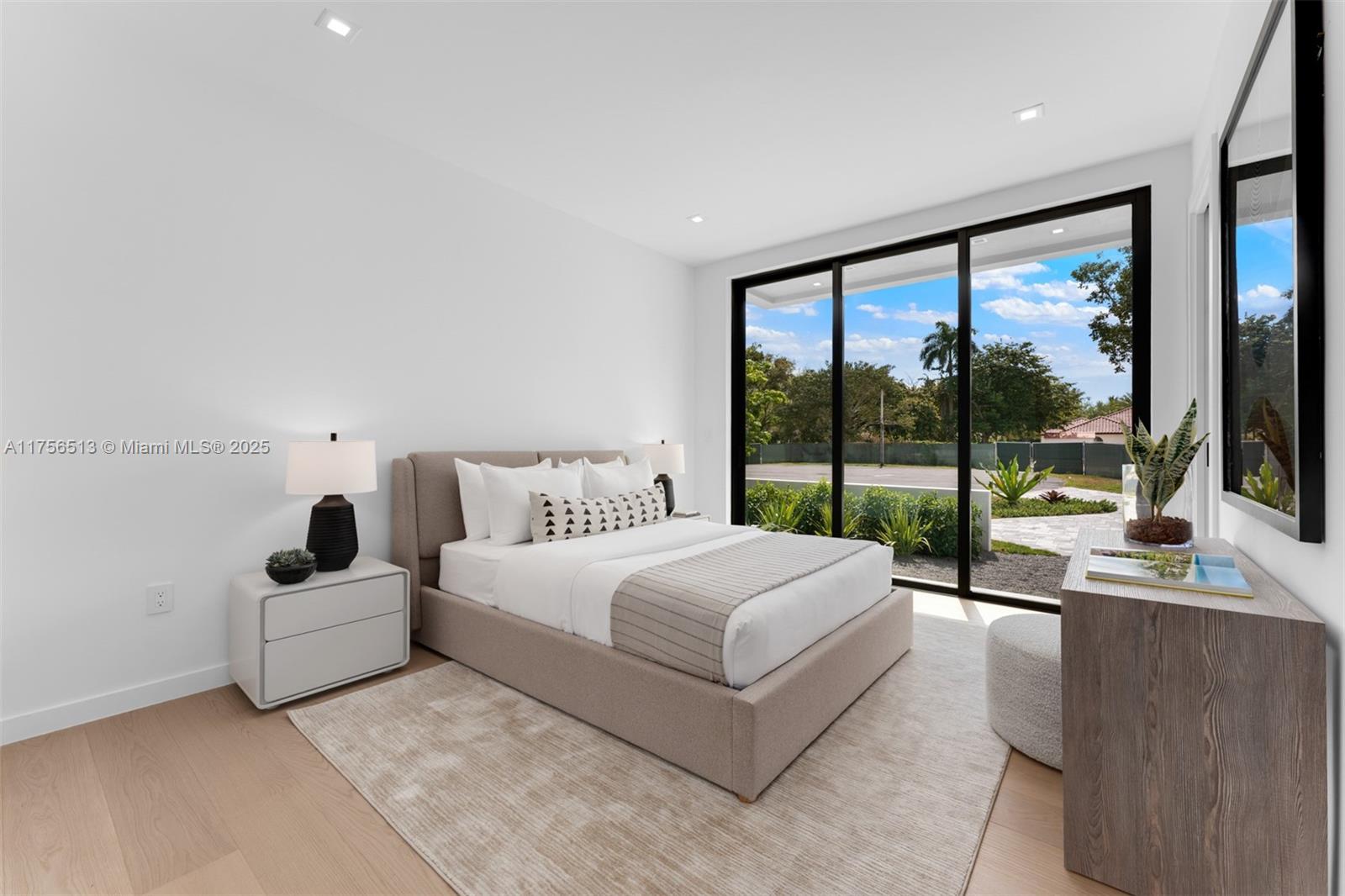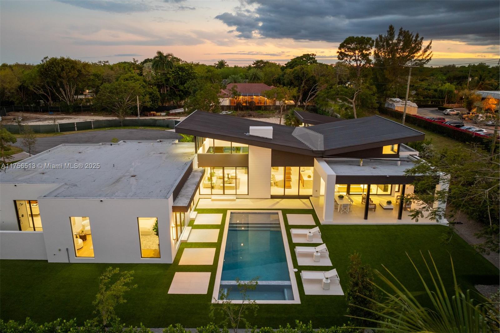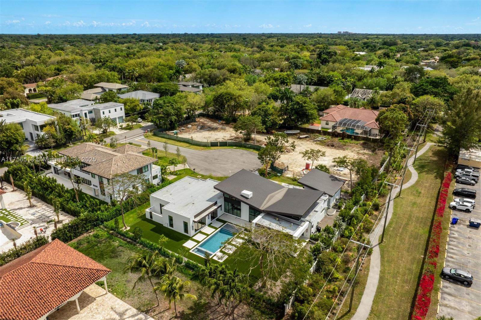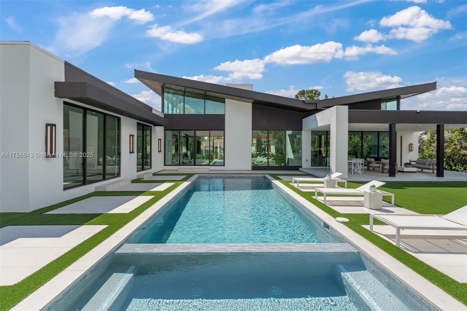 Discover mid-century modern in this brand-new 1-story estate, completed in 2025 in the exclusive cul-de-sac community of The Grove at Pinecrest. This architectural gem boasts a seamless open-concept layout, elegant finishes, and expansive impact windows. Enter through a sleek foyer with porcelain floors flowing into formal living and dining areas. A custom wet bar complements the spacious family room. The chef’s kitchen features custom cabinetry, top-of-the-line Thermidor appliances, gas stove, and Quartz countertops. Step outside to a private oasis with a stunning pool, tanning ledge, and lush landscaping. Use GPS: 6901 SW 91 St.