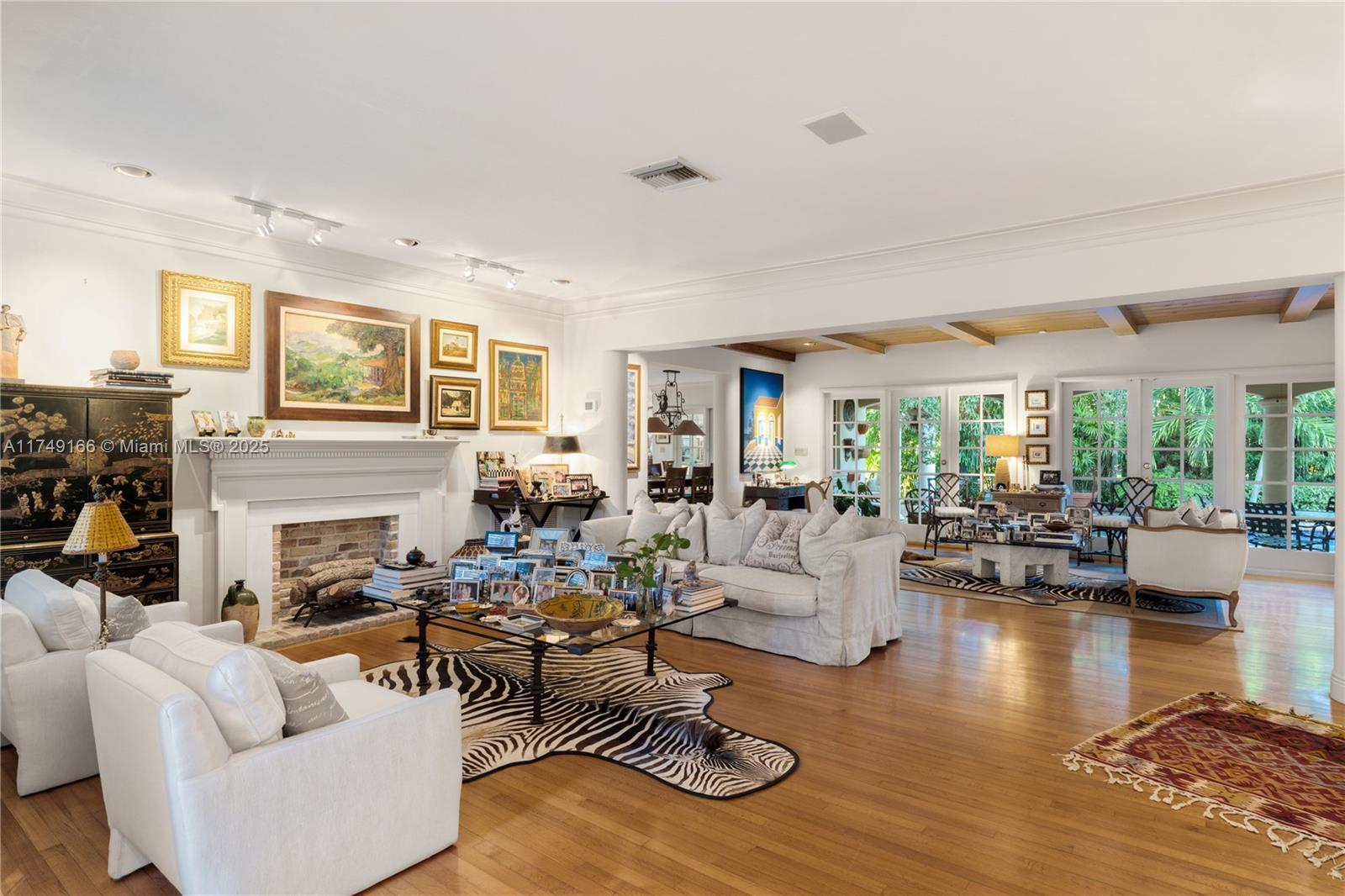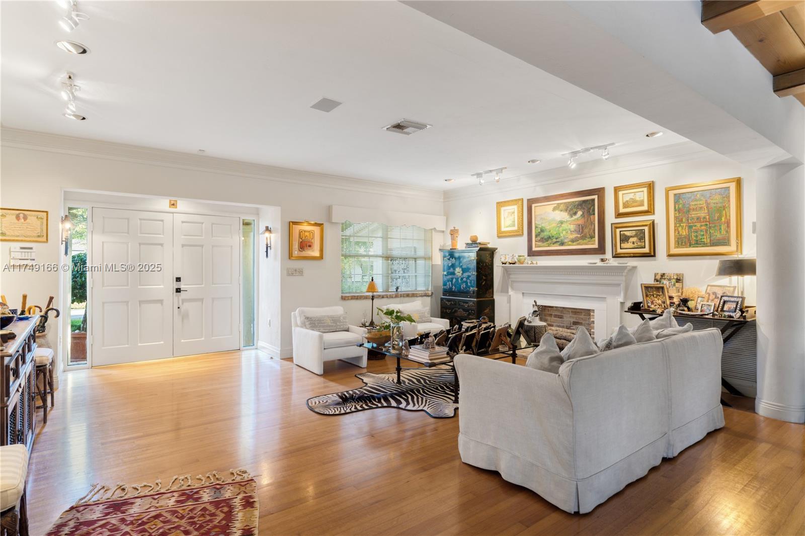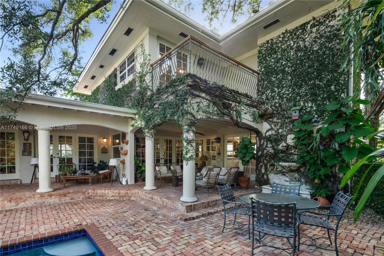Discover this beautifully maintained residence, showcasing curated design and modern functionality. A grand, double-height family room, an architectural statement providing an open, airy atmosphere. Wood and marble floors throughout combine warmth and sophistication. The living room's fireplace creates a cozy focal point. The first floor offers 3 spacious bedrooms & 3 baths. The private second-floor primary suite features a sitting room, indulgent spa bath, and custom walk-in closets. Outdoor entertaining is effortless with a brick patio and covered terrace overlooking the pool. Integrated speakers enhance the ambiance inside and out. Equipped with double-pane windows, a whole-house generator, built-in garage workstation, and sprinkler system for ultimate comfort and security.