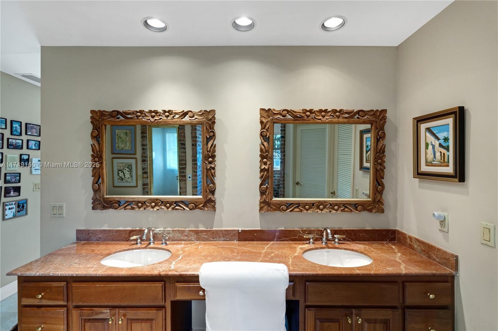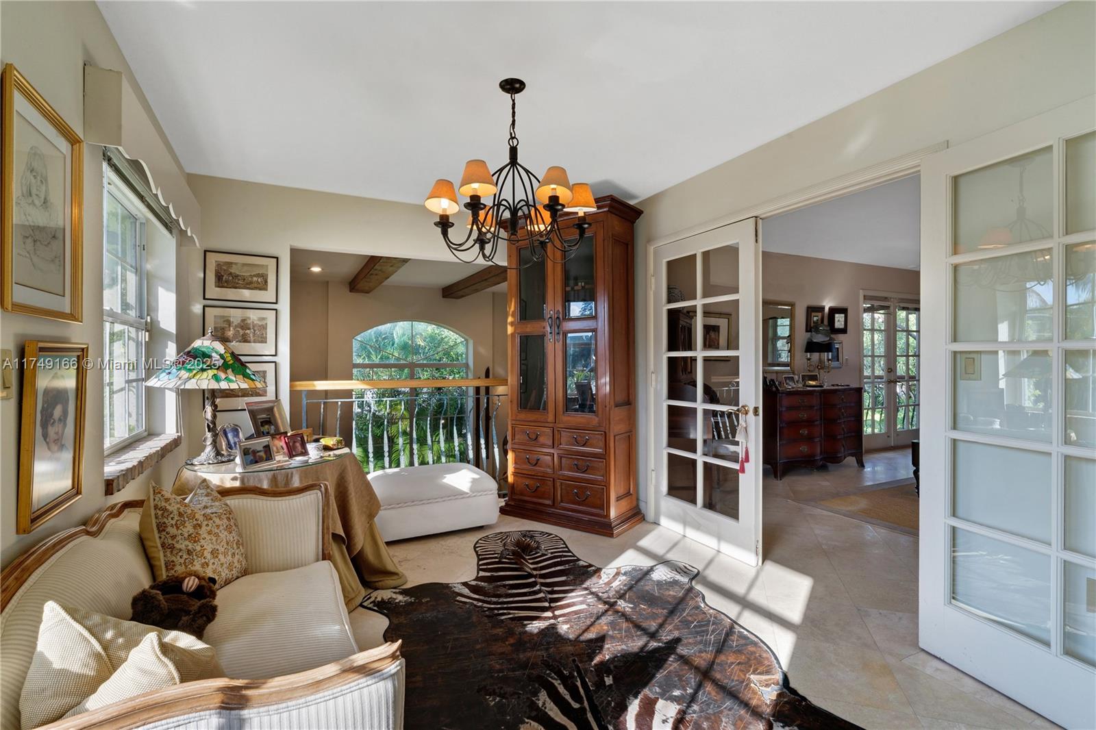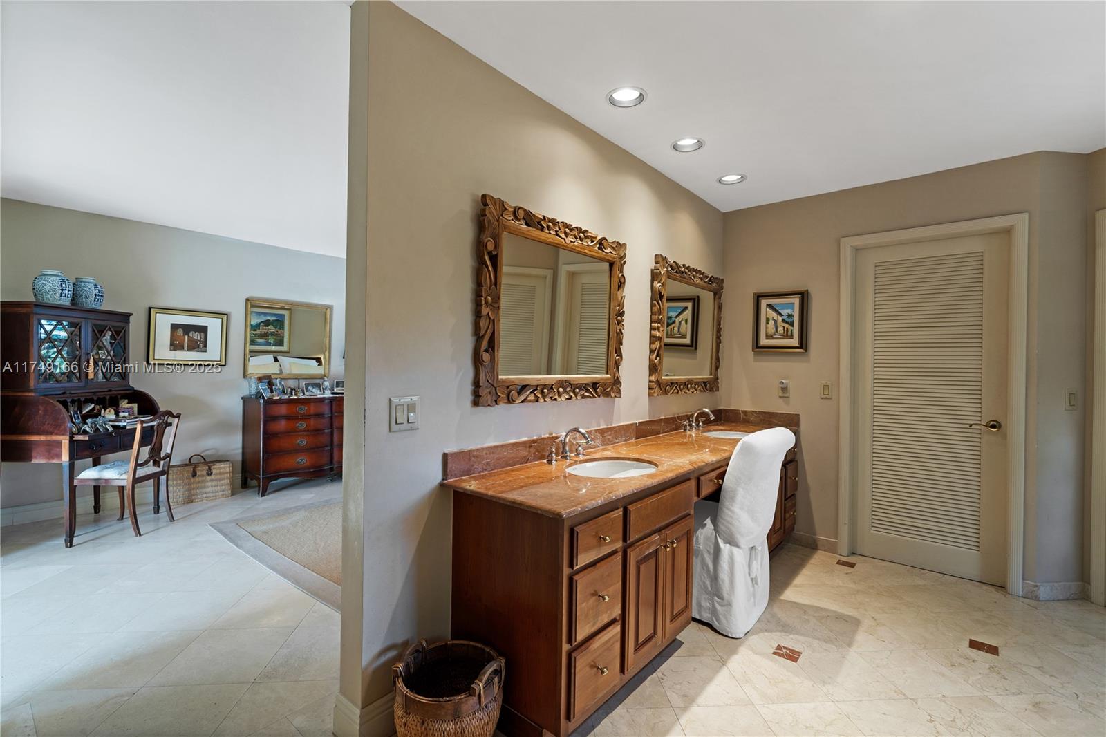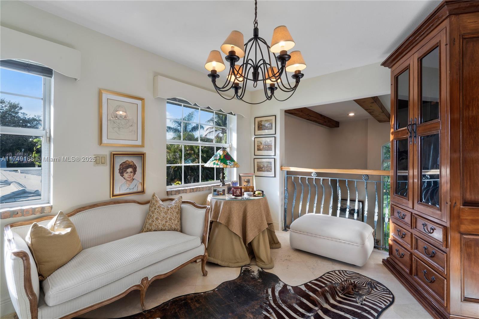 Discover this beautifully maintained residence, showcasing curated design and modern functionality. A grand, double-height family room, an architectural statement providing an open, airy atmosphere. Wood and marble floors throughout combine warmth and sophistication. The living room's fireplace creates a cozy focal point. The first floor offers 3 spacious bedrooms & 3 baths. The private second-floor primary suite features a sitting room, indulgent spa bath, and custom walk-in closets. Outdoor entertaining is effortless with a brick patio and covered terrace overlooking the pool. Integrated speakers enhance the ambiance inside and out. Equipped with double-pane windows, a whole-house generator, built-in garage workstation, and sprinkler system for ultimate comfort and security.
