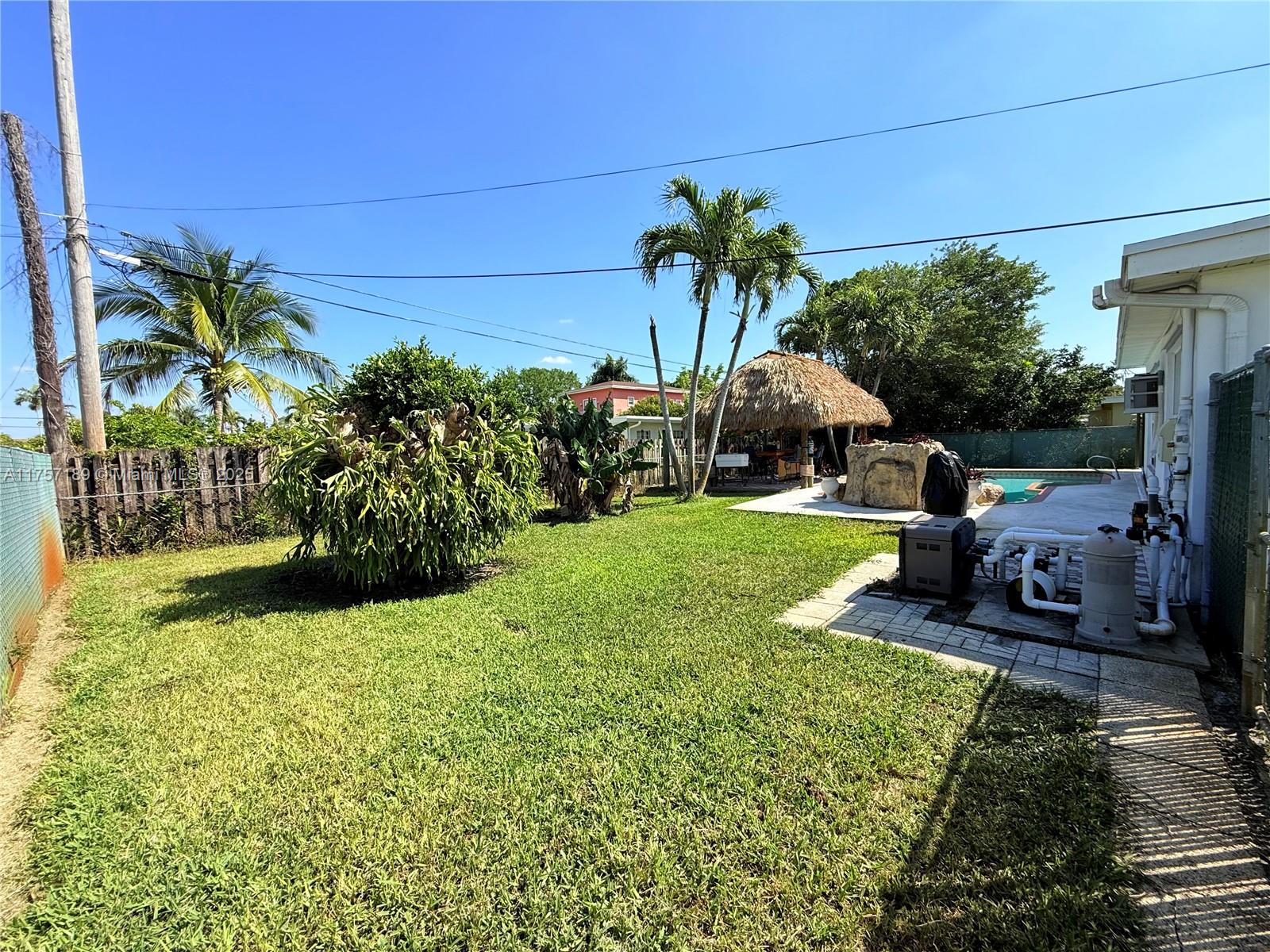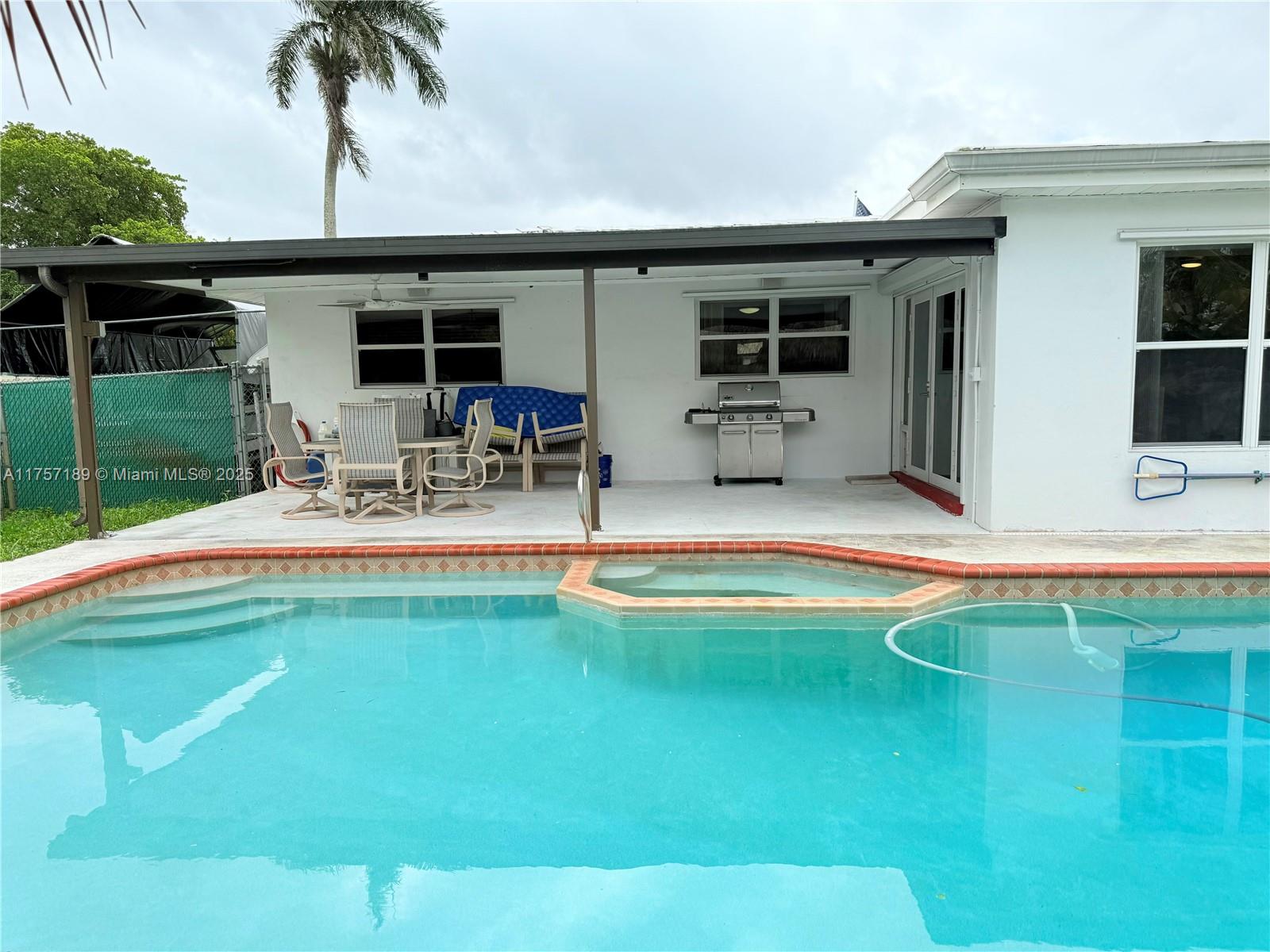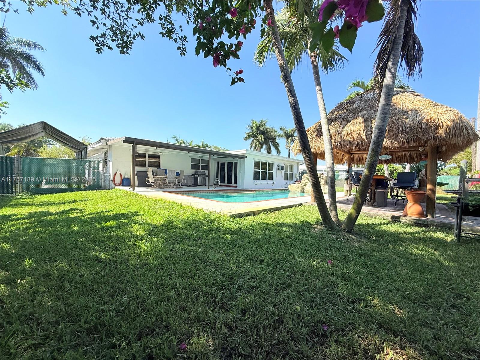 Must see 3 bed/2 bath home in sought after Plantation Gardens. Oversized 10,921 sq ft lot with room to park RV or boat on each side of the home. Enjoy a saltwater pool, with hot tub and waterfall. A tiki hut with bar including water and electricity. Large covered patio ideal for relaxing or entertaining. Features include tile floors, new A/C, new flat roofs, gas tankless water heater, gas dryer, and double oven. Upgraded electric panel with generator hookup. Smart home with Alexa controls, security cameras, screened porch, and 2-car garage. Located in a quiet neighborhood near parks, shopping, dining, Turnpike, and Ft Lauderdale Airport. Schedule your private tour today!. New roof will be installed!!!!!!!!!