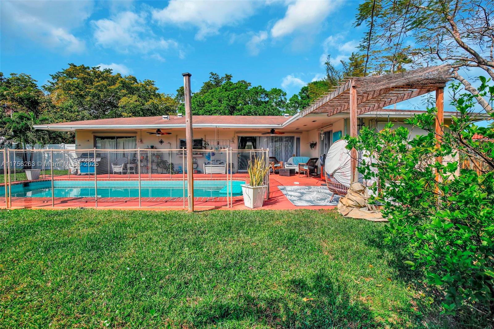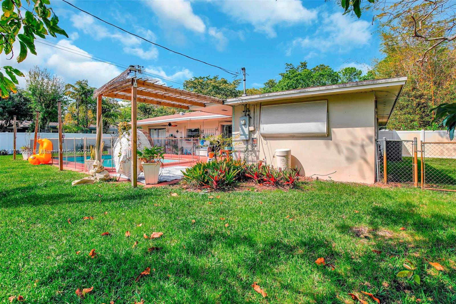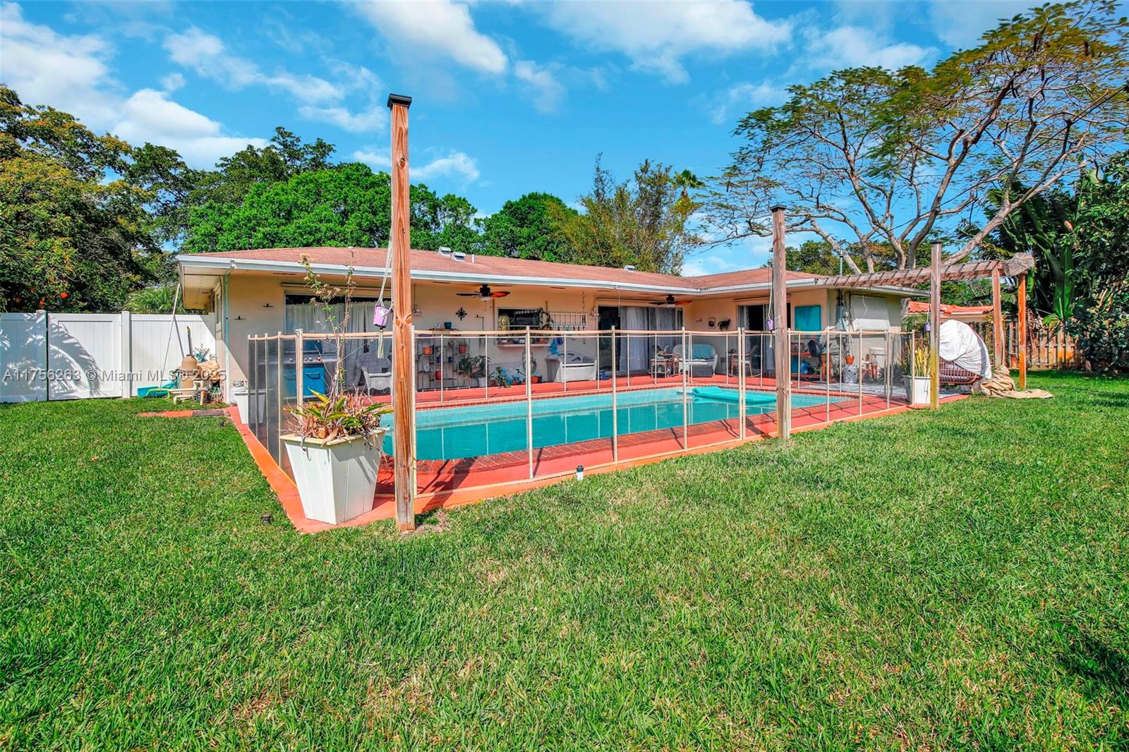 This well-maintained 3-bed, 3-bath home sits on a quiet street, offering comfort and flexibility. Thoughtfully cared for over the years, the home boasts a refreshed kitchen with stylish grey and white finishes, creating a bright and inviting space for cooking and gathering. The spacious backyard boasts a large pool with a child safety fence, mature fruit trees (including avocado), and a raised garden bed. Fully fenced for privacy! A versatile additional room with A/C is perfect for a home office, guest space, or climate controlled storage—it can also be converted back to a carport or garage. Near Plantation Woods & Heritage Park with easy highway access. No HOA means more freedom to make it your own. A fantastic opportunity—don’t miss it!