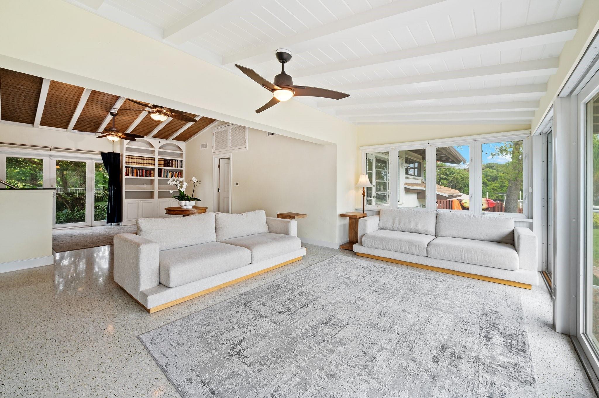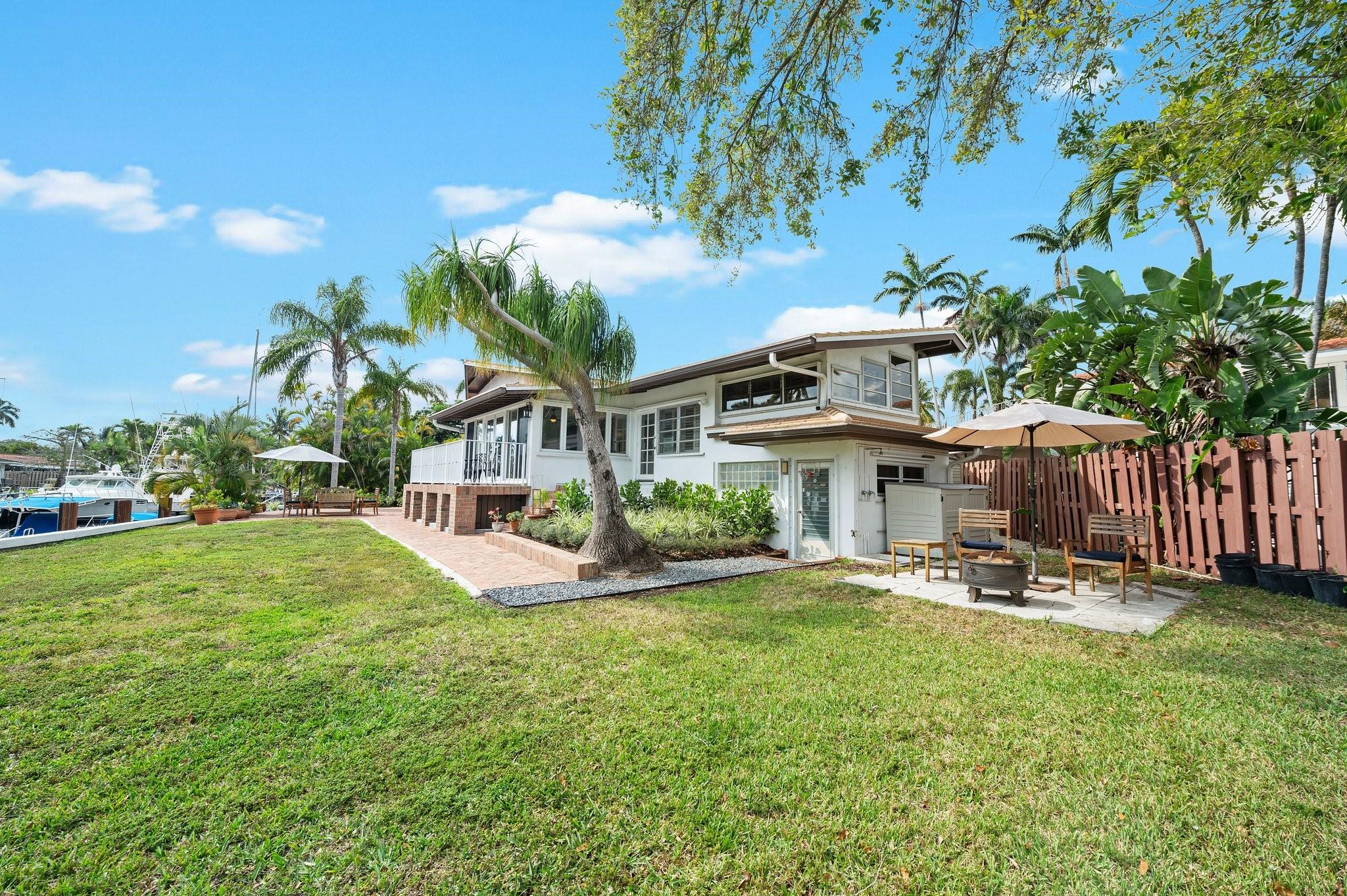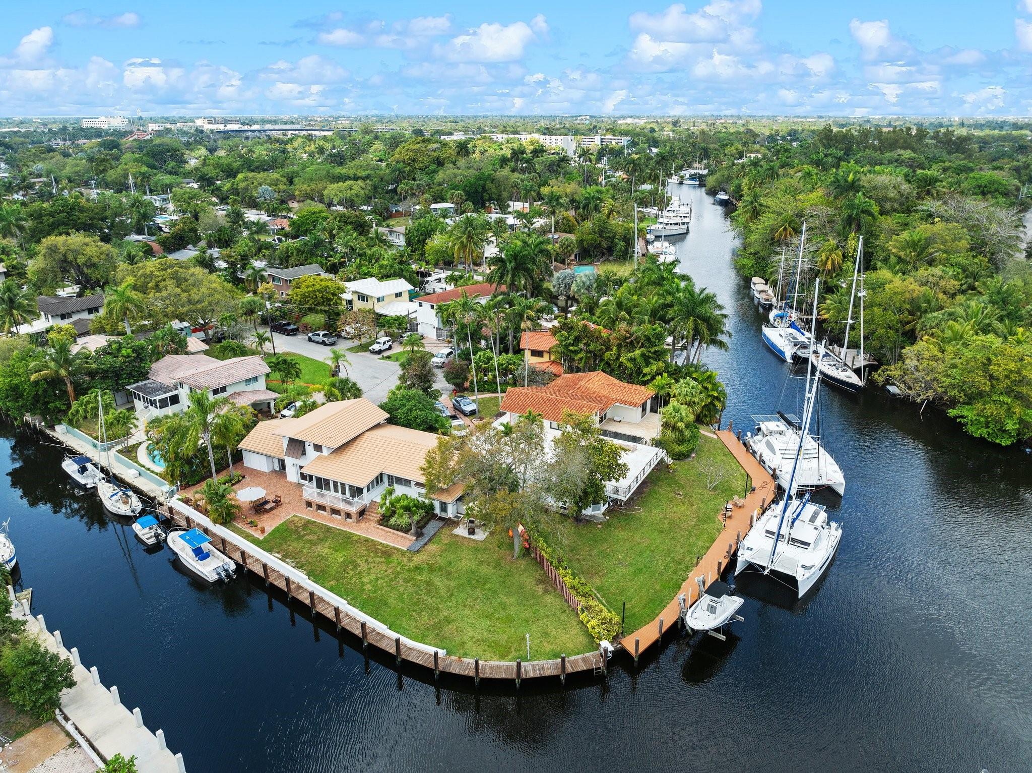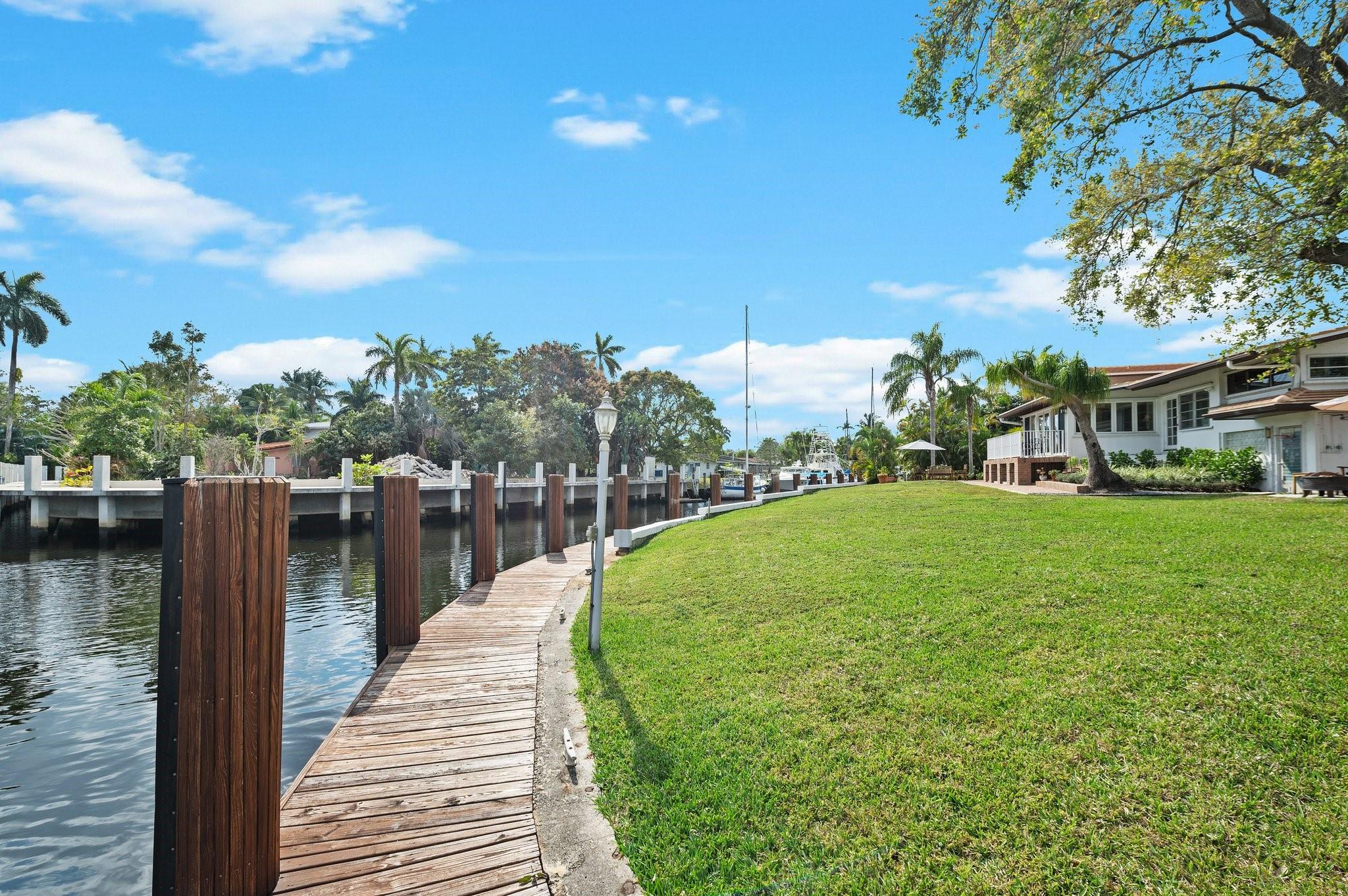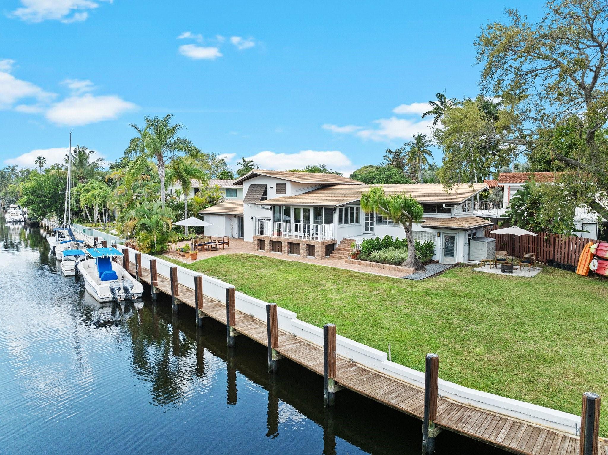 Waterfront home in Gill Isles! This 4BD/3BA tri-level home sits on a magnificent point lot with 155 ft of deepwater frontage offering direct ocean access with no fixed bridges and a convenient turnaround basin at your dock. Protect your yachts at this part of the river known as the Hurricane Hole. Built with solid CBS construction, this home boasts original terrazzo and oak floors, a stunning kitchen with gas stove and stainless appliances, updated baths, and expansive living spaces. The unique tri-level design provides separate yet connected living areas, maximizing waterfront views and natural light. Nestled along a quiet part of the New River, yet minutes from marinas, the airport, highways, downtown, and the beach. Enjoy the perfect blend of privacy, character, and modern convenience!