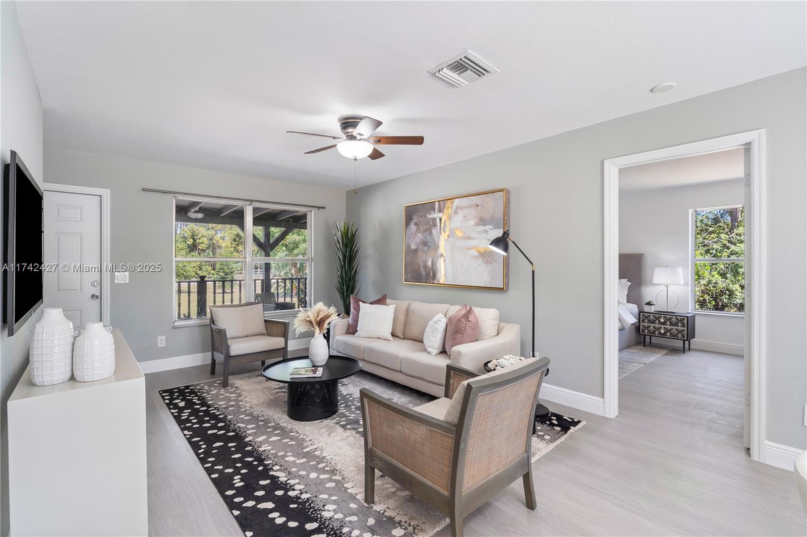 Spacious Palm Beach Lot/Home on a 54,450 SqFt lot with no HOA! Features 3 beds, 3 baths, and a den. Enjoy solar panels, private well with water softener, EV charger, and updated appliances. Recent upgrades include new floors, fresh paint, and a modern kitchen. Bright, open living areas and a vast yard perfect for entertaining or relaxing. Major neighborhood improvement coming: underground power lines will be installed, expected to boost property values. A rare blend of space, sustainability, and comfort!