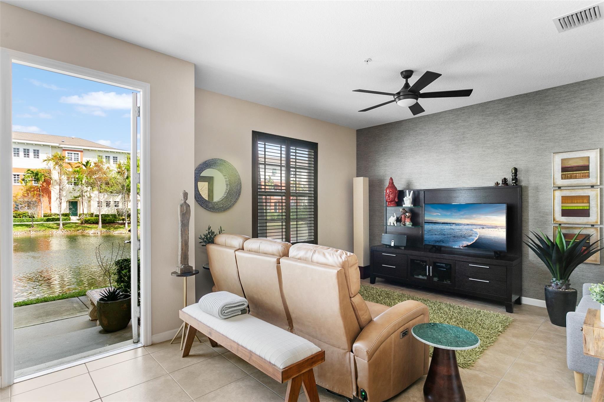 Luxury Lakeside living! This immaculate, upgraded, much-loved home comes with top notch furniture! Move in ready! Plantation shutters! New A/C! 5 Ceiling Fans! New exterior paint! Monkey bars in the garage and so much more! Original owner! This 3/ 2.5 + office/den, high ceiling home feels like new! The spacious layout features separate living and dining areas, plus an open kitchen for entertaining. The primary suite boasts separate, large closets and a luxurious en-suite bath with a soaking tub and rain shower. Perfect location! Min. from the beach, major highways, and Fort Lauderdale International Airport. The HOA includes ADT alarm monitoring, landscaping, TV, high-speed internet, exterior insurance, maintenance, beautiful clubhouse, junior olympic size pool, and scenic walking trails.