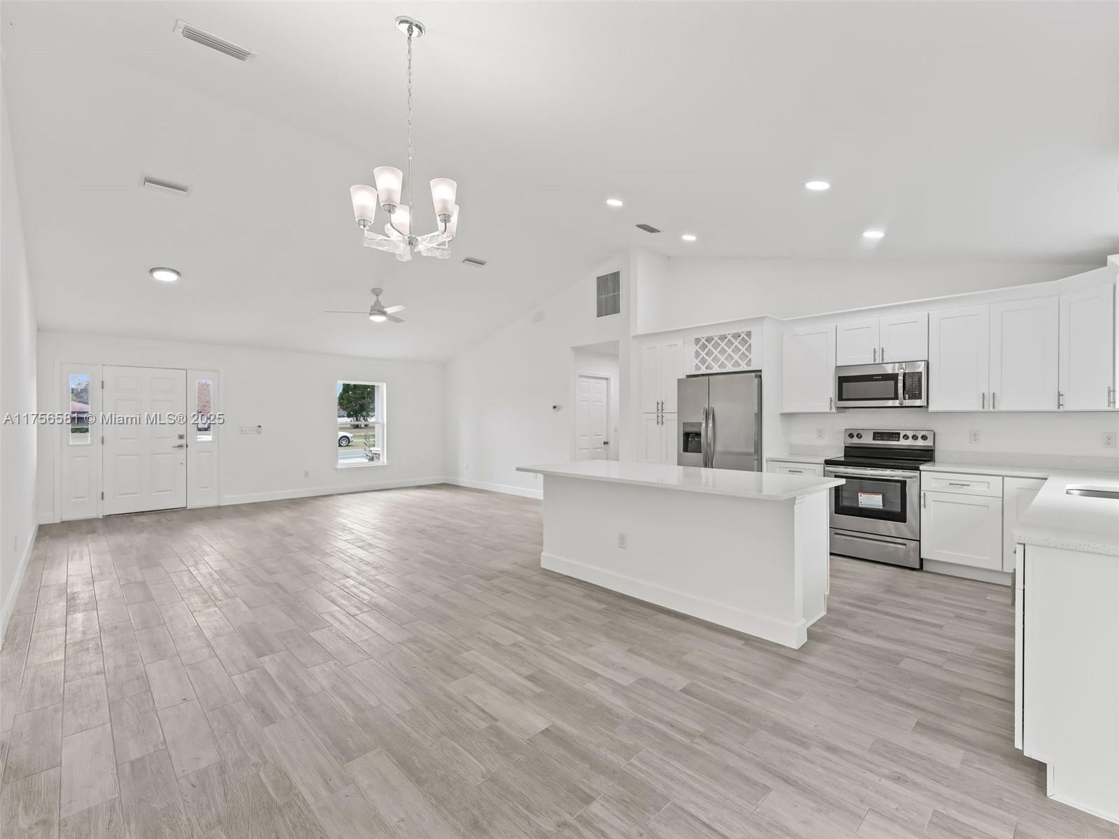 • Interior Feature:BedroomOnMainLevel, ClosetCabinetry, FirstFloorEntry, KitchenIsland, LivingDiningRoom, CustomMirrors, MainLevelPrimary, Pantry, VaultedCeilings, WalkInClosets