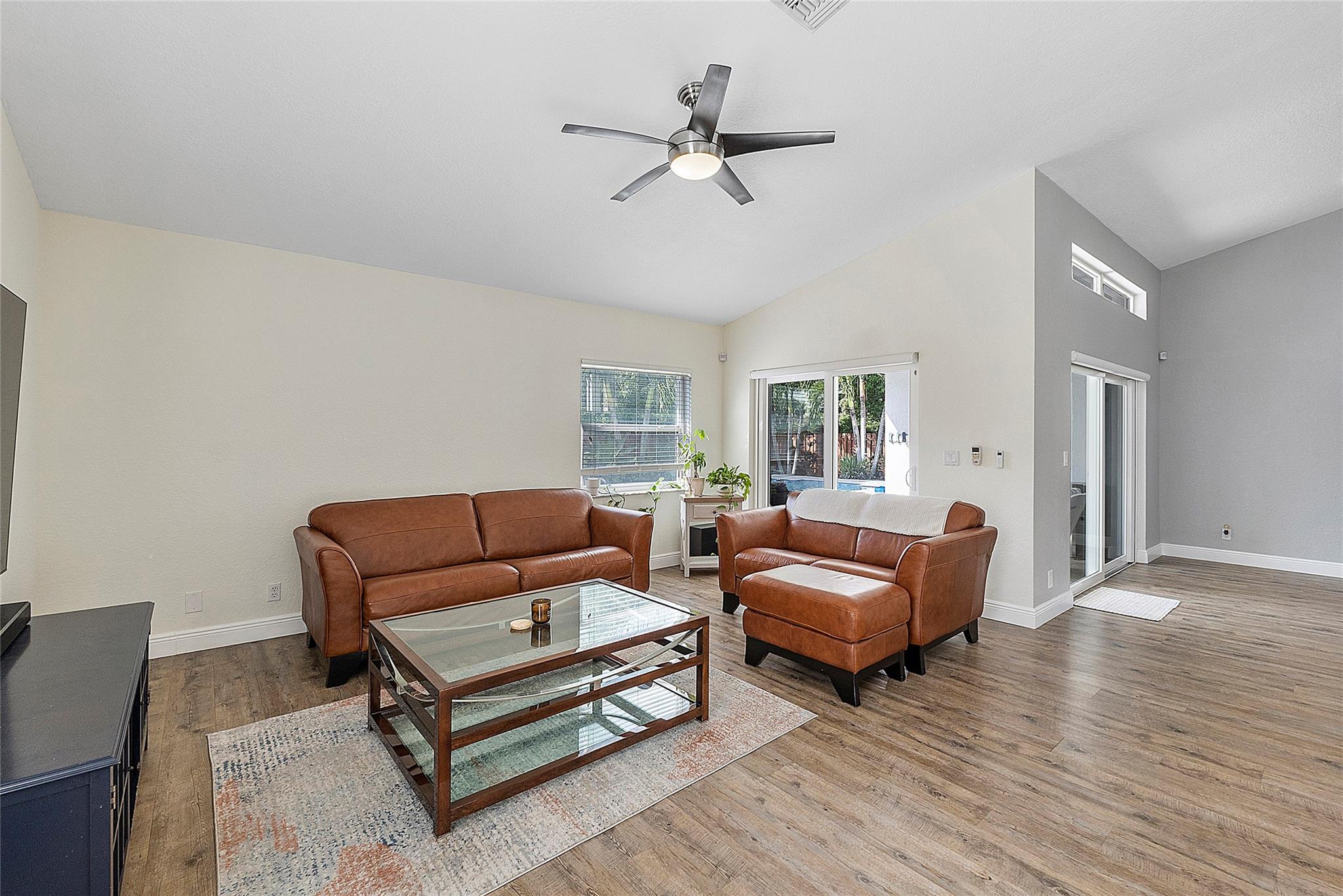 Come see this 4 bedroom 2 bathroom open floorplan home with vaulted ceilings in highly desired Addison Court. Upgrades include high impact windows and doors throughout, and a newer salt water pool and deck built by Ike's Carter who are the premier pool builders in Broward County. Other upgrades include: high-end laminate flooring throughout, neutral color paint, custom closet cabinetry built in master closet, 240v electric car charging outlet in front for electric car, fenced yard with lush landscaping and much more.