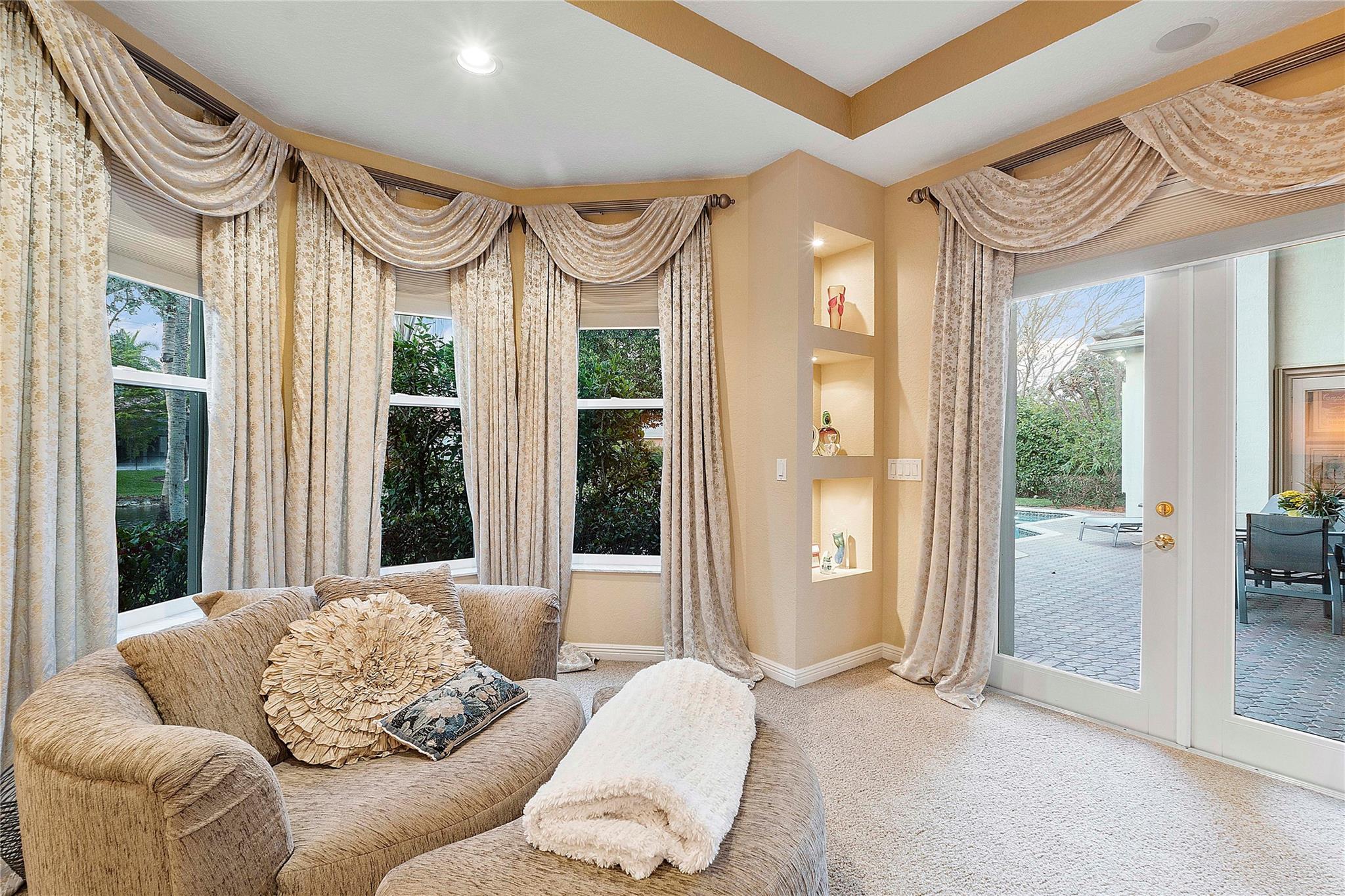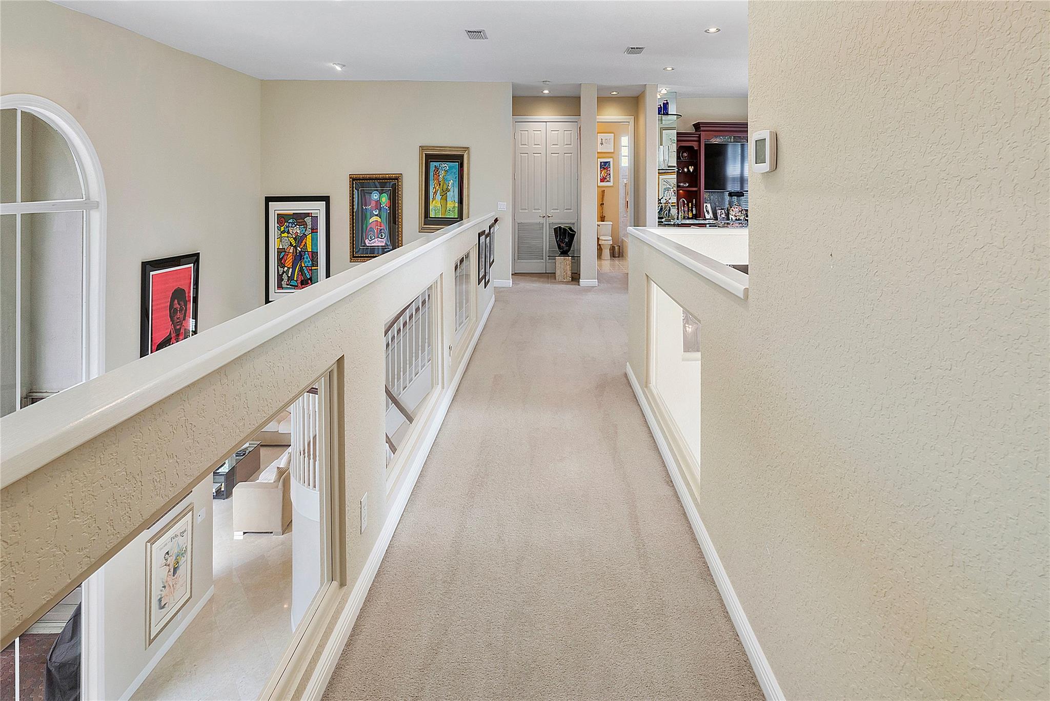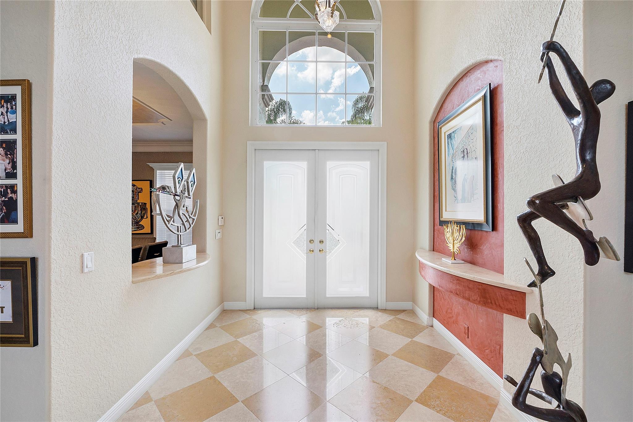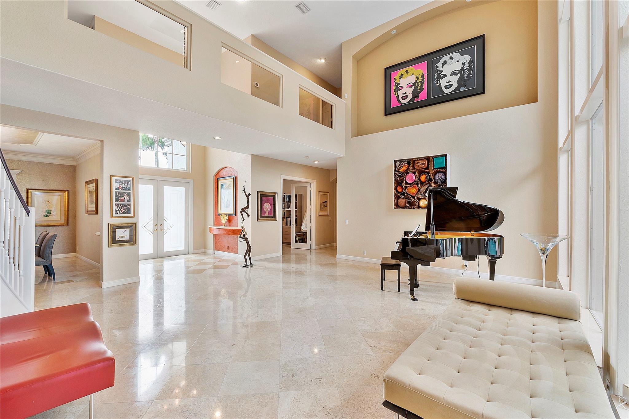 Stunning estate home on water, access to 125 acre navigable LAKE CORAL SPRINGS. New roof Jan. 2025. Hurricane protection for entire home. Exceptional quality, prestigious Maui by Centerline Homes. Dramatic entry reveals 21' ceilings, palladium windows, Saturnia marble floors & panoramic views of pool-patio-water from almost every room. Living room provides room for grand piano & more. Formal dining room. Big custom kitchen, breakfast room with window seat & built-in, large family room. Primary bedroom with sitting area, & large office downstairs. Upstairs additional entertaining area has sweeping views and custom built-in bar. Two ensuite bedrooms. Three car garage plus an air-conditioned bonus room/workshop/office. Guard gated 24 hrs. Close to shops, schools, parks, Sawgrass expwy.