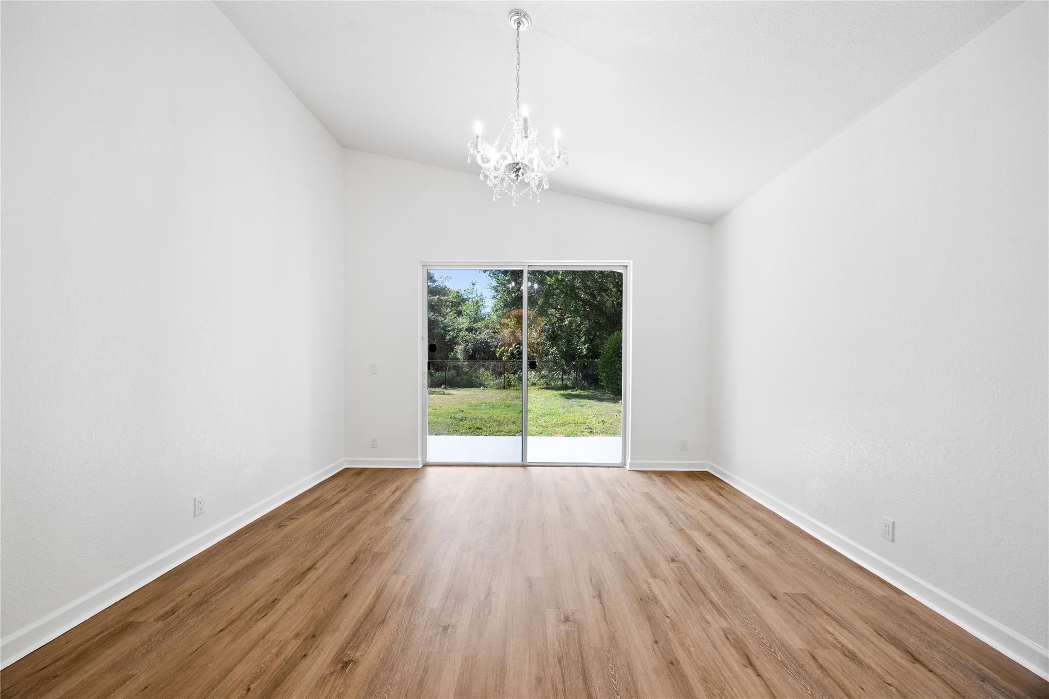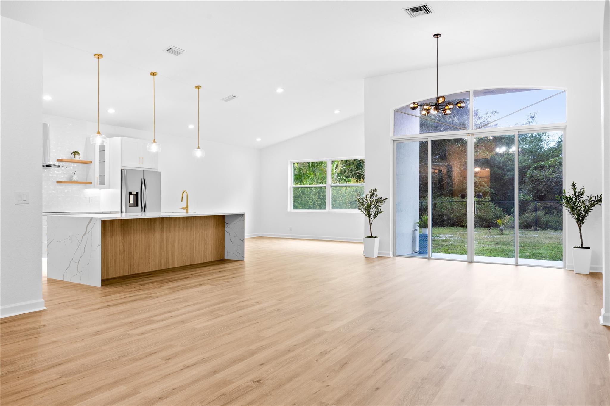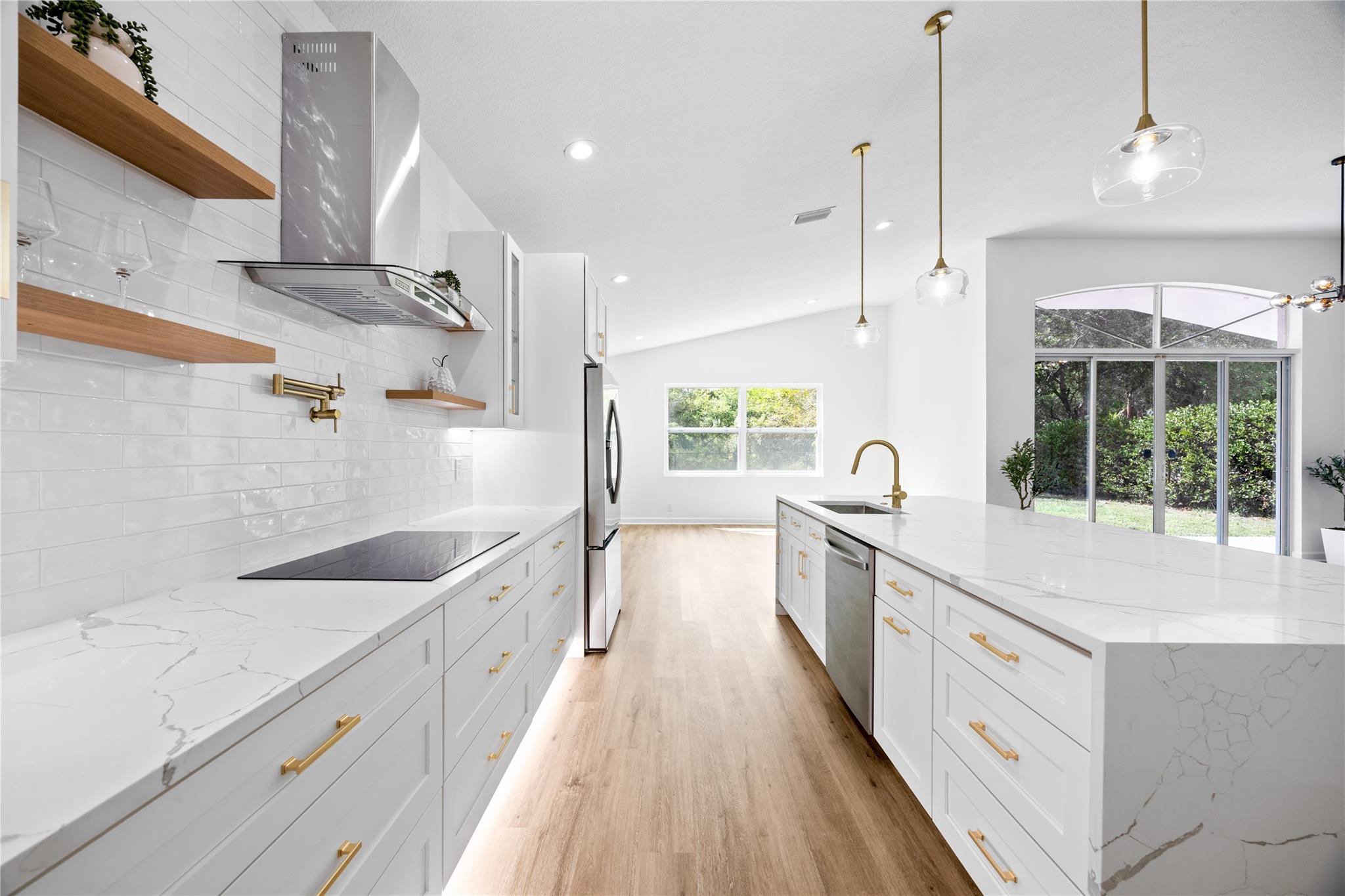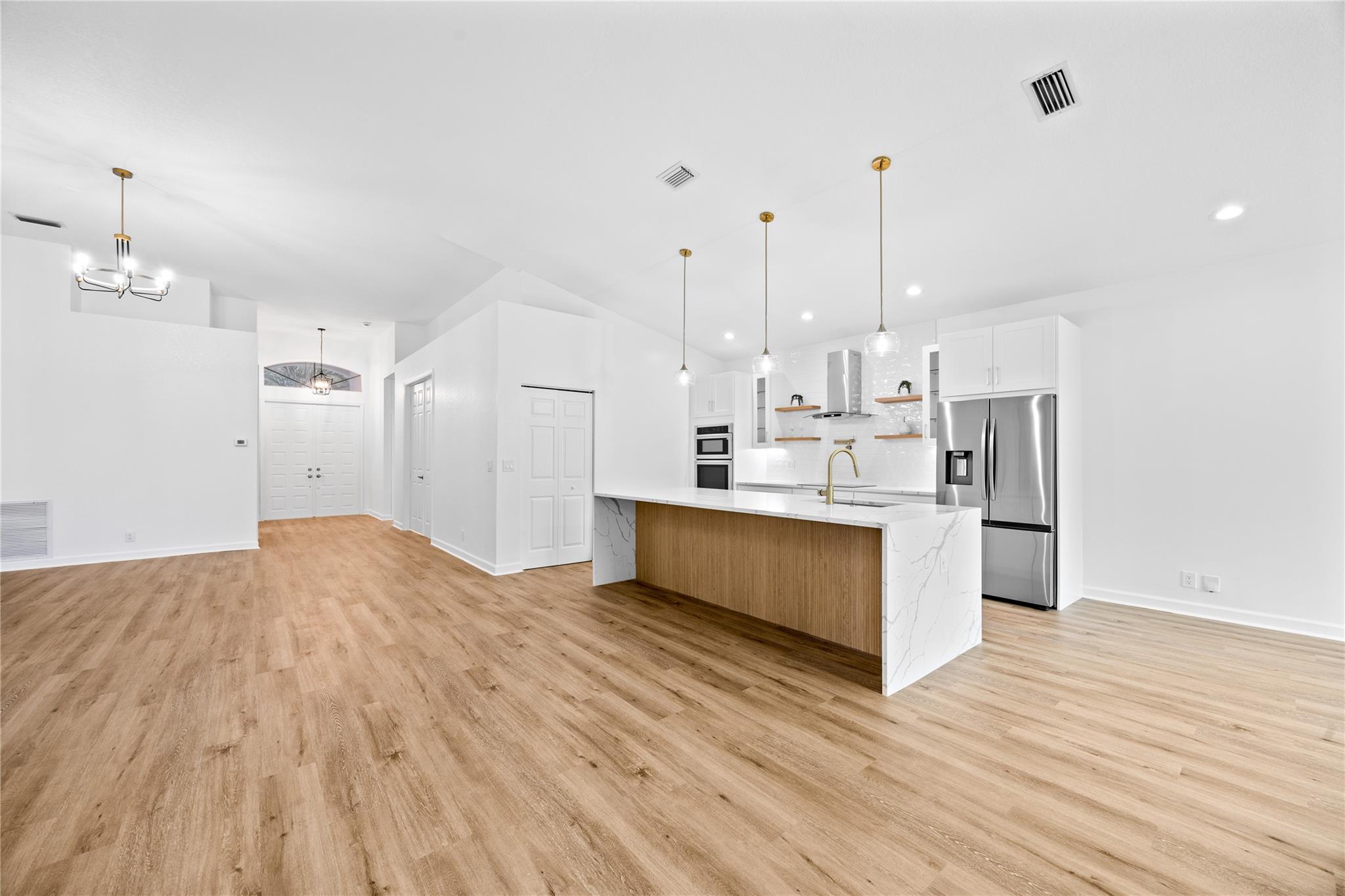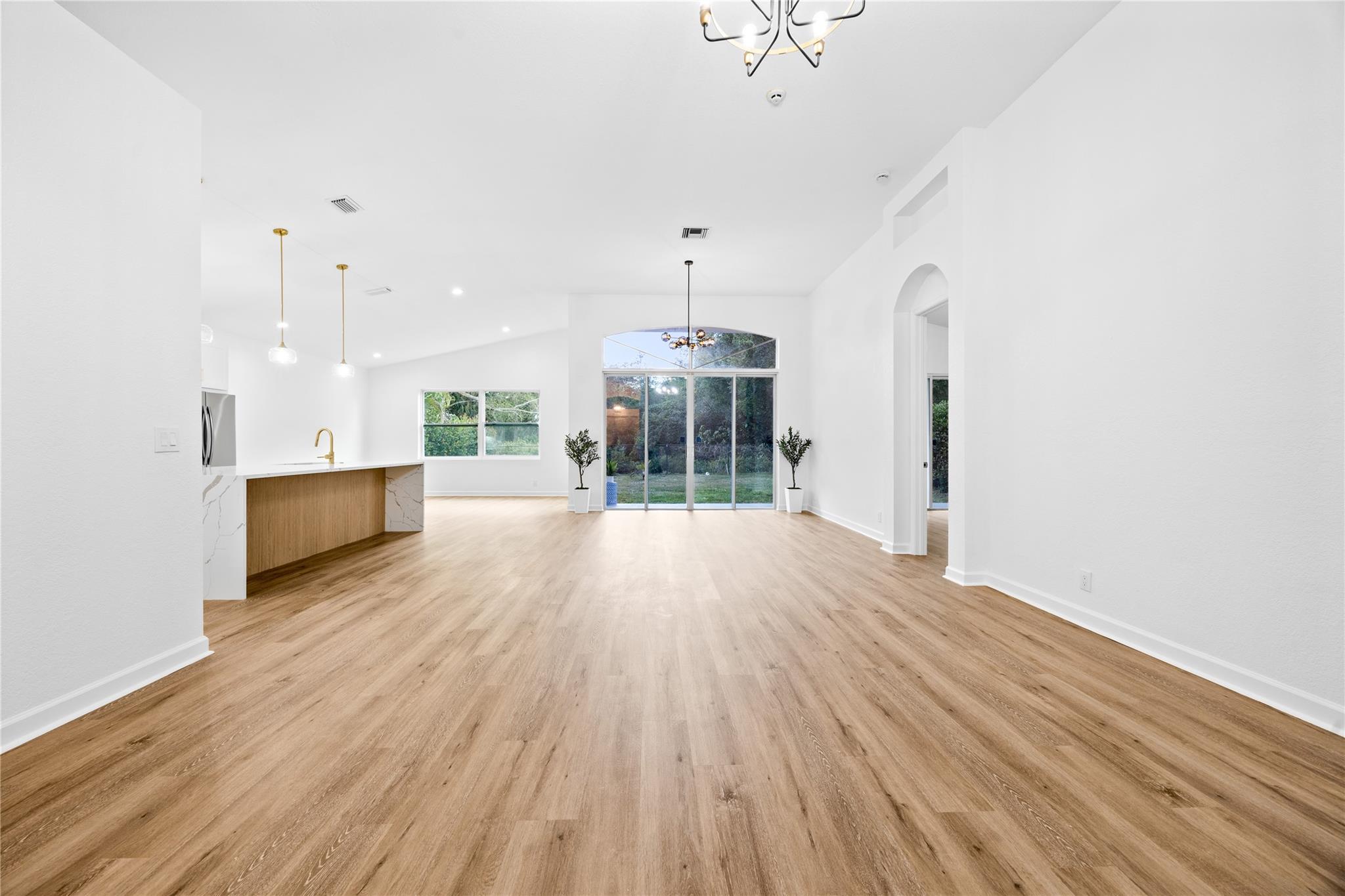 Discover this stunning, newly remodeled modern home featuring an open-concept design and soaring vaulted ceilings. The new, sleek, contemporary kitchen boasts brand-new appliances and stylish finishes. Luxury vinyl plank flooring flows seamlessly throughout, adding both elegance and durability. Enjoy the tranquility of nature from the covered patio overlooking a serene wooded backdrop. A brand-new tile roof, installed in 2025, ensures lasting quality, while the attached two-car garage provides convenience and ample storage. Check out the 360 tour and make an appointment to see it today.