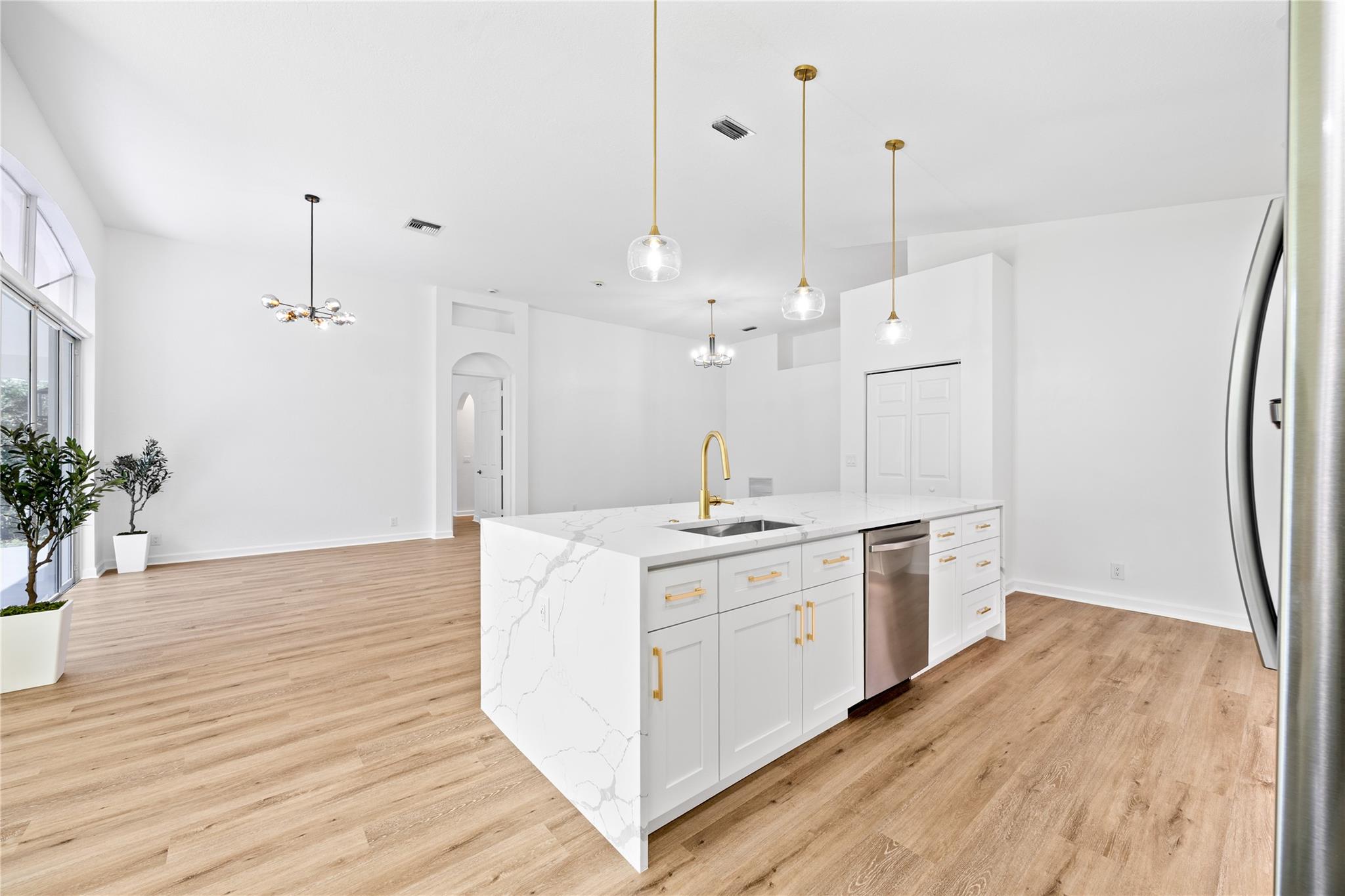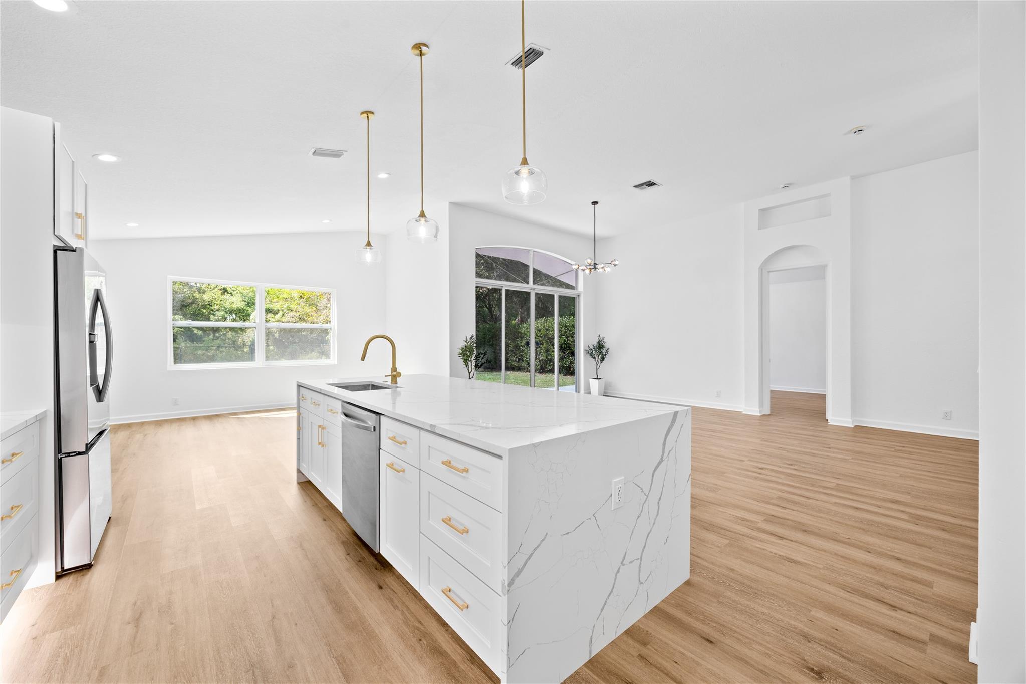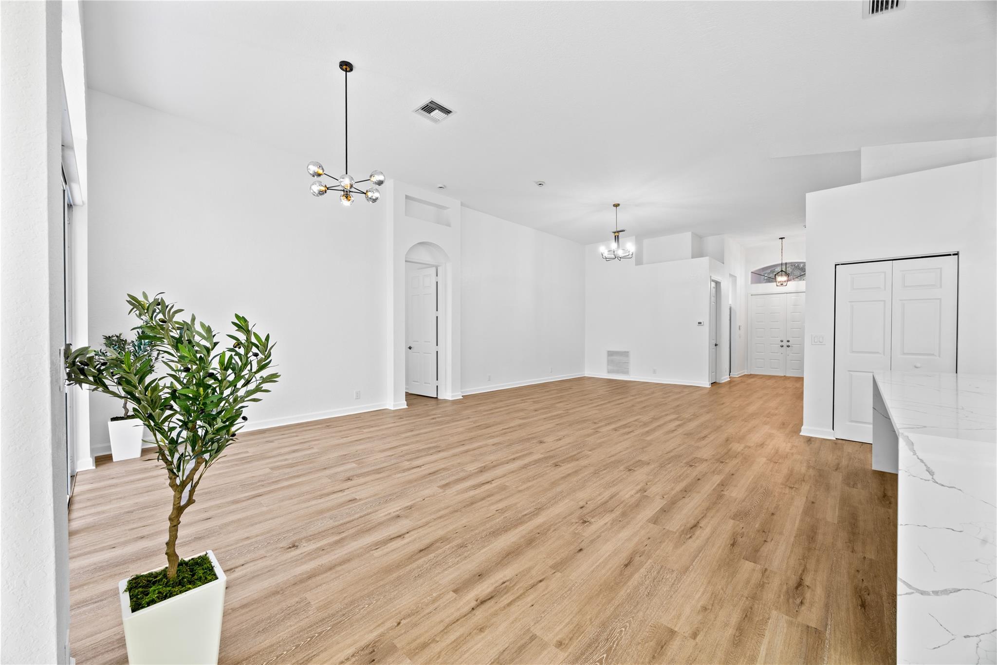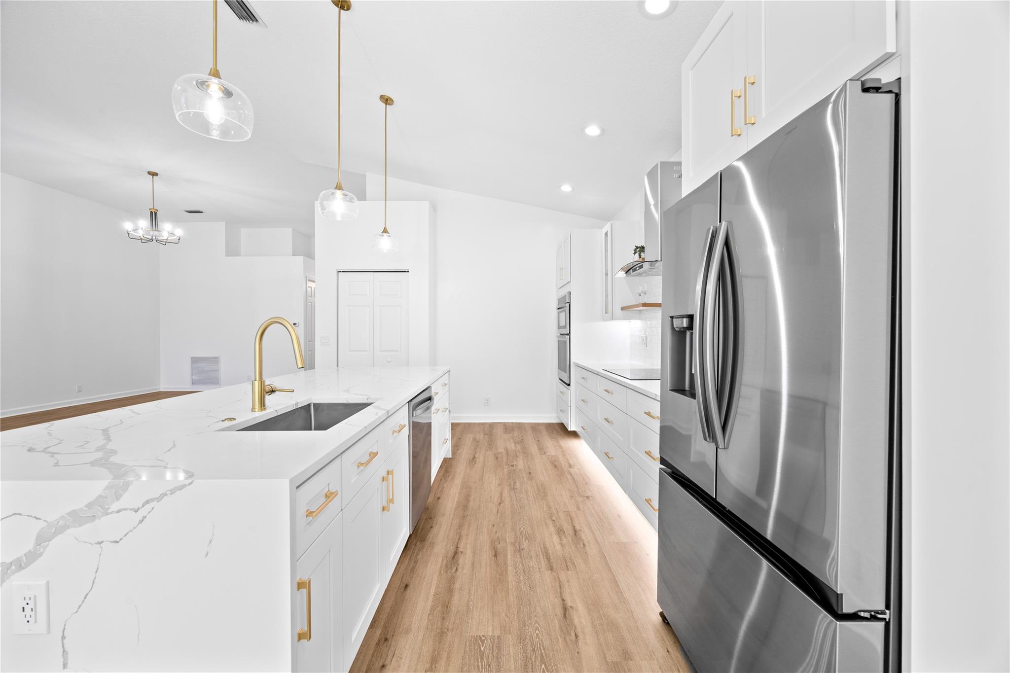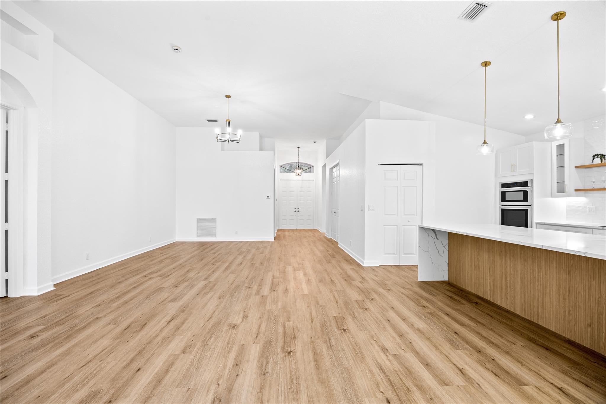 Discover this stunning, newly remodeled modern home featuring an open-concept design and soaring vaulted ceilings. The new, sleek, contemporary kitchen boasts brand-new appliances and stylish finishes. Luxury vinyl plank flooring flows seamlessly throughout, adding both elegance and durability. Enjoy the tranquility of nature from the covered patio overlooking a serene wooded backdrop. A brand-new tile roof, installed in 2025, ensures lasting quality, while the attached two-car garage provides convenience and ample storage. Check out the 360 tour and make an appointment to see it today.