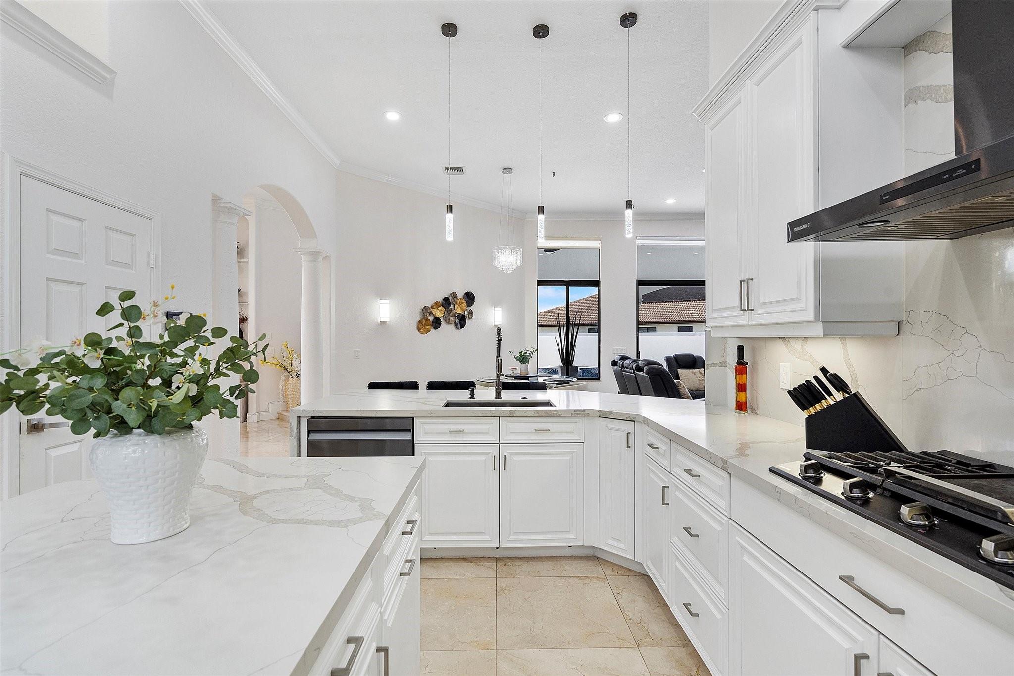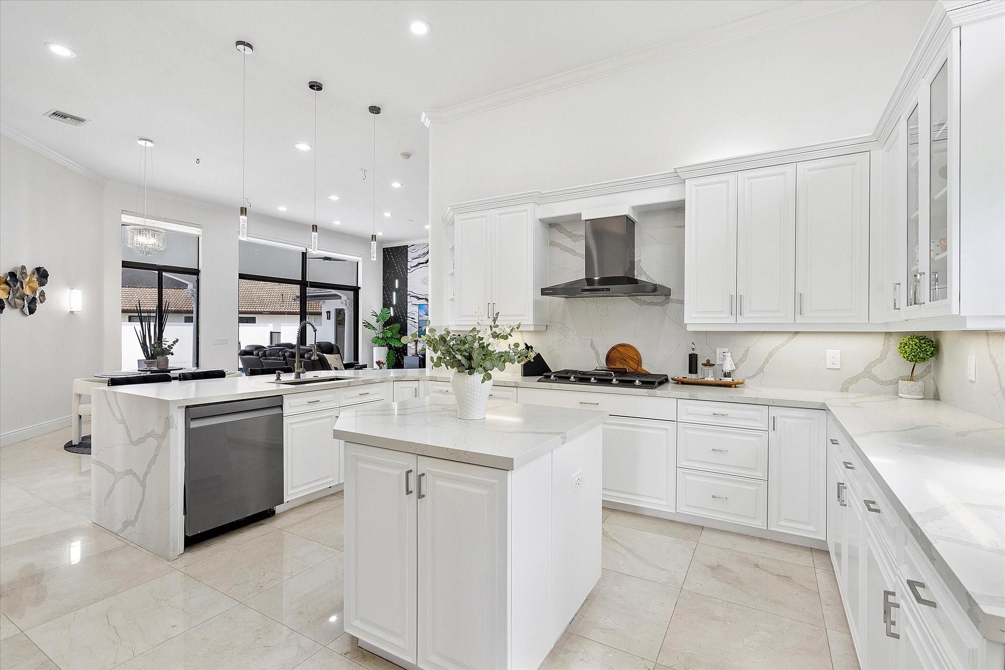 Experience luxury living in the prestigious Sunset Lakes community! This beautifully remodeled lake front home features 7-bedroom, 5-bath, an inviting courtyard with an open floor plan and elegant marble flooring throughout. Recent upgrades include NEW interior and exterior paint, a NEW tile roof, and NEW gutters. Enjoy breathtaking lake and pool views from the NEW balcony. The chef-inspired kitchen boasts modern appliances and Calcutta quartz countertops. An attached guest house with a full bath offers privacy for guests. Attached 3 car garage. Relax in the exquisite marble patio & pergola or the NEW Saltwater pool. Don’t miss this incredible opportunity! See additional features list in photos.