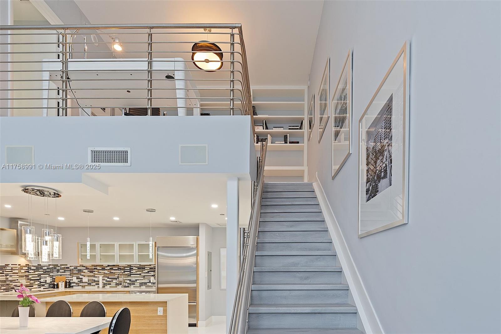Rare townhouse designed by Steven G. Perfect blend of autonomous living in comfortable luxury at Paramount Bay, one of the most desired buildings in Edgewater. Recently upgraded: storage space built below staircase, additional recessed ceiling lights in the kitchen and wood laminate on stairs replaced the former carpet, electric blinds downstairs. Two-story, 20+ foot living room ceilings. Guest bedroom & private bathroom downstairs, master bedroom upstairs with loft balcony, huge den area, spacious walk-in closet. Subzero & Wolf appliances, wine chiller, full size washer & dryer. Unit has a covered parking space. Access to all amenities which include 2 pools, gym, spa, valet, cabanas, bonfire area and more. Wi-fi & cable included. It can be sold furnished or unfurnished. Pets ok