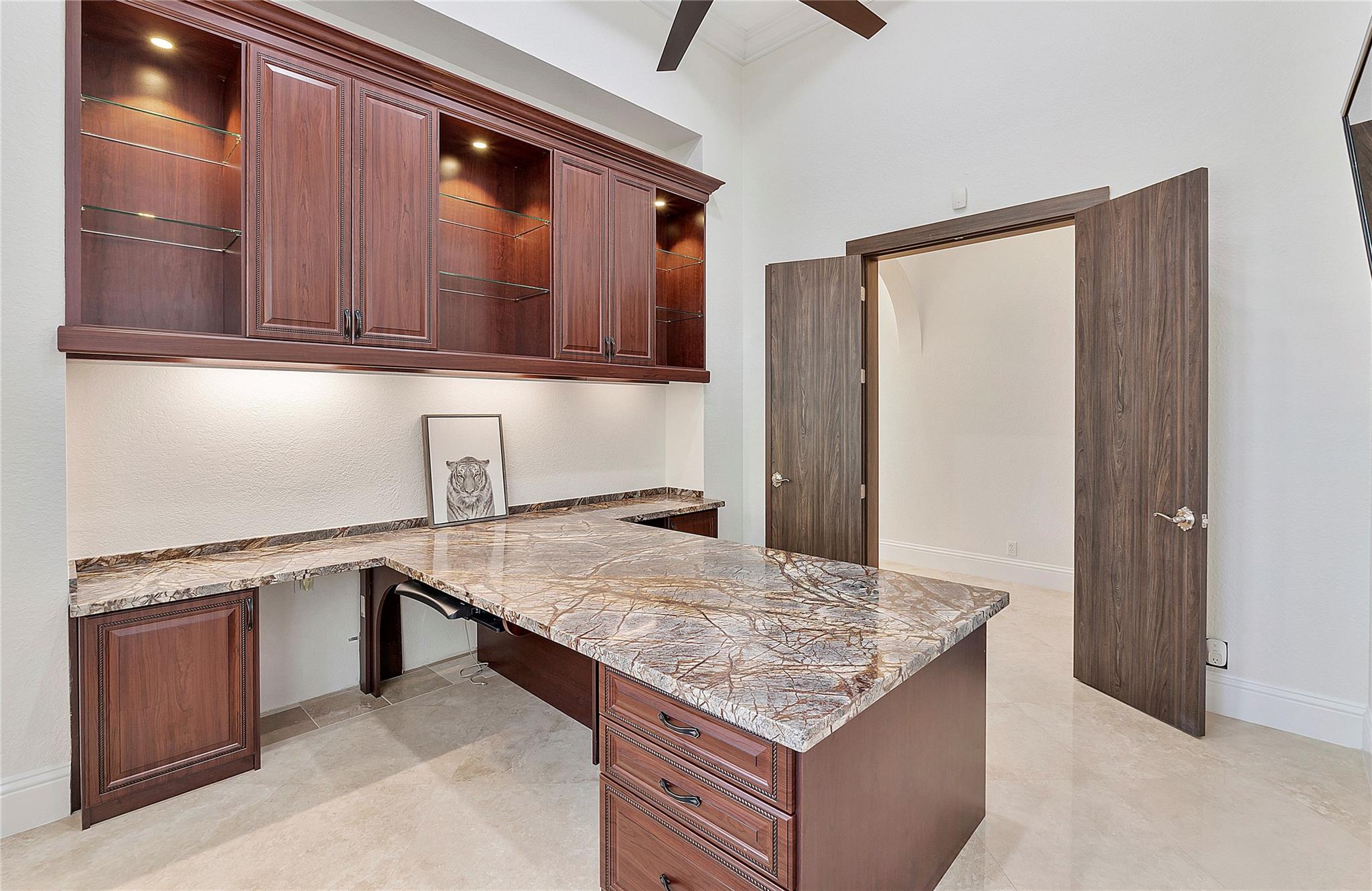 Rare opportunity in gated Blackhawk Reserve. Spectacular lakefront one story estate home on over 3/4 of an acre. Grand entry w/double portico. Brand new roof 2024. Elegant living/entertaining areas w/ volume & ceilings, marble flooring & contemporary appointments throughout. Chef's kitchen w/Wolf gas stove, Subzero fridge & stainless range hood. Triple split design w/ luxurious master retreat w/ 2 oversize closets & stunning new doors. Master bath completely remodeled last year! Four additional private bedrooms w/ensuite baths, plus office & spacious home theater! Additional features: plantation shutters, upgraded fans & fixtures throughout, new window treatments, 6 seat bar area, & new wood floors. 3 car garage w/ epoxy floors & 48amp Tesla charger. Community tennis courts.
