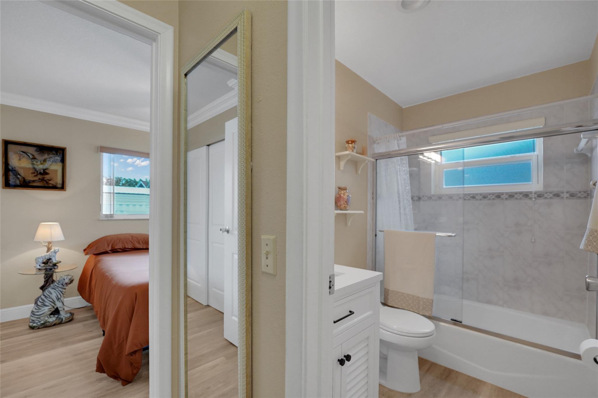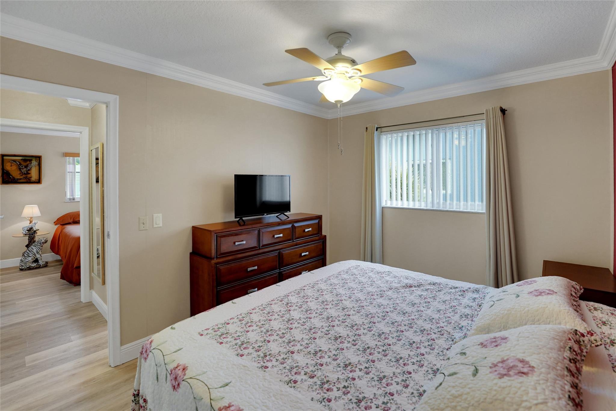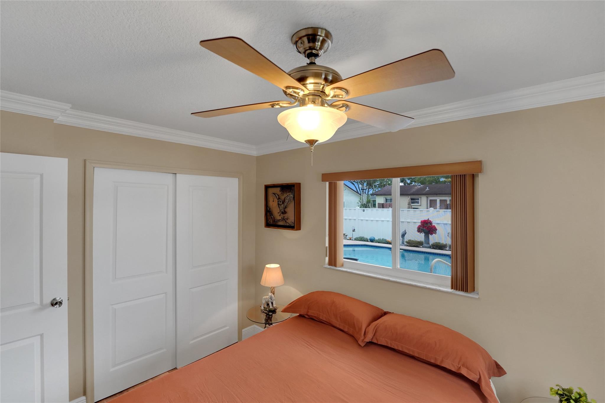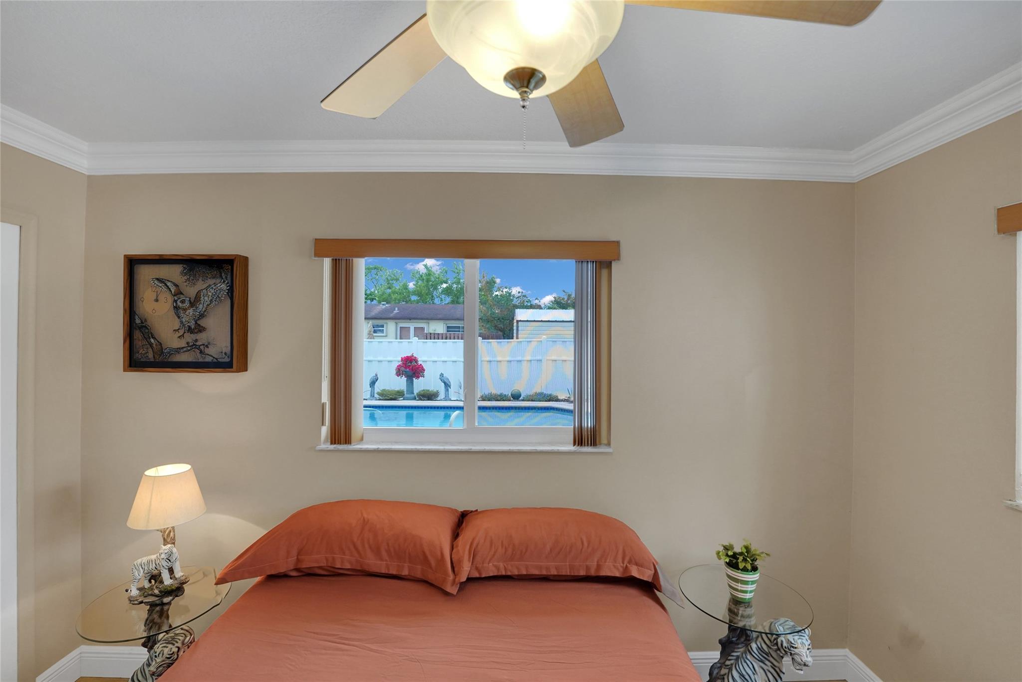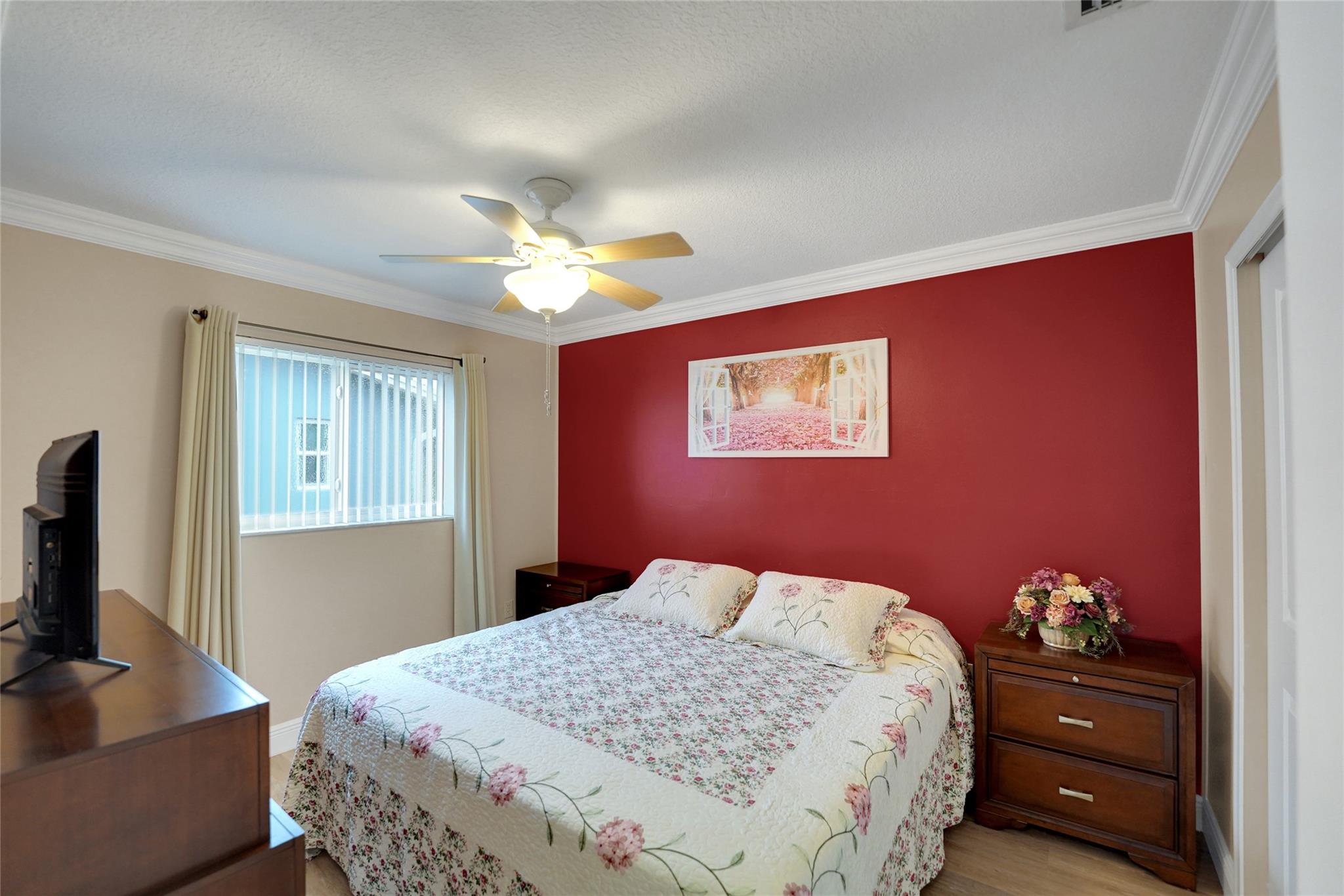 Nestled in the vibrant city of Sunrise, just outside Fort Lauderdale, this beautifully updated **pool home** is ready for new owners to create lasting memories. A freshly painted exterior, pavered circular driveway, and lush landscaping set the stage for the charm that awaits inside. Step through the front door to find vinyl plank flooring and crown molding flowing throughout, adding warmth and character to every space. The front living room effortlessly transitions into the dining area, conveniently located near the renovated kitchen, which boasts granite countertops and backsplash, black stainless steel appliances, and recessed lighting. The rear family room is bathed in natural light, with a stylish shiplap accent wall adding a touch of modern flair.
