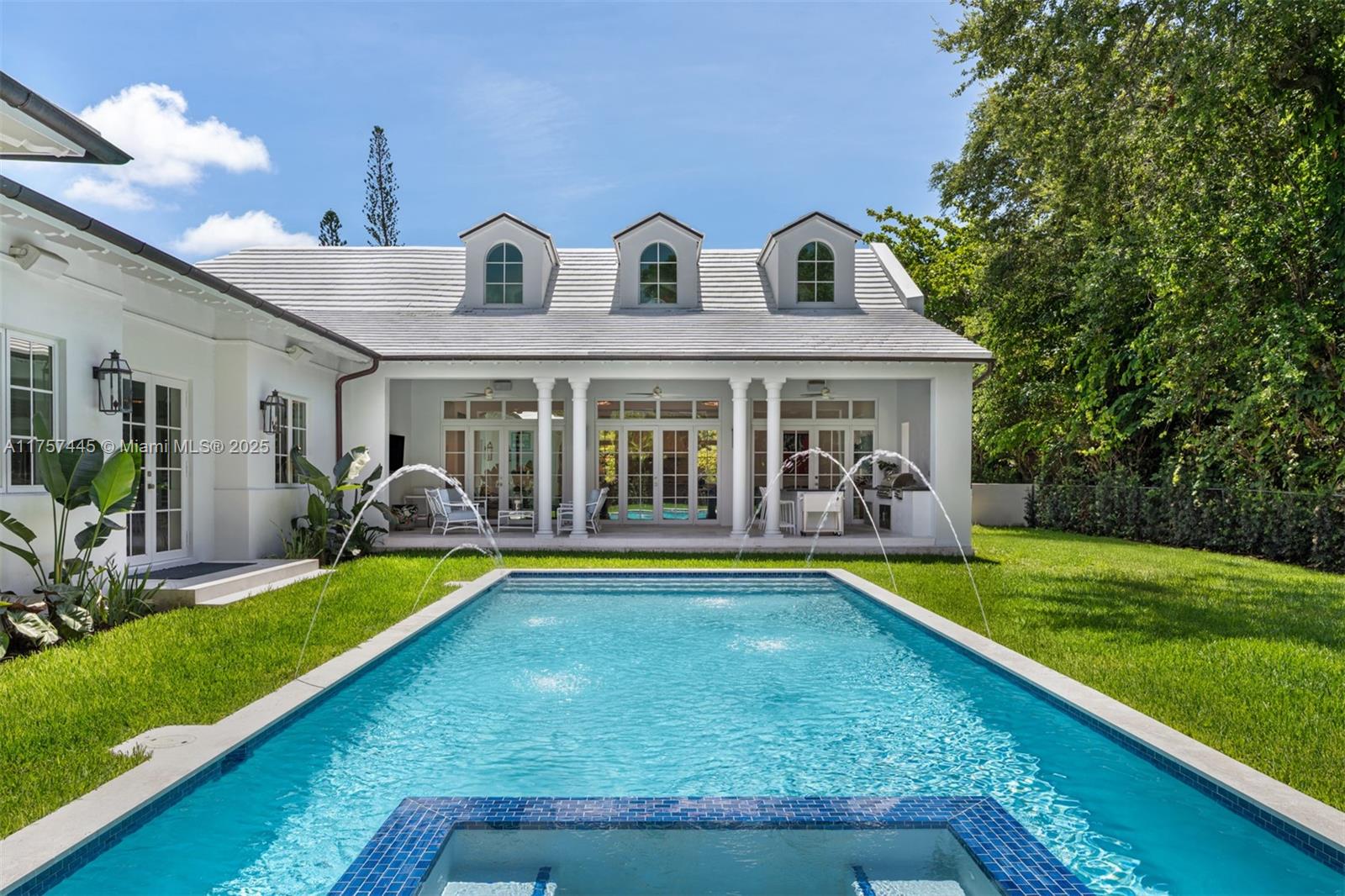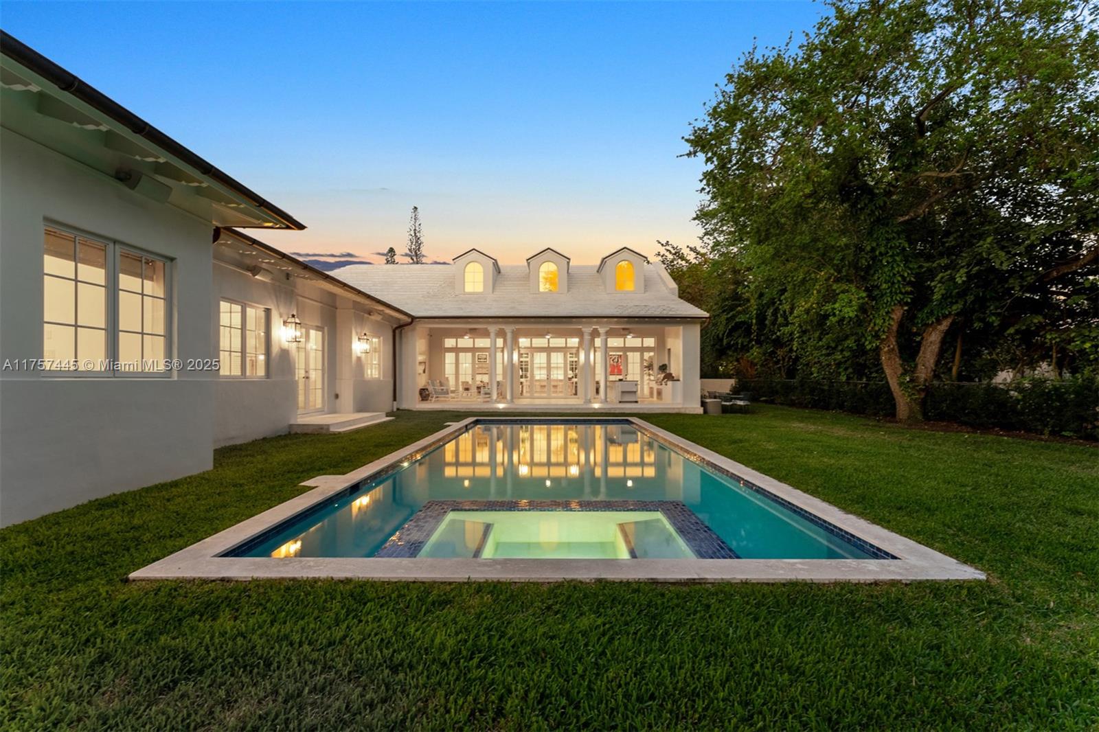 Nestled behind a private gated entrance in the heart of Pinecrest, this breathtaking estate exudes elegance and modern sophistication. With 5 bedrooms & 5.5 bathrooms, this home welcomes you with soaring vaulted ceilings, & a spacious great room that seamlessly integrates the living areas & kitchen into a beautifully open layout. The chef’s kitchen is equipped with a Lacanche Citeaux French range, dual Sub-Zero refrigerators, 2 Miele dishwashers, & a dedicated bottle wine storage room. The primary ste features a cozy sitting area, a custom walk-in closets, & a spa-like bathroom with dual sinks, a soaking tub, & a walk-in shower. Step outside to a lush backyard oasis, where a covered terrace with ambient lighting, a comfortable sitting area, a summer kitchen, & a sparkling pool.