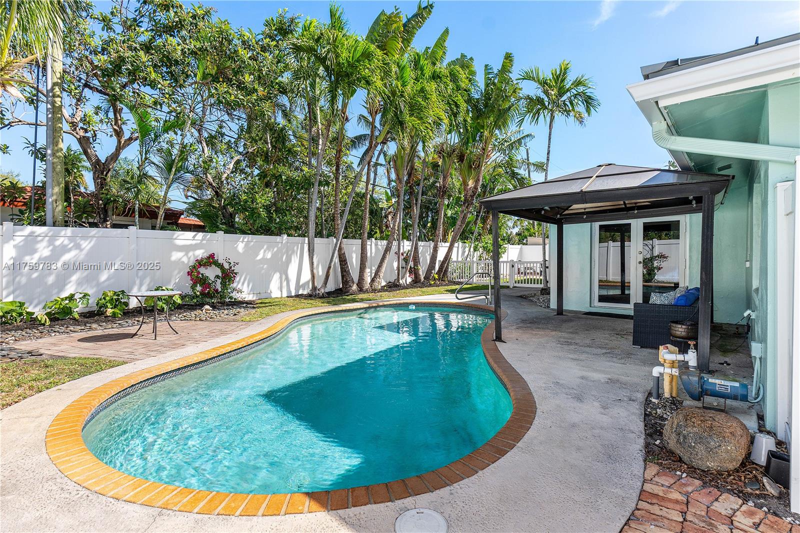 Beautifully remodeled pool home in sought-after Knoll Ridge. Light and bright with a modern open floor plan. Split bedroom design with a huge 18x21 primary bedroom plus adjoining office/nursery/home gym. French doors leading to the back patio and pool. En-suite bath with large spa tub/shower and dual sinks. Recently installed plank style tile floors throughout. Privacy and security are assured with double electronic gates and impact windows and doors all around. Metal roof (2014), A/C (2018), Water lines completely re-piped in 2007, new garage door 2021. Sewer line replaced with PVC in 2024. Chicago brick walkway leads from the circular driveway to the front door. Backyard is completely fenced with a brick paved entertainment area separate from the pool. Close to everything. No HOA.