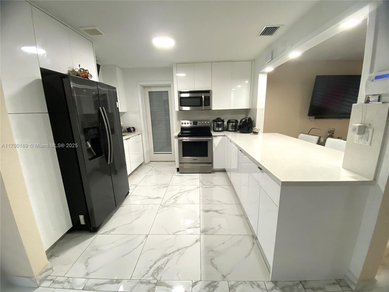THIS HOME has complete IMPACT PROTECTION and it was done with permits !! Beautifully remodeled home with sleek PORCELAIN flooring throughout, spacious open-floor plan, zebra blinds on all windows/doors, paired w/blackout shades in bedrms. Key upgrades include a brand-new shingle ROOF, improved attic insulation, IMPACT-RESISTANT windows/doors, newly installed circular driveway, tankless water heater, 2 sets of washer/dryer units and versatile carport that doubles as a sunroom. The expansive backyard is ideal for entertaining with a large, attached terrace, separate pergola & storage shed - there's even space to add a pool. ** Security cameras and TVs convey with the sale. ** Request an appointment today to preview this amazing home.