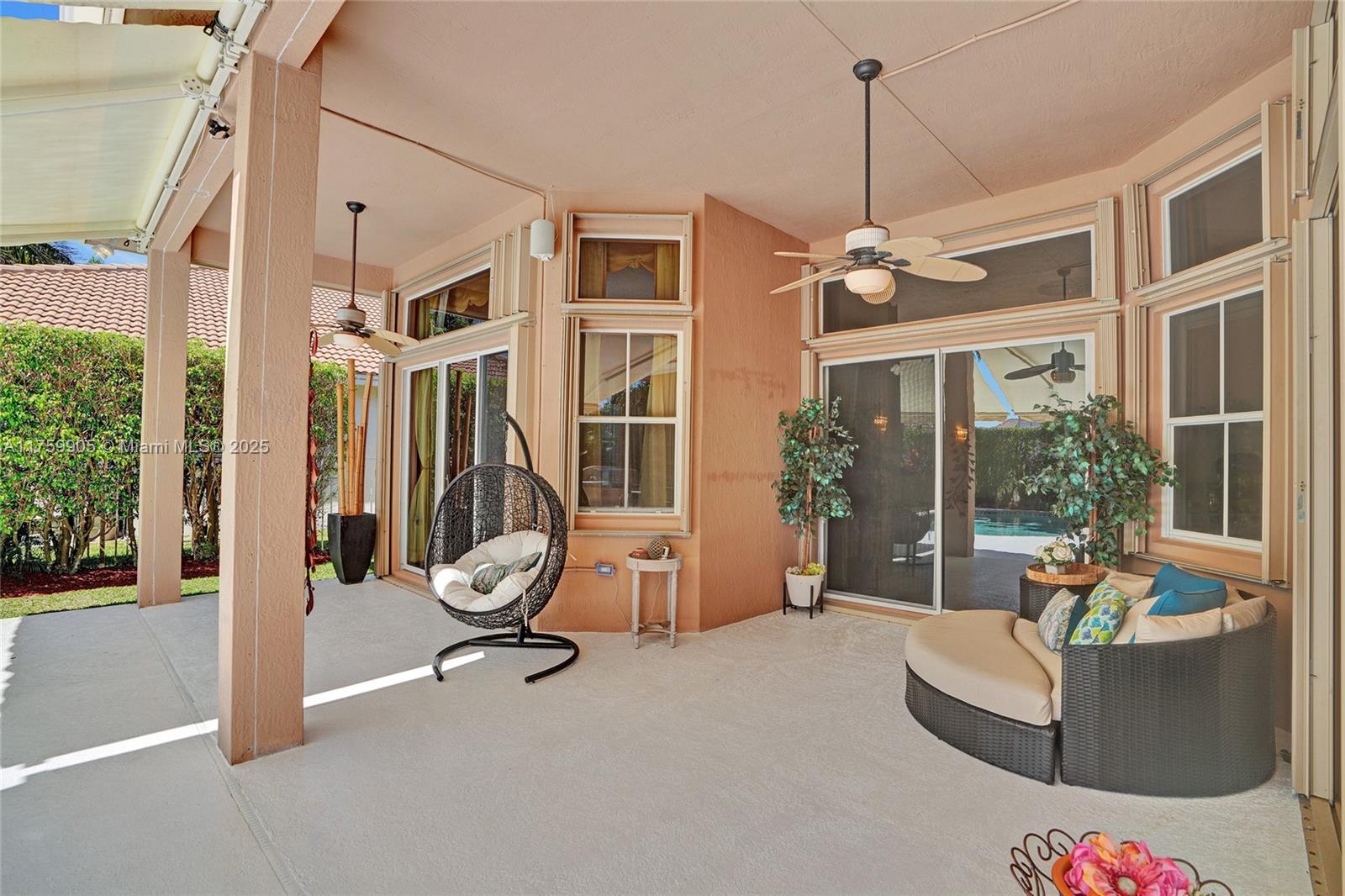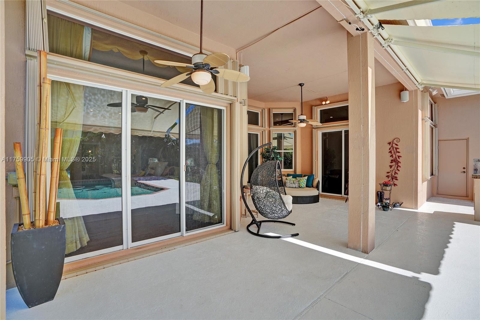 Discover resort-like living in highly sought-after Savanna gated-community. 4 bed + office, 3.5 bath, triple-split floor plan with pool and NEWER ROOF. Bathed in natural light features formal dining area, kitchen with white cabinets, granite countertops, and newer stainless steel appliances. Spacious primary suite with sitting area and spa-like bathroom with separate tub, shower, dual sinks and vanity area with adjacent office/den for work or relaxation. Entertain effortlessly with covered patio with retractable awning, overlooking 30x15 pool with child gate (available), and summer kitchen (as-is) ideal for enjoying Florida’s sunshine. Savanna offers resort-style amenities, including a clubhouse, pools, sports fields, and proximity to Town Center and A rated schools.