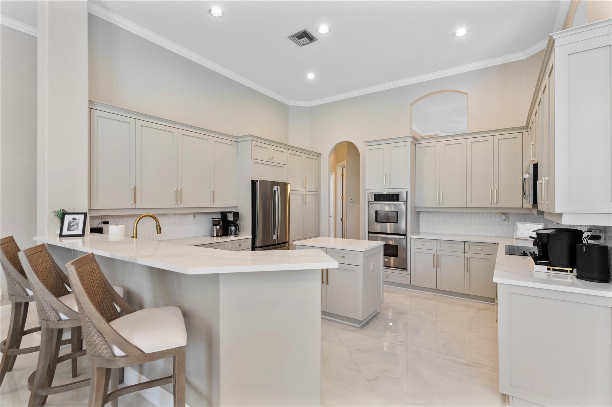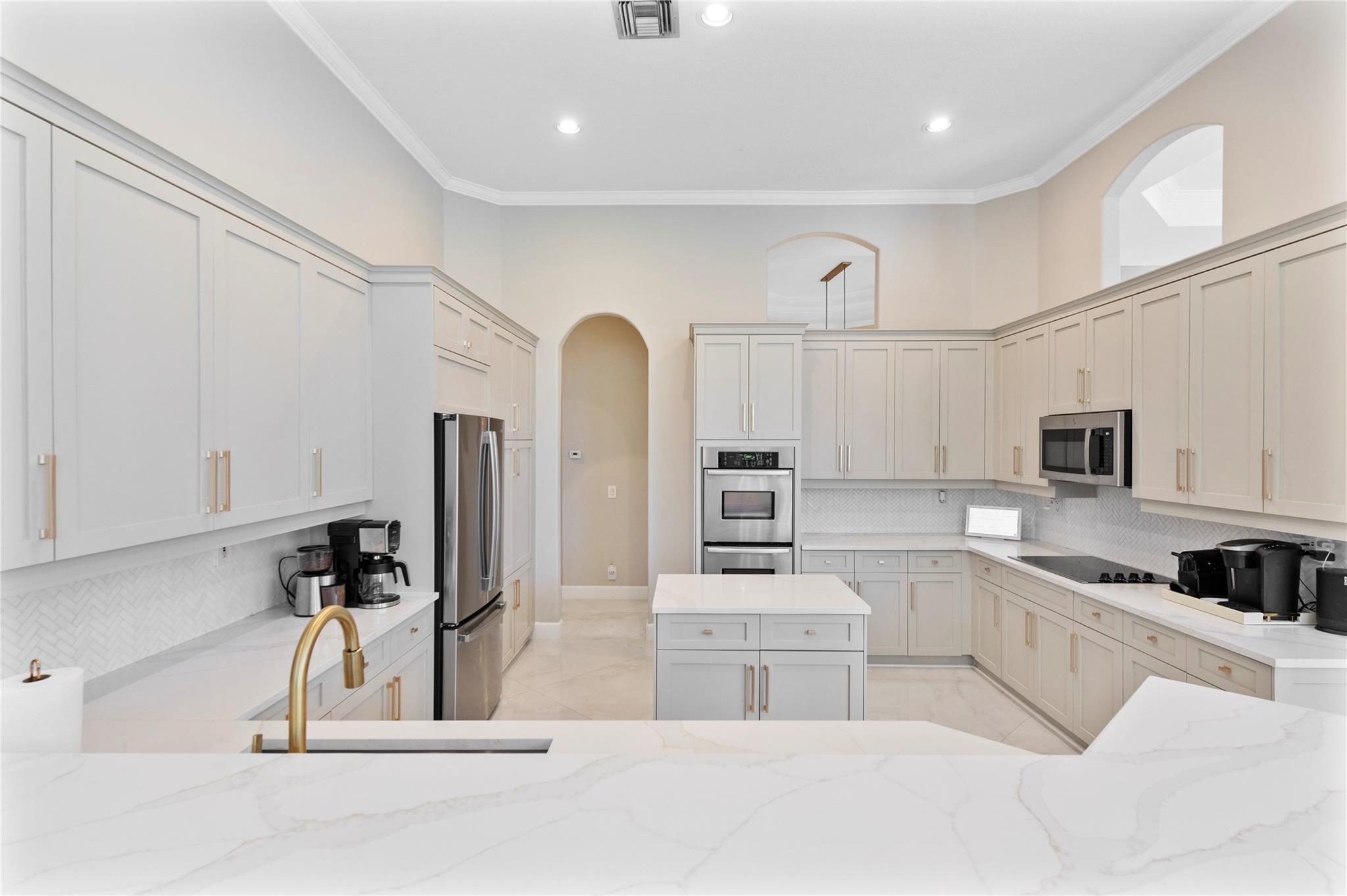 Price Adjustment to Sell! Corner Lot! Absolute Gem with Designer Features Throughout! Spacious Split Floor Plan. Open Kitchen With Calcutta Quartz Countertops, Marble Backsplash, Wood Cabinets With Crown Moldings & Framing, New Sink, Dishwasher & Refrigerator. 48x48 Gloss Porcelain Tiles Throughout Living Area. Gorgeous Lighting Fixtures, Fans, Hardware, 6” Baseboards, Wood Paneling & Accent Walls. Luxury Plank Flooring In Bedrooms. Updated Bathrooms Quartz Countertops, Porcelain Tile Floors. Custom Built-Ins in Office. Fifth Room as Office. Three Car Garage! Fenced Back Yard Oasis With Saline Pool, New Heater, Covered Patio. Freshly Painted Exterior & Interior. Laundry Room Renovated. Storm Shutters. New Washer & Dryer! Roof Inspection 4/08 Shows 5 Years Left of Life!