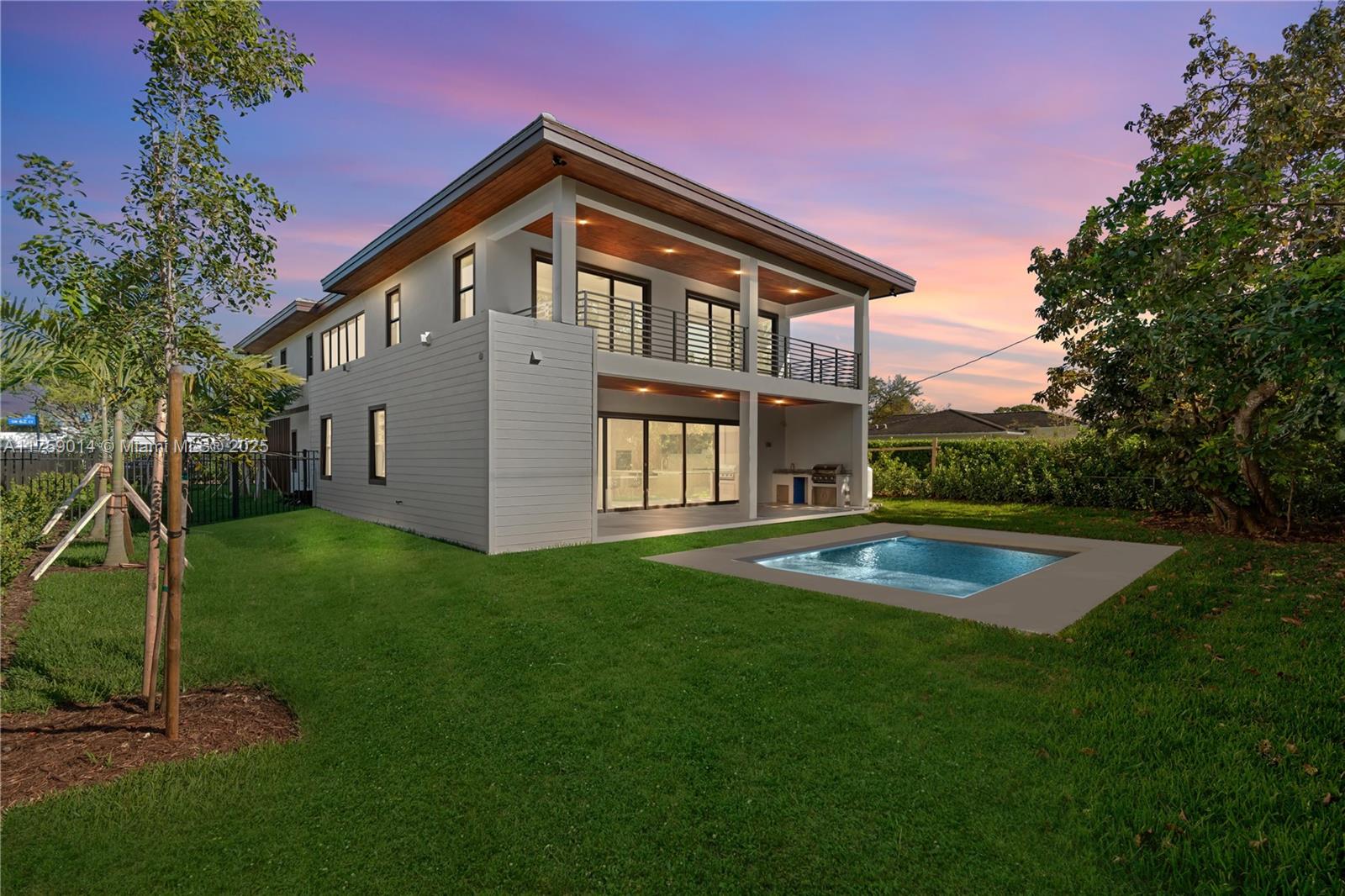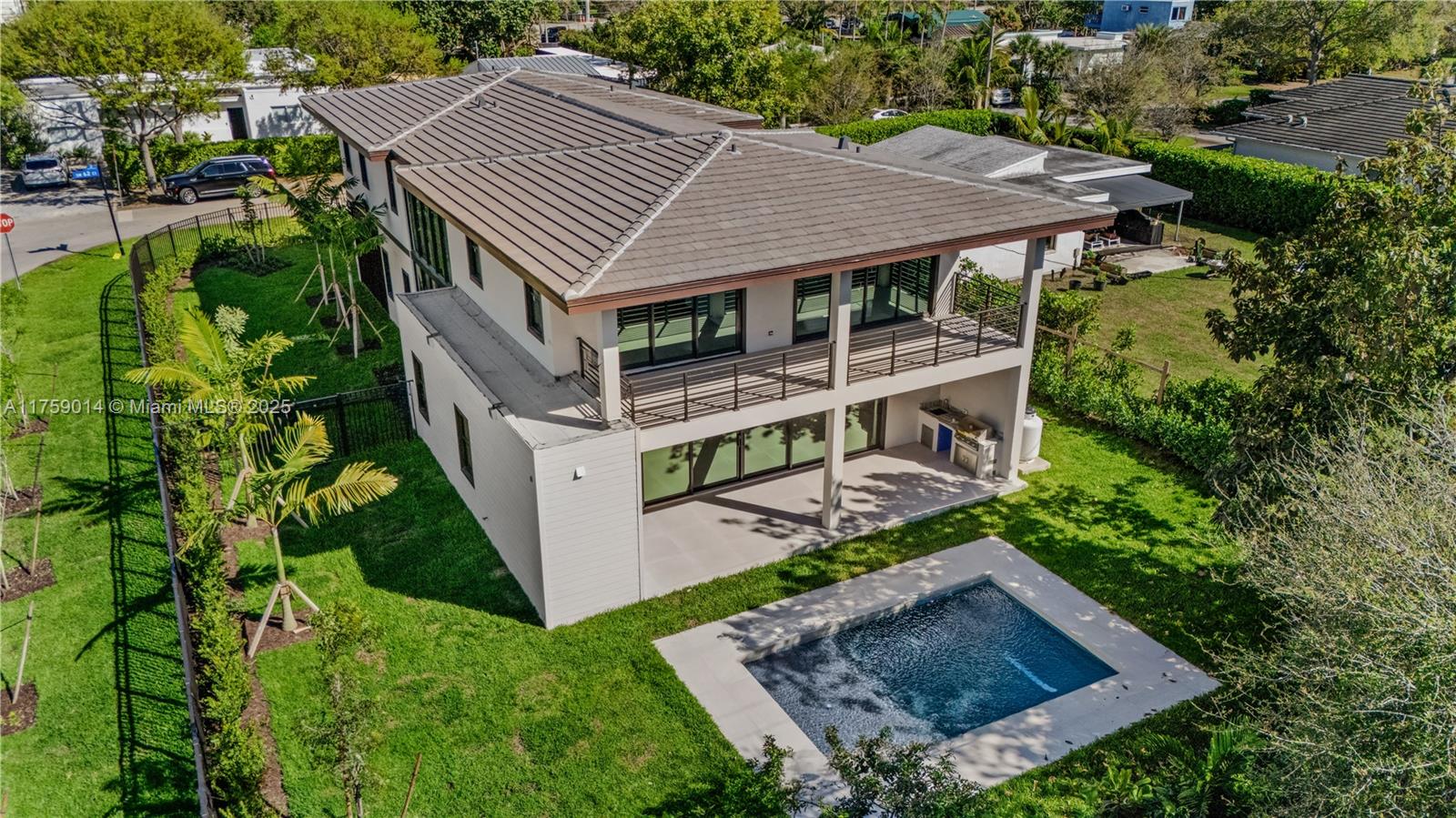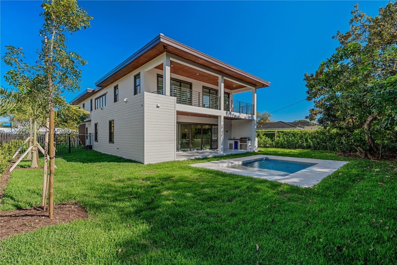 Blending contemporary Floridian design with exquisite interior finishes, this New Construction South Miami residence strikes the perfect balance between modern elegance and comfort. Offering 5 bedrooms, 6 baths, 2-car garage, and a sparkling pool, this 4,192 SF home showcases exceptional craftsmanship, custom millwork, and refined details throughout. With 5,471 SF of total area, this property is flooded with natural light, high ceilings, and an open layout that enhances the sophisticated aesthetic. The expansive master suite is a true retreat The Italian designed kitchen featuring Sub-Zero and Wolf appliances flows effortlessly into a summer kitchen, ideal for outdoor entertaining. Nestled among mature trees, this serene property offers the ultimate blend of luxury and effortless living.