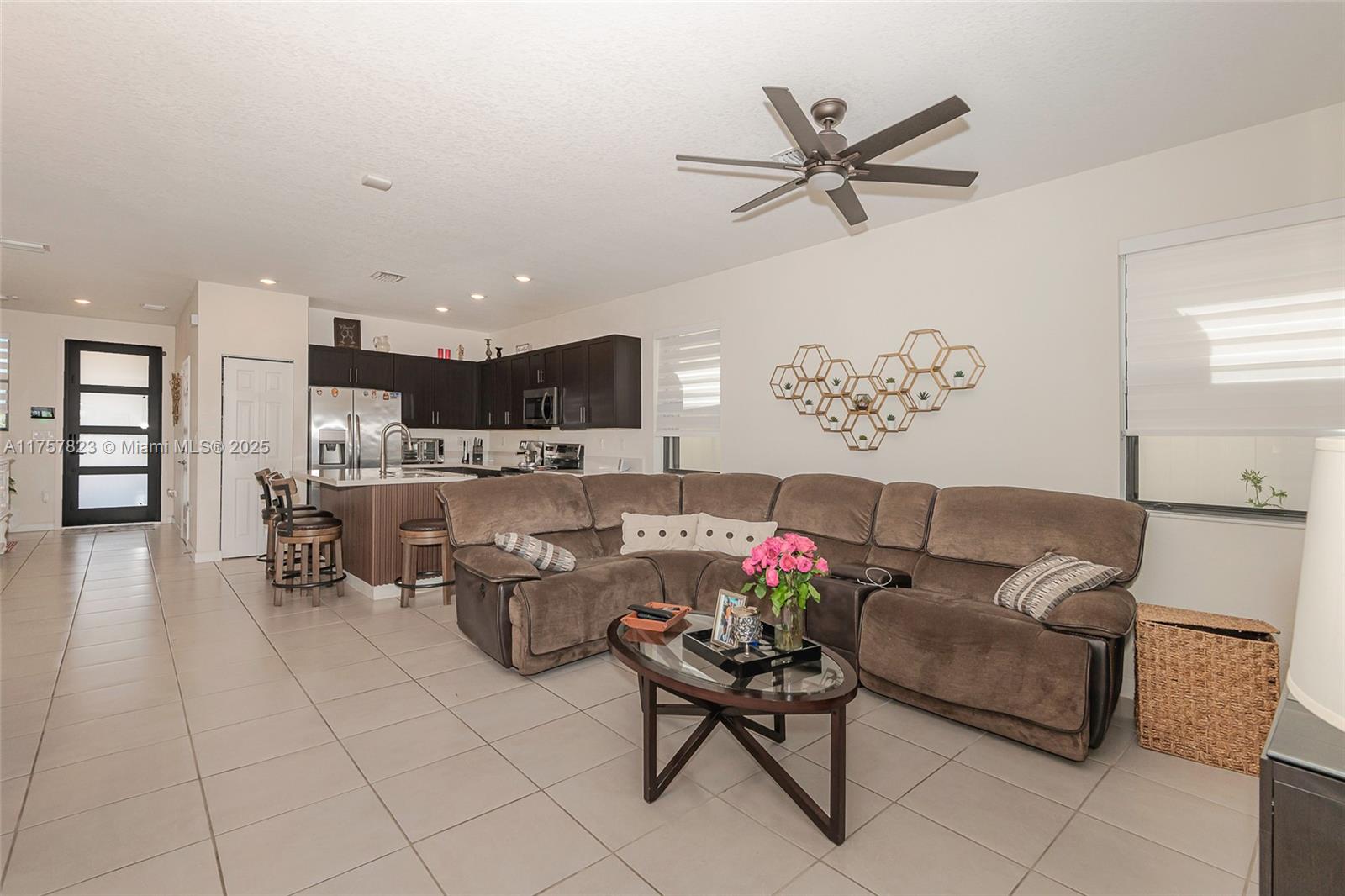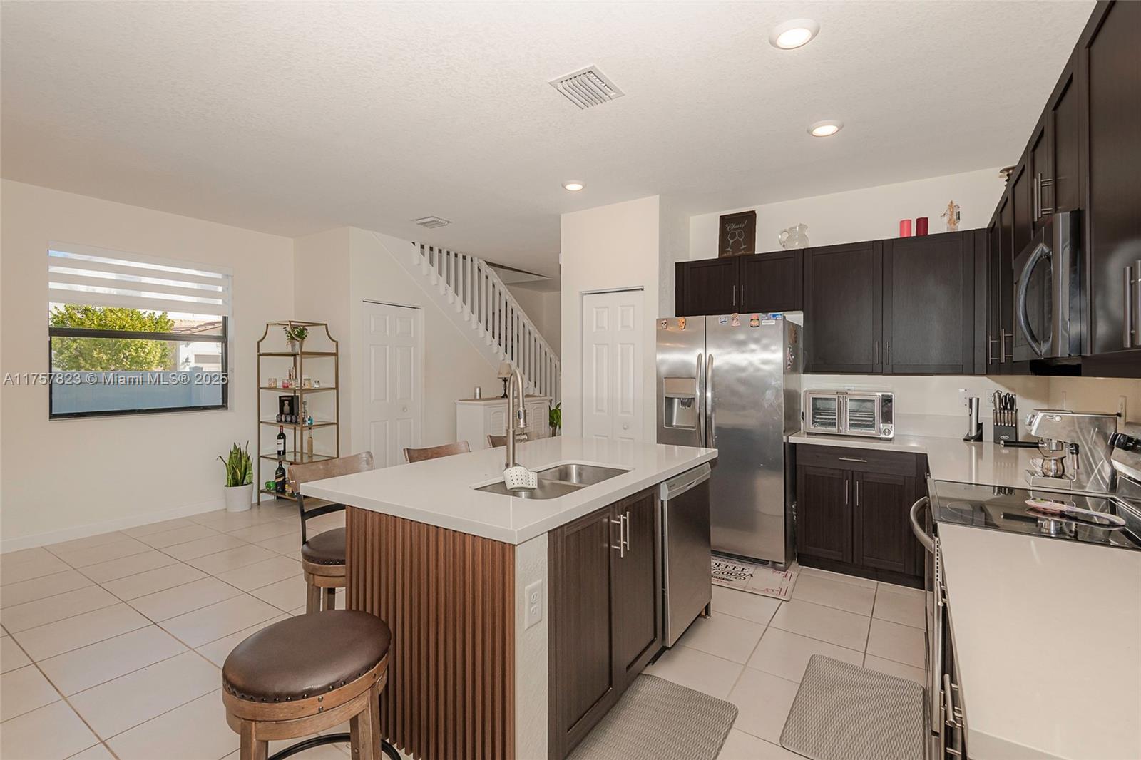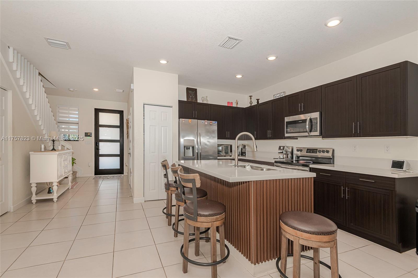 This elegant and spacious 5-bedroom, 3-bathroom single-family home is located in the well-established gated community of Aquabella. Featuring tile and carpet floors, the home offers a luxurious and inviting atmosphere. The open-concept living and dining areas are bright and spacious, creating a perfect space for family gatherings. The kitchen is equipped with modern appliances and ample storage. The large bedrooms include a master suite with a private bathroom. Washer and dryer conveniently located on second floor. Outside, enjoy a beautiful above ground pool and patio area, perfect for entertaining. New A/C. The pavered driveway and curve appeal adds to the home's charm, providing privacy. This home is ideal for those seeking spacious living space in a peaceful community.