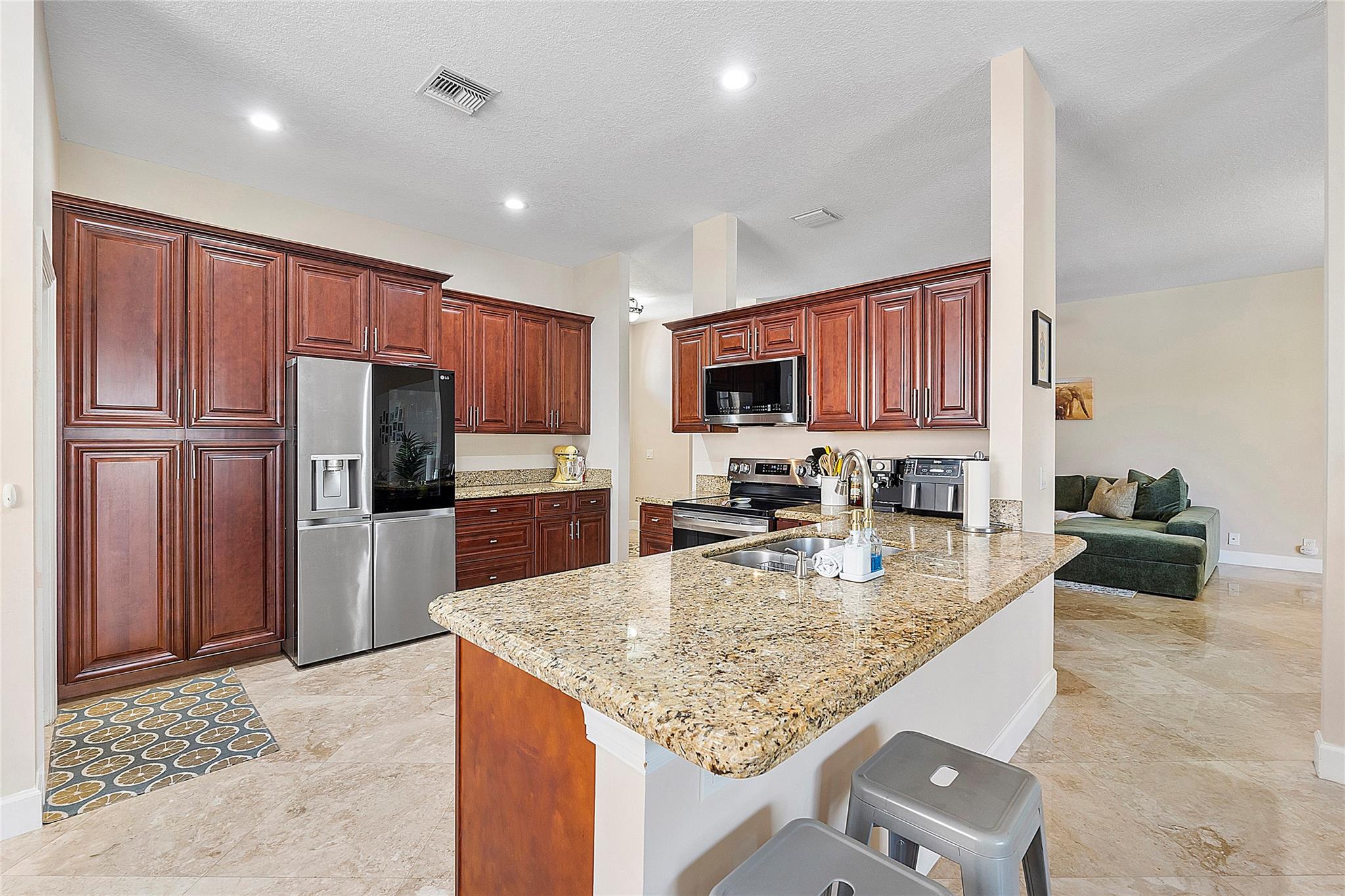 Best opportunity in Parkland- this 4 bedroom, 2 bathroom pool home is turnkey and ready for you! Every upgrade- from kitchen to bathrooms has been undertaken for your enjoyment. Featuring a water lot, with a screened in pool- this home is ideal for Florida Summers! Key features include: Travertine Marble and wood flooring, 2022 A/C, 2016 Roof, 2013 Water Heater, and full impact protection. Community offers lows HOA, while remaining central to every convenience and amenity available in Parkland (from A-rated schools to shopping and airports,) Schedule your showing today!
