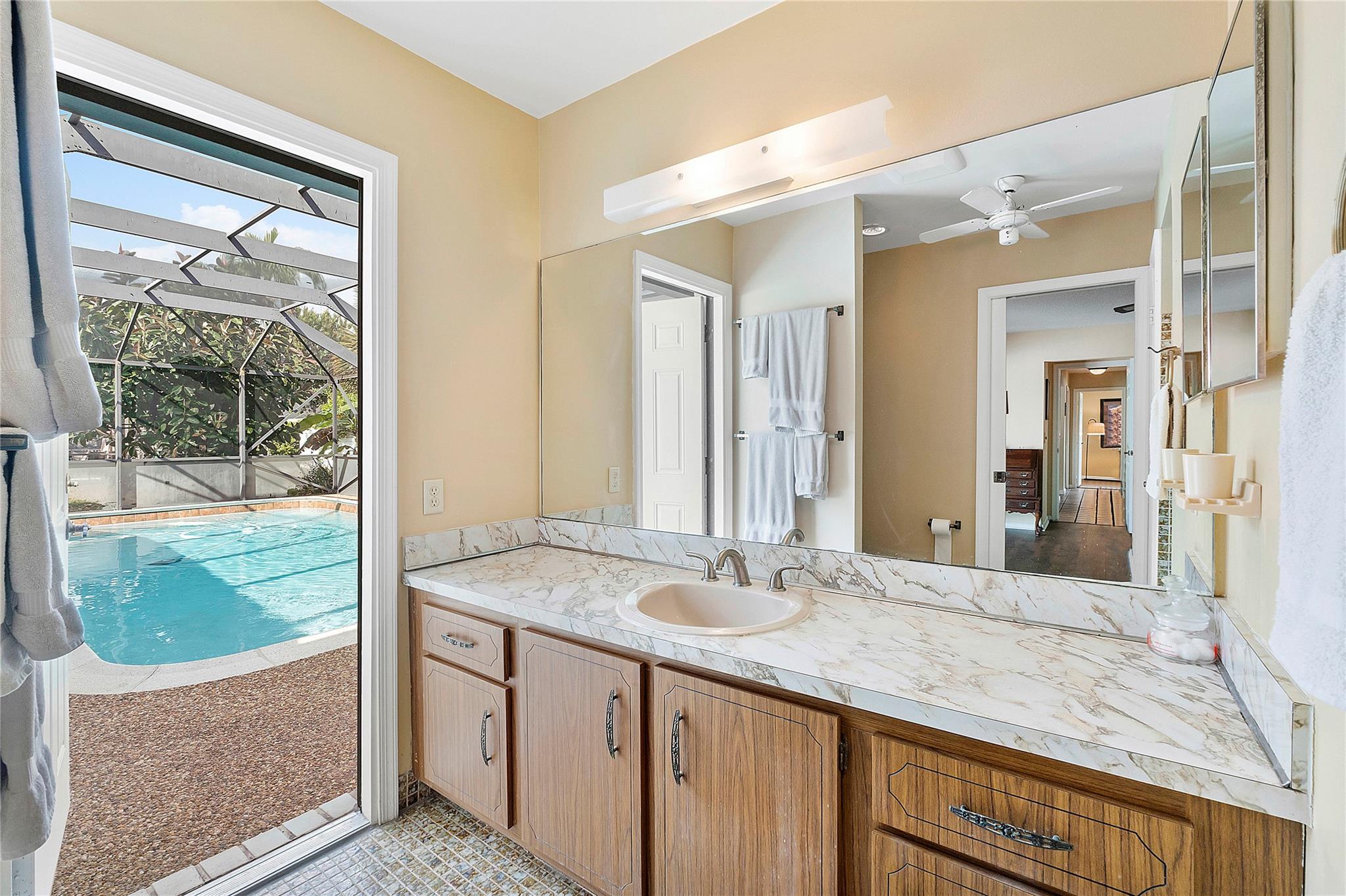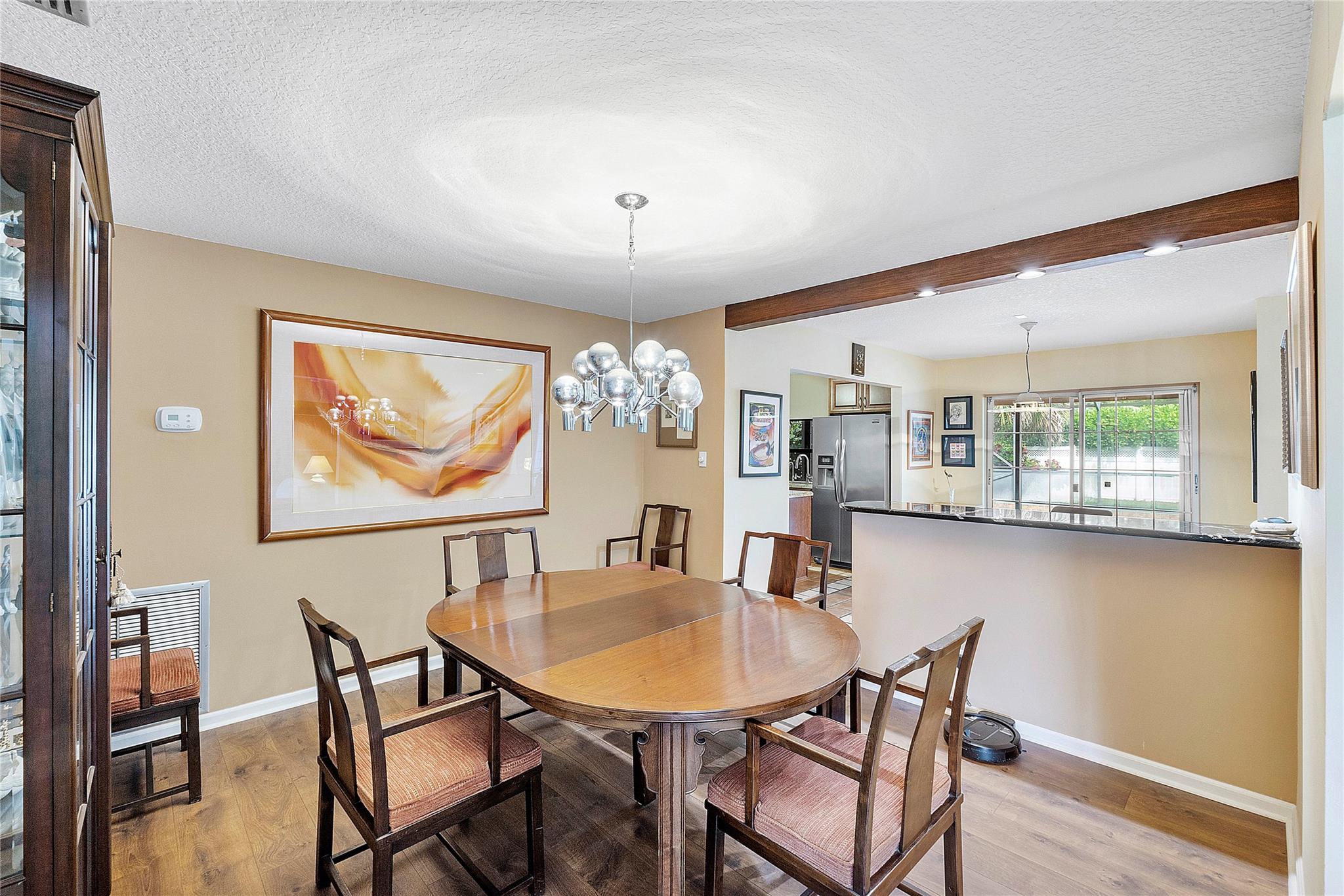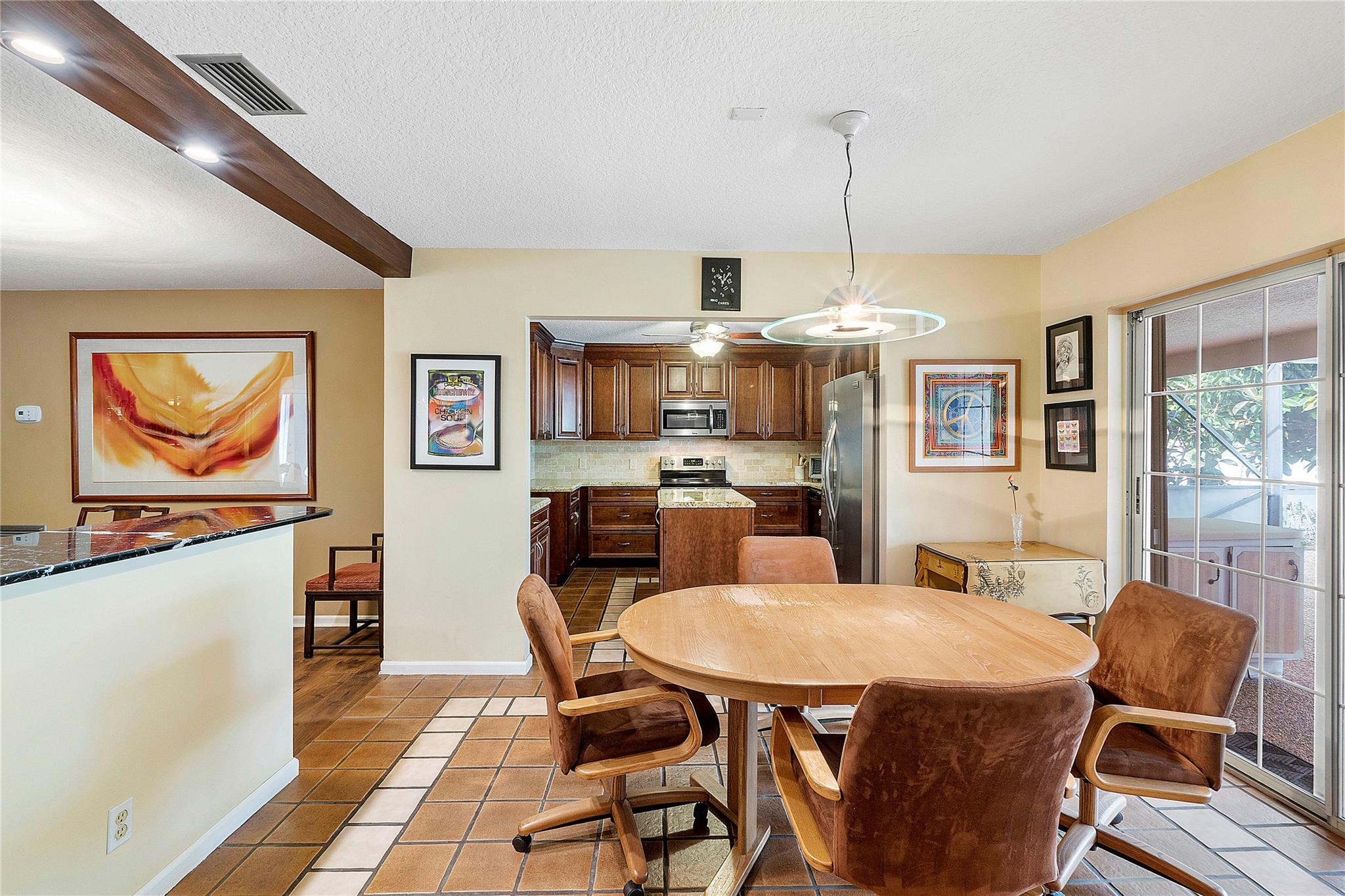 Situated in sought-after area of Maplewood, this well-maintained home welcomes you. Fantastic curb appeal. Lush landscaping provides the perfect aesthetic with pineapple, banana, mango and avocado trees. A totally renovated kitchen/silgranit sink and breakfast area open to the family room with fireplace all overlooking the screened pool. Large Bedrooms. Hurricane protection with impact windows, 2 in the front and 1 on the east side, as well as 1 accordion and panels. The residence also boasts a 2018 AC, a 2020 WH, new electric panels 2019, 2025 garage door opener, knockdown ceilings & no carpet! The pool pump is equipped with variable speeds for low electric bills. Circular drive and automatic sprinklers. This property is situated close to top schools, parks, shopping, and major highways.