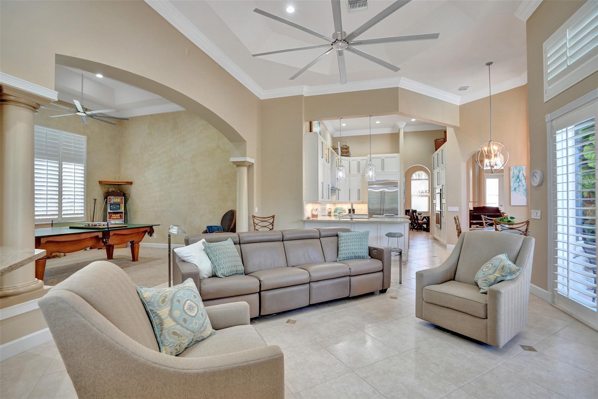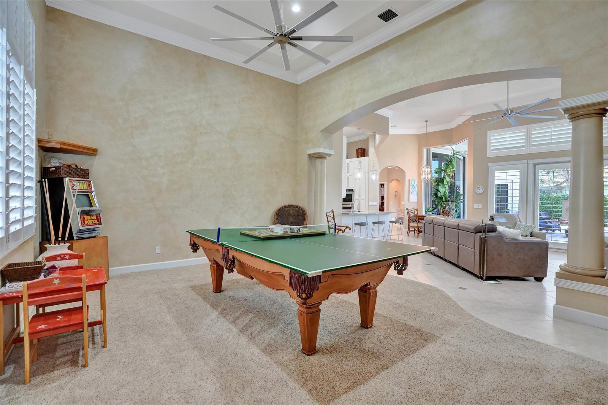 WELCOME TO HAWKS LANDING WITH MILLION DOLLAR+ AMENITIES, 24/7 MANNED GATE. THIS BEAUTIFUL HOUSE SITS IN A QUIET CUL DE SAC W/ONE OF THE LARGERST LOTS IN THE COMMUMNITY. THE HOUSE IS PROFESSIONALLY LANDSCAPED, CIRCULAR PAVER DRIVEWAY, 3 CAR GARAGE, UNDERGROUND GENERATOR. THE LARGE PATIO W/RETRACTABLE ELECTRIC AWNING OVERLOOKS THE POOL AND LAKE. THERE ARE 4 BEDROOMS, ONE CURRENTLY USED AS OFFICE W/CLOSET, 3 FULL BATHROOMS, TRIPLE SPLIT. KITCHEN HAS QUARTZITE COUNTERS, DESIGNER BACKSPLASH, ISLAND W/UNDERCOUNTER MICROWAVE, SS APPLIANCES. THE FAMILYROOM HAS AN EXTENDED GAMEROOM FOR BILLIARDS/PING PONG. YOU WILL NOTICE CROWN MOLDING AND PLANTATION SHUTTERS. THE CLUBHOUSE HAS PARTYROOM, FITNESS GYM, OUTDOOR POOL, CLAY TENNIS COURTS AND PICKLEBALL. DUAL A/C 2024, ROOF 2019, GENERATOR 2022.