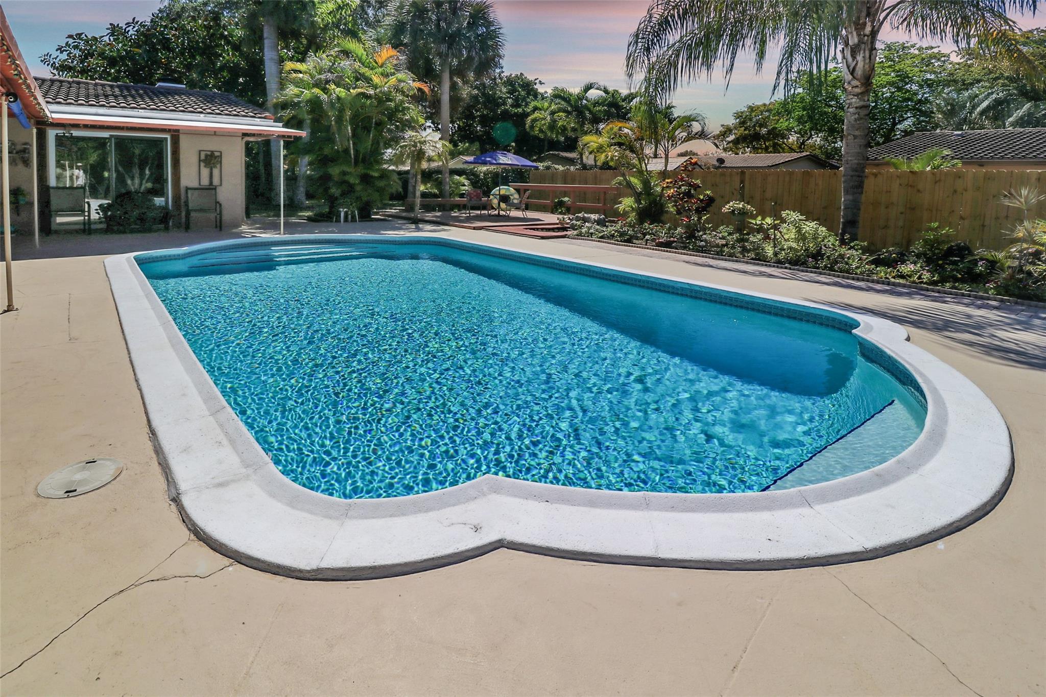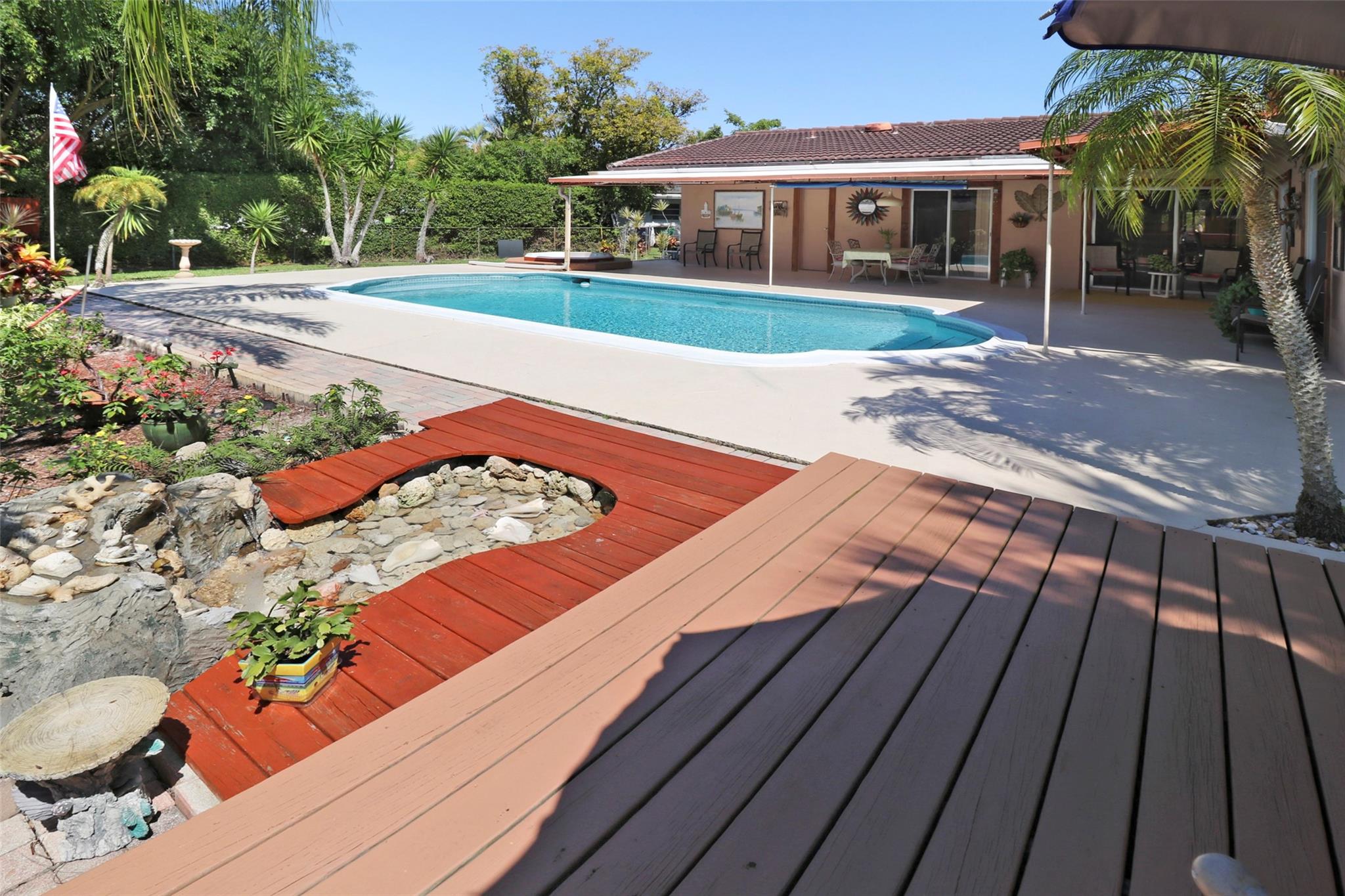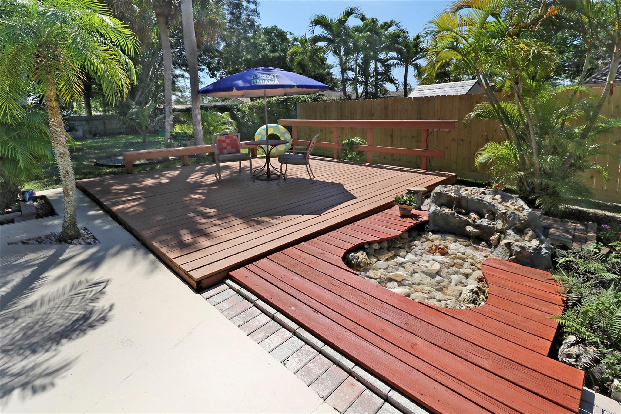 BACK ON MARKET. Buyer fin. issue. Seller to pay buyer closing costs. Great Value... Appraised at 680K. 4/2 home, on a cul-de-sac in beautiful Deer Run. NO HOA!!. 1st lg. living area overlooks the pool and garden. 2nd living area boasts a beautiful stone fireplace with pool view. Recess lights. Kitchen new appliances, hood over stove & plenty of cabinet space. Tile, Laminate & carpet in the home. Nice size master with walk in closet & recess lighting. Upgraded master bath with Italian tile. 2nd bath is a cabana w/ tub and shower. 2nd & 3rd bedroom are a nice size w/ fans & double closets. 4th bedroom has been opened up to enhance liv area. Easily converted back. You will Luv Luv the back yard. Lots of open space. Lg pool & patio, lg wood deck, garden, waterfall, spa, fully fenced.