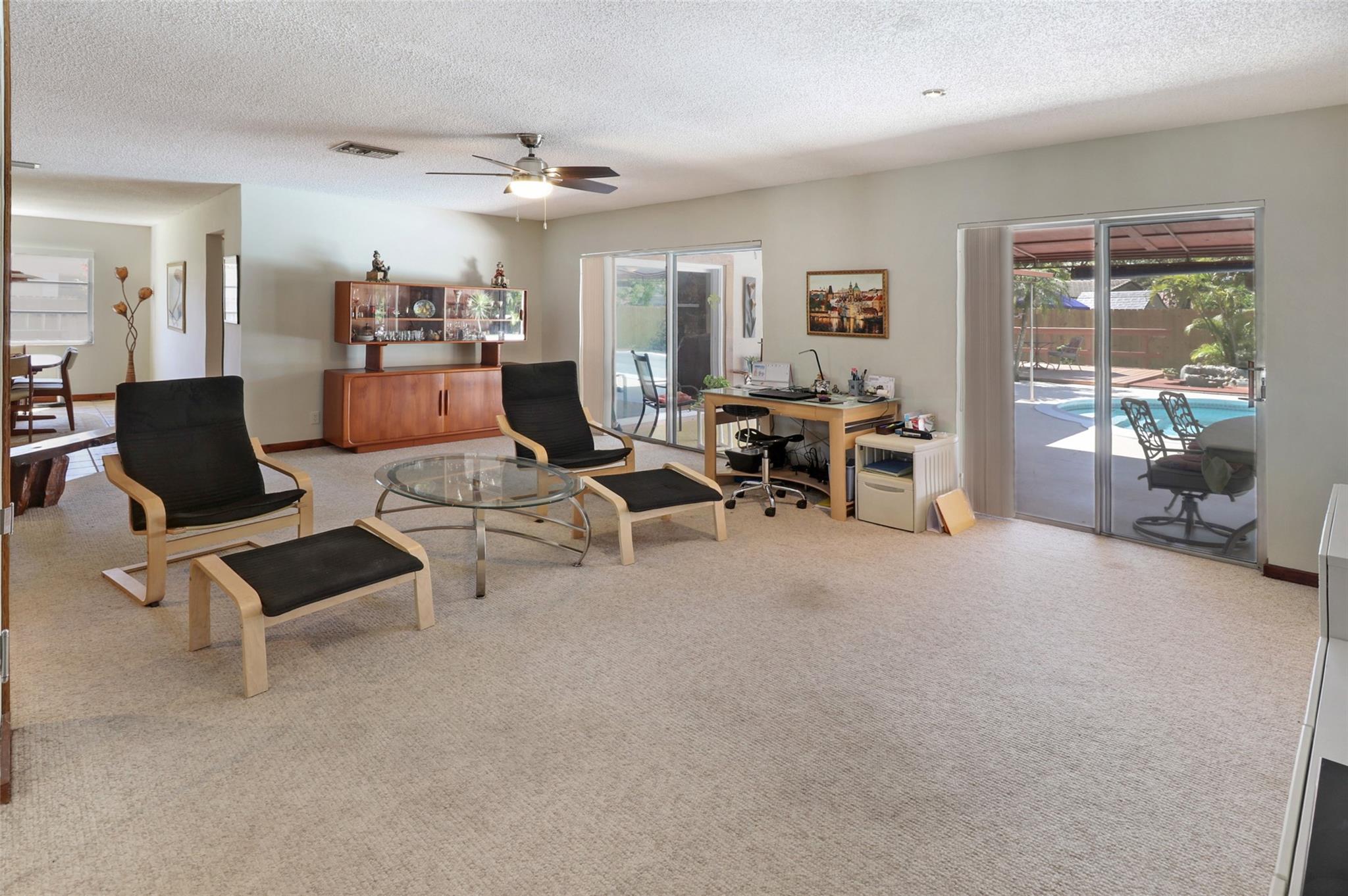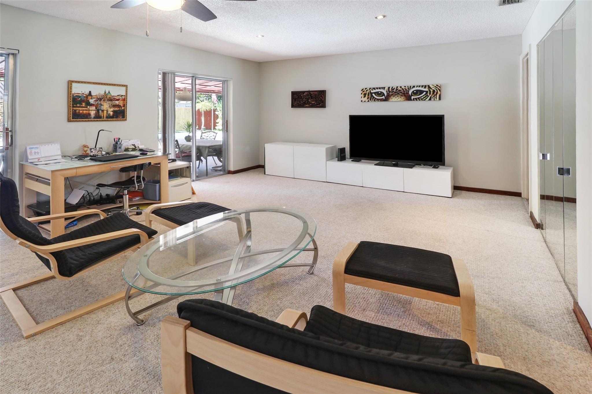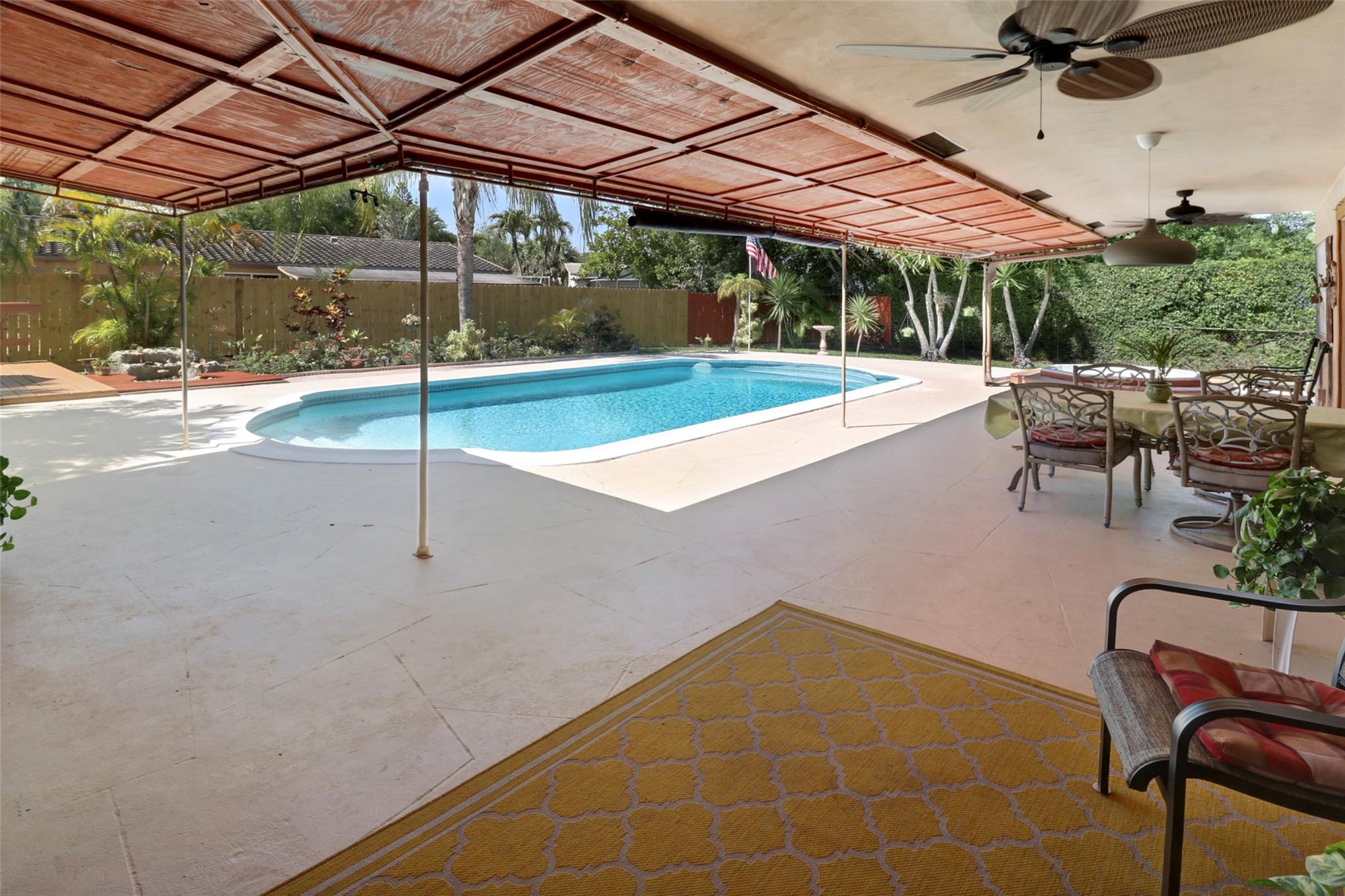 BACK ON MARKET. Buyer fin. issue. Seller to pay buyer closing costs. Great Value... Appraised at 680K. 4/2 home, on a cul-de-sac in beautiful Deer Run. NO HOA!!. 1st lg. living area overlooks the pool and garden. 2nd living area boasts a beautiful stone fireplace with pool view. Recess lights. Kitchen new appliances, hood over stove & plenty of cabinet space. Tile, Laminate & carpet in the home. Nice size master with walk in closet & recess lighting. Upgraded master bath with Italian tile. 2nd bath is a cabana w/ tub and shower. 2nd & 3rd bedroom are a nice size w/ fans & double closets. 4th bedroom has been opened up to enhance liv area. Easily converted back. You will Luv Luv the back yard. Lots of open space. Lg pool & patio, lg wood deck, garden, waterfall, spa, fully fenced.