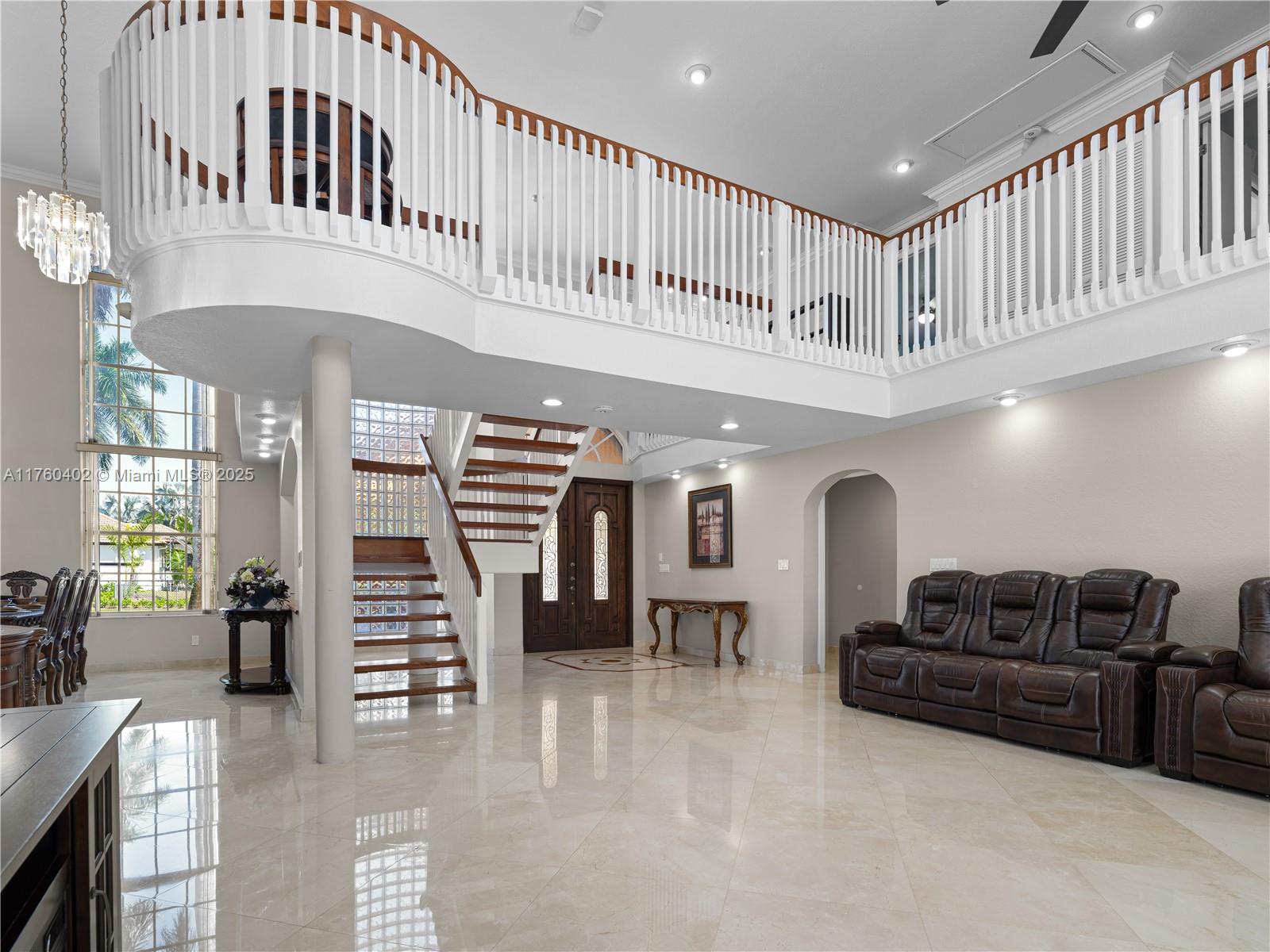 This residence, situated within the prestigious and sought-after Plantation Acres community, presents 4 spacious bedrooms and 4 full bathrooms, sprawling over a 37,236 square foot lot. The primary suite, along with an en-suite bedroom, is conveniently located on the ground floor. The interior features marble and wood flooring and high-volume ceilings. The exterior offers an expansive yard, saltwater pool ideal for entertaining, a circular driveway, a 2-car garage, a complete perimeter fence, and a shed for additional storage. Extended driveway for trailers, campers, boats, toy hauler, etc. Plenty of space for an RV as well. Located just minutes from the American Heritage School, Plantation Equestrian Center, and upscale shopping and dining, this home offers tranquil and luxurious living.