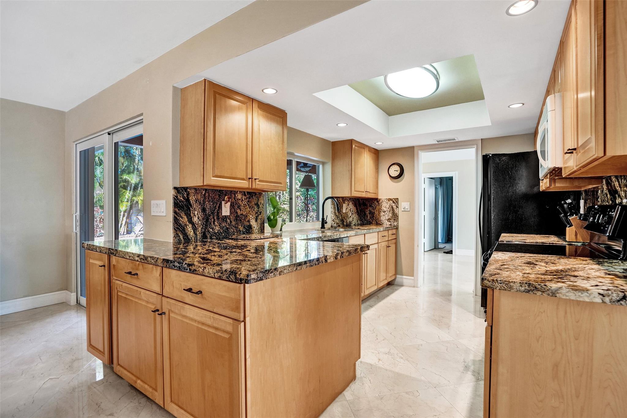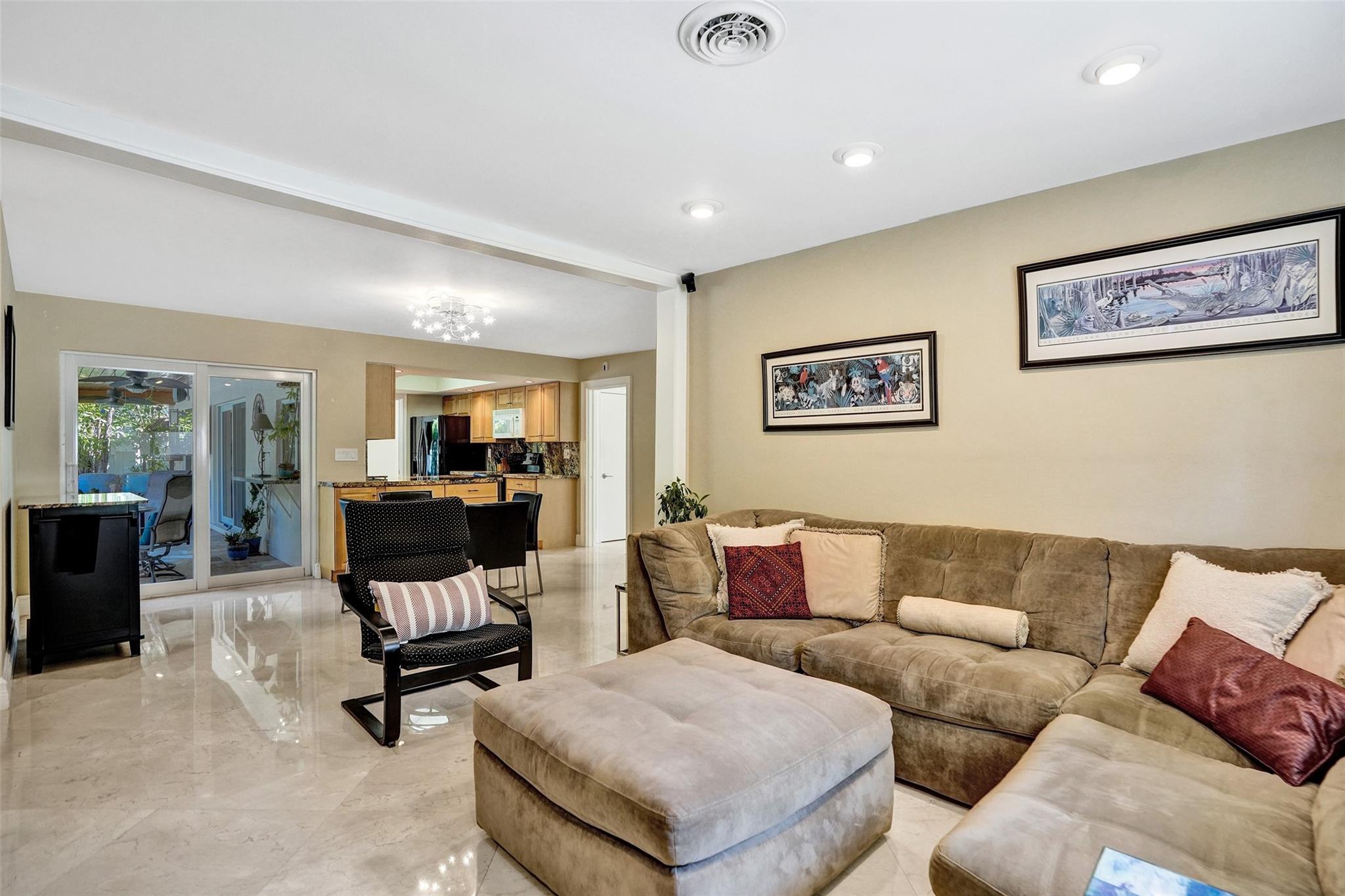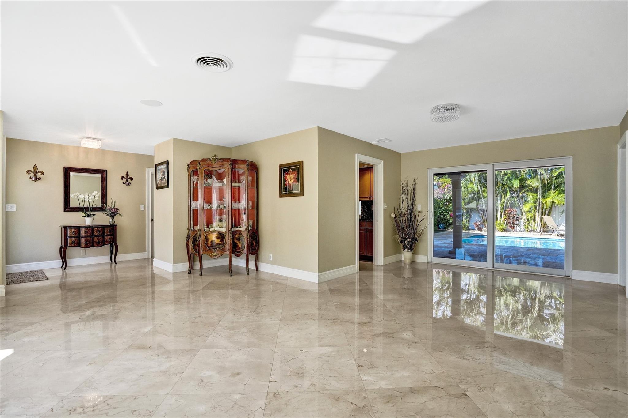 Discover the perfect blend of comfort and location in this beautiful home built on an elevated ridge and tucked into the desirable neighborhood of Mary Knoll, in eastside Coral Ridge Addition. The lushly landscaped and fully fenced back yard offers a spacious covered patio with heated pool/spa for private living and entertaining with easy access to the updated kitchen. Enjoy the compact putting green in the backyard for that little extra practice time. There is full hurricane protection including impact windows and doors and the replaced underground pipes offers peace of mind. Inside, enjoy the natural light, marble floors throughout the living areas, split bedroom layout and a large family room off the kitchen. Other features include a tankless hot water heater and two water meters.