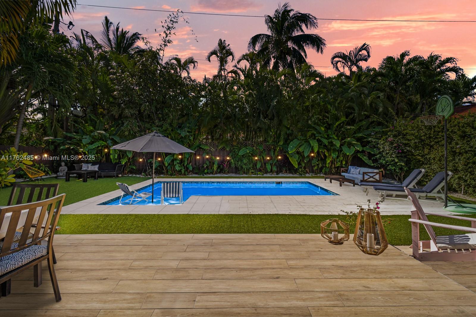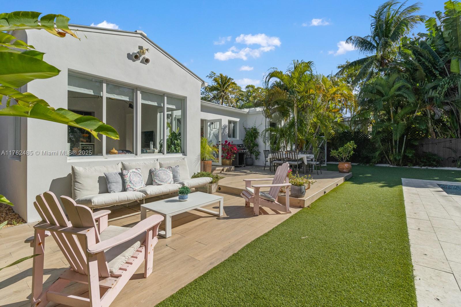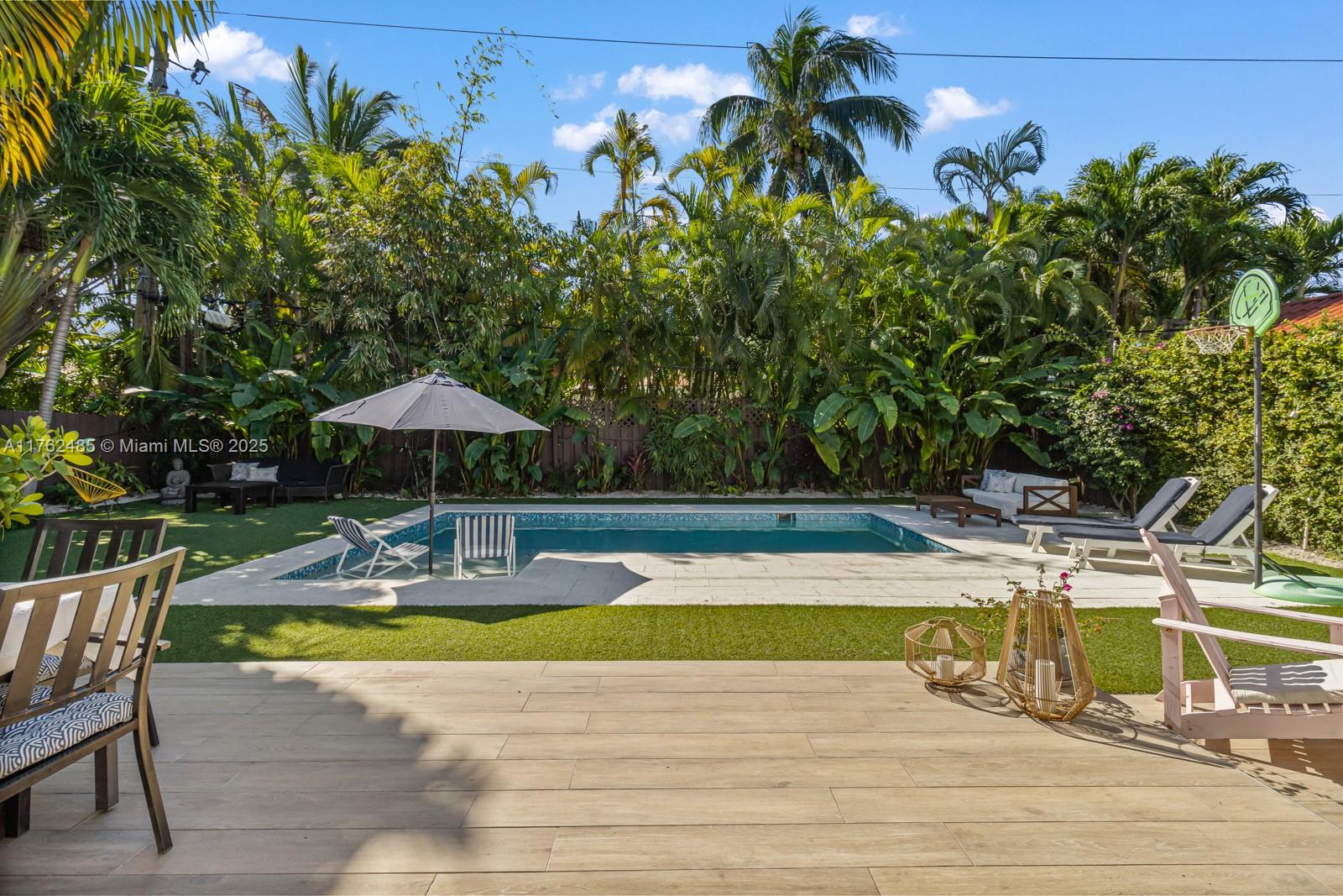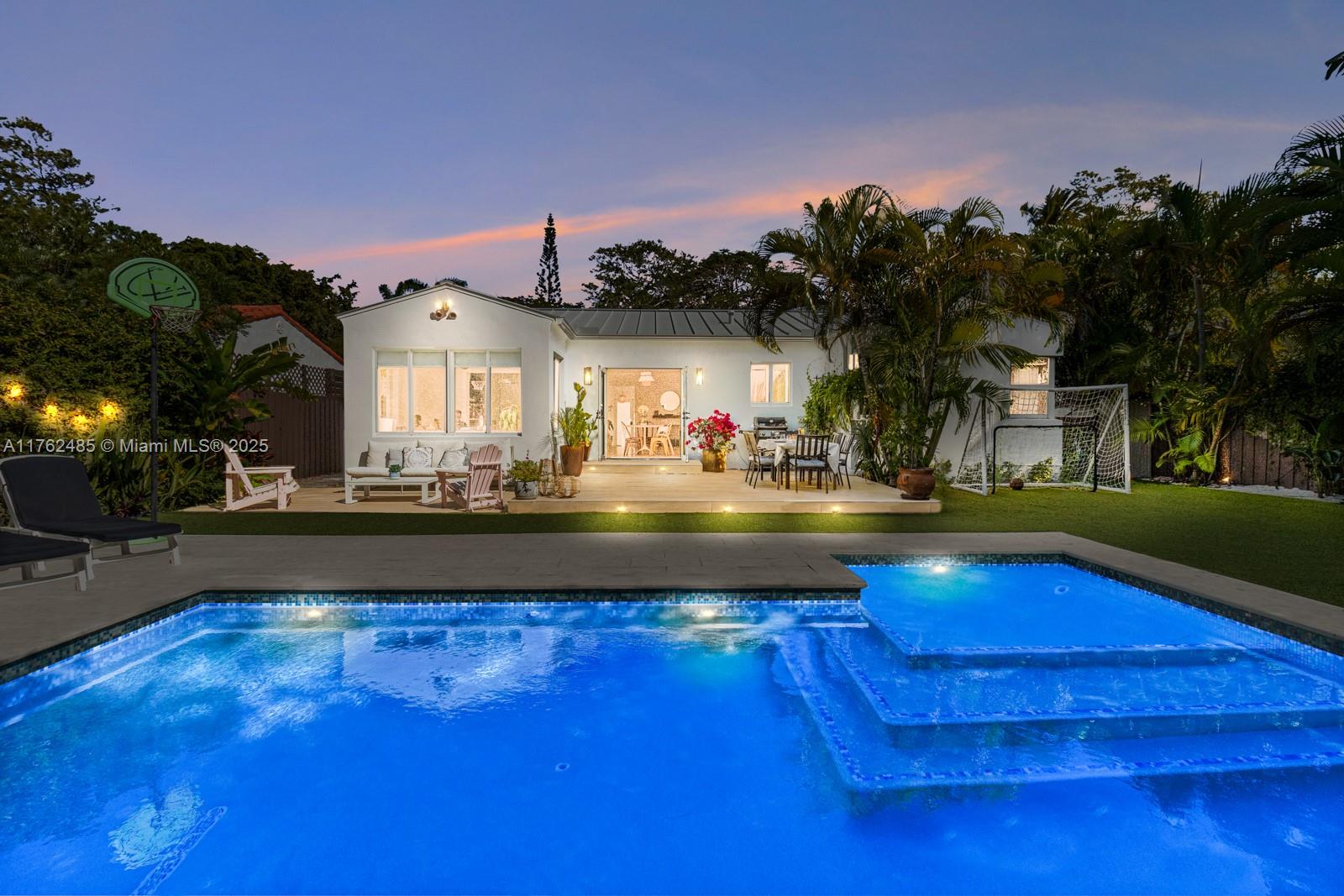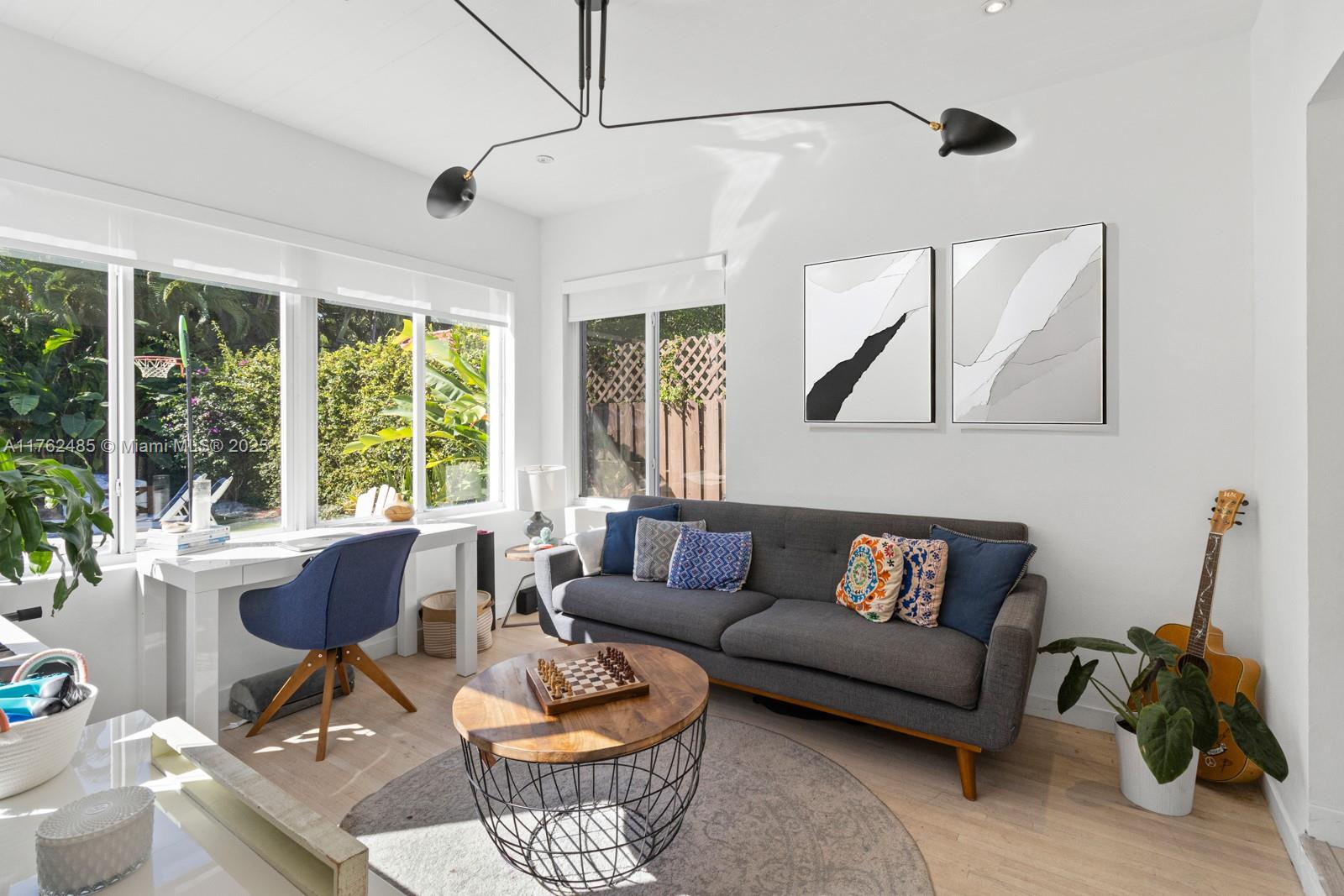 A private Retreat with a Dream Backyard! Nestled in Belle Meade, a desirable gated community, this 2BD/2BA home features an en-suite primary bedroom, a den overlooking the pool and a converted garage currently used as a 3rd bedroom, ideal for office, gym, or studio. Offers approx. 1,681 sq ft of interior space. Step outside to a magical tropical backyard with a heated pool, elegant terrace and lush landscaping, perfect for relaxing or entertaining. This home, topped with a durable metal roof, impact windows, is just minutes from the Design District, Wynwood and Miami Beach, the perfect balance of peaceful privacy and vibrant city living. LOCATION, LOCATION, LOCATION !!! 3rd room may not be reflected in public records as a bedroom. Buyer to verify use. Make this DREAM HOME yours!