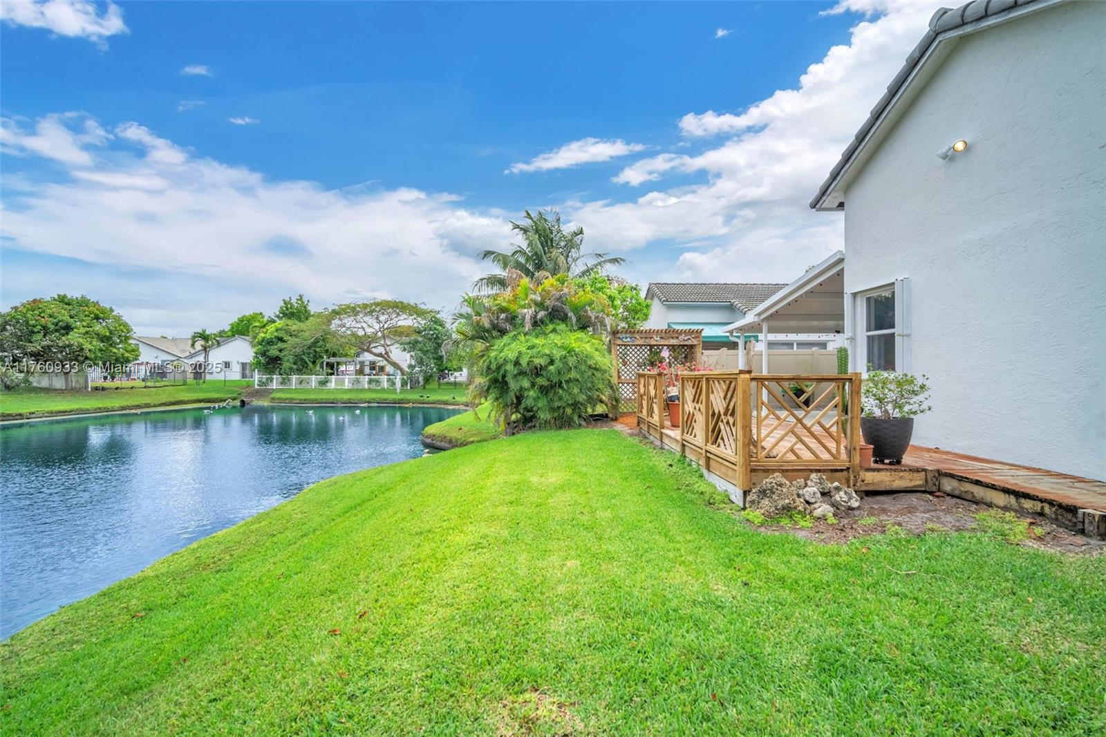 Charming Lake View Home in Las Palmas – A Rare Find! Welcome to this beautiful lake view home, located in a boutique community with only 58 homes and a low monthly HOA fee of just $77 ensuring a well-maintained and peaceful neighborhood. This cozy 3-bedroom, 2-bathroom home offers over 1,700 sq. ft. of living space with a split floor plan and vaulted ceilings, providing both privacy and comfort. Step outside to your private patio and deck, where you can relax and enjoy breathtaking lake views. Recent upgrades include a hard-wood floors in master bedroom, New A/C, new roof, hurricane shutters, and a hurricane-rated garage door, offering enhanced protection and durability. Conveniently located with quick highway access and close to shopping, dining, and entertainment, this home is a must-see