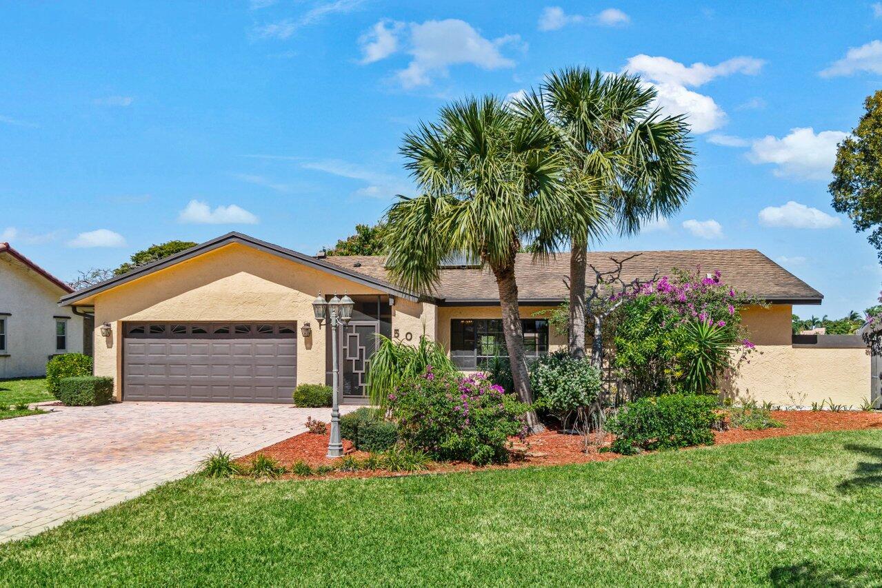 Rare opportunity available in East Boca. YAMATO & I-95 - NO HOA! Step inside this charming 3 Bedroom, 2 Bath pool home that is situated on a 1/3 of an acre overlooking the former Ocean Breeze Golf Course, featuring soaring wood beam vaulted ceilings with clerestory windows, an oversized driveway, 2 car garage, and spacious Florida room and outdoor patio. Don't miss this chance to own this meticulously maintained, stylish, and potential-filled home! Immediate access to I-95. Mins to Beach, FAU, Lynn University, Downtown Delray, Mizner Park & Royal Palm Plaza. A+ Rated Schools.