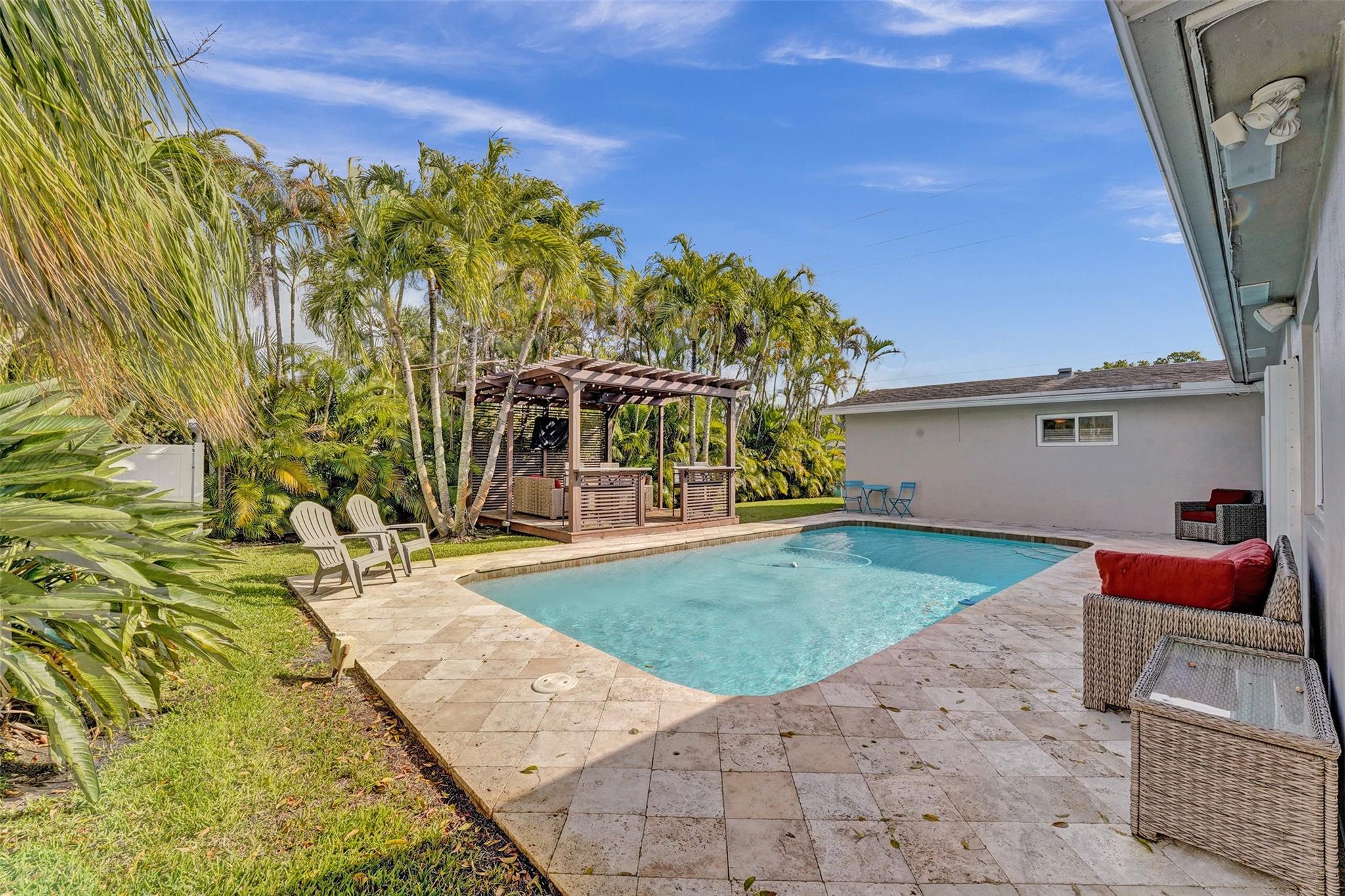 HOLLYWOOD HILLS home on CORNER LOT offers a perfect BLEND OF MODERN UPGRADES & CLASSIC CHARM. The LG backyard is a TRUE OASIS, NEW PERGOLA w/power, ideal for entertaining or enjoying serene outdoors. Inside, the spacious layout enhances flow & functionality. The living areas have TONS of NATURAL LIGHT creating a warm & inviting atmosphere. The primary BD offers 2 closets, including a WALK-IN that provides storage. REMODELED 2nd BR adds a TOUCH OF ELEGANCE w/ its dual sinks & a beautifully designed shower, catering to both comfort & style. Additionally included a NEW AC & DISHWASHER. FANTATSTIC VIEWS of the backyard & thoughtful design, this home is perfect for anyone wanting a VOBRANT NEIGHBORHOOD & a BIT OF PARADISE. Close to Hwys, beaches, grocery, restaurants, airports. SEE NOW!