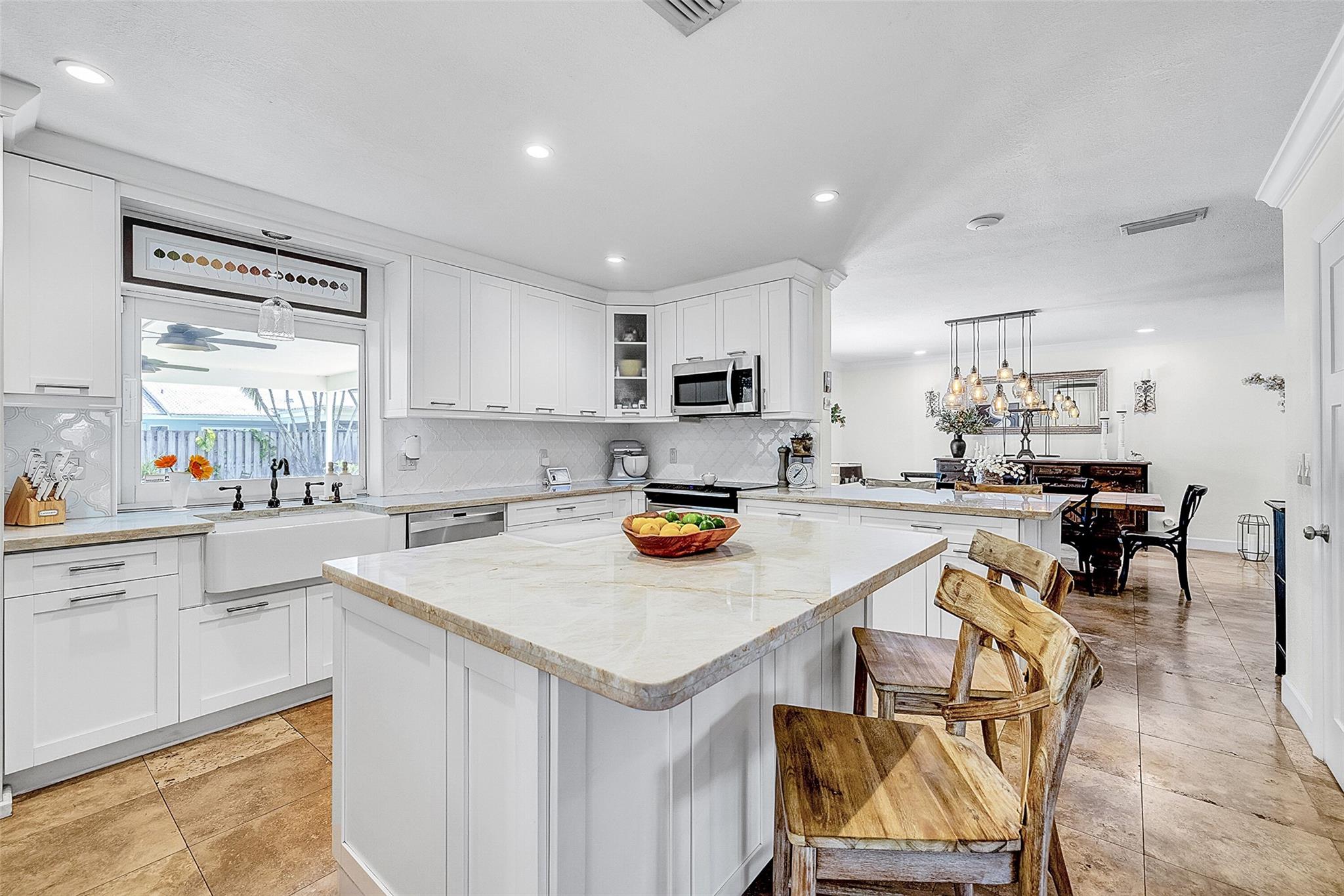 This beautifully upgraded home offers exceptional space with perfect upgrades! Designed for ultimate flexibility, it’s perfect for a large family, home office, gym, or multi-purpose living. Enjoy its split floor plan with 2 bedrooms on one side and 4 bedrooms on the other. The gourmet kitchen features white cabinetry, Quartz Countertops, a large Farm sink, designer finishes, the Center Island designed with storage, there are three Pantry's (including one pull-out!). Impact windows & doors, a full-house gas generator (2020), All New PVC Plumbing, A Concrete Tile Roof. The oversized 18,000sq ft. Lot is fully fenced! Enjoy outdoor living and entertaining, whilst having all the space for a boat, RV... The Oversized driveway can accommodate multiple cars! NO HOA—make this home yours Today!