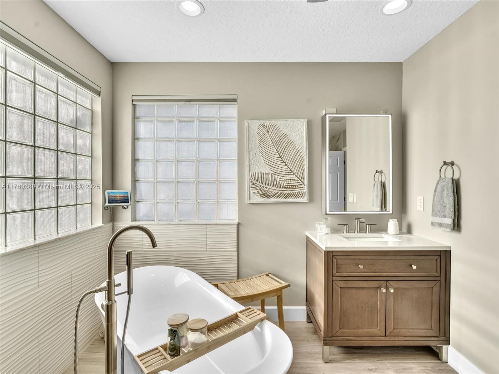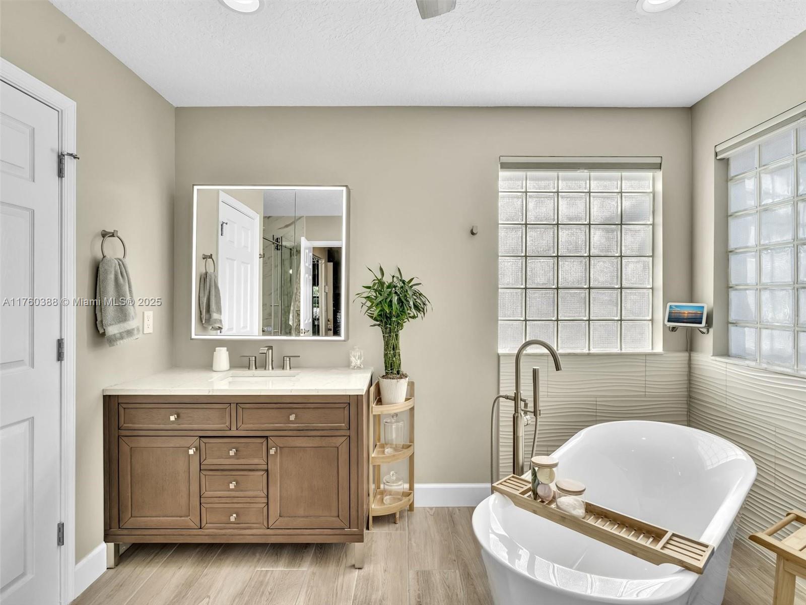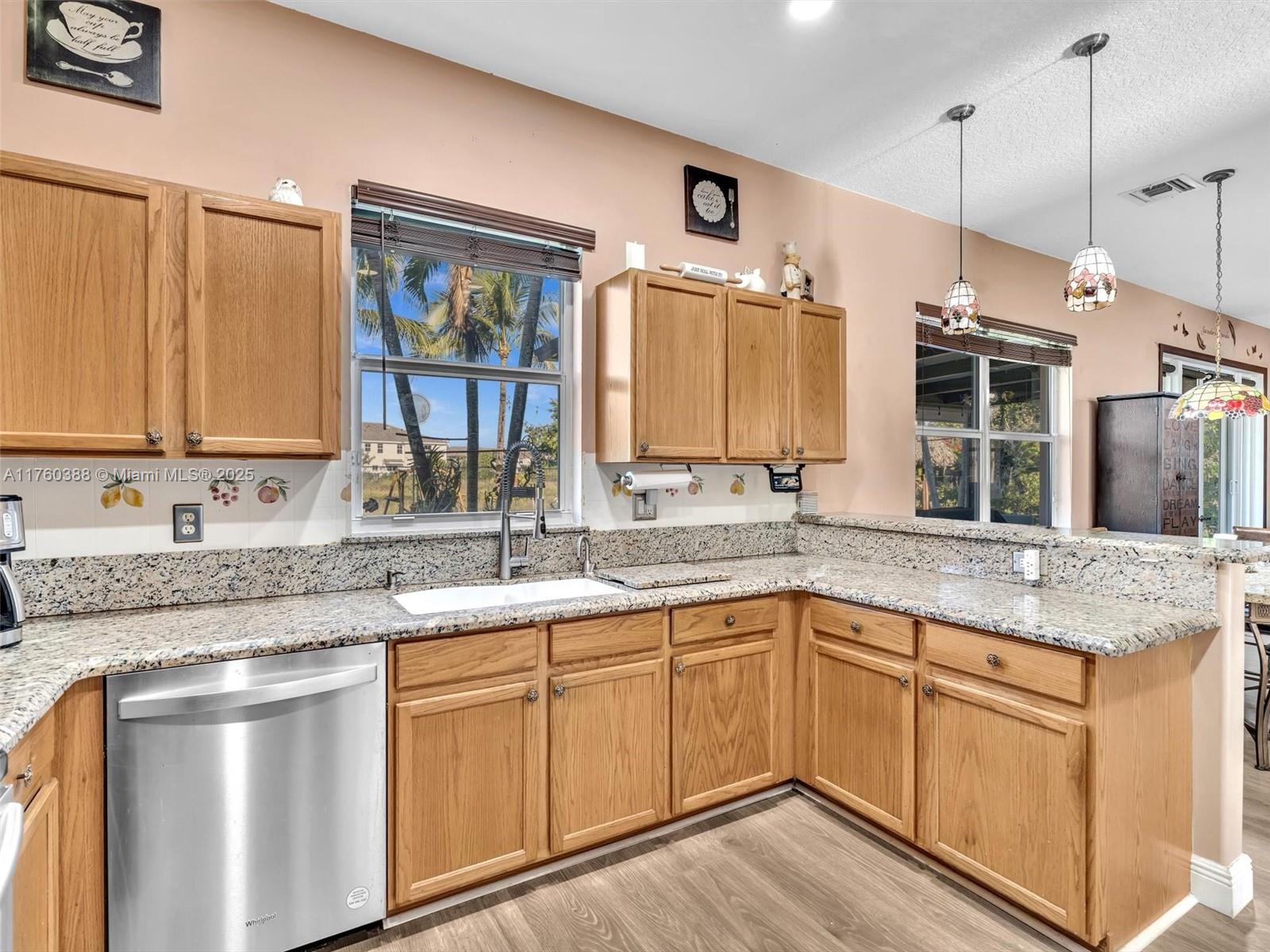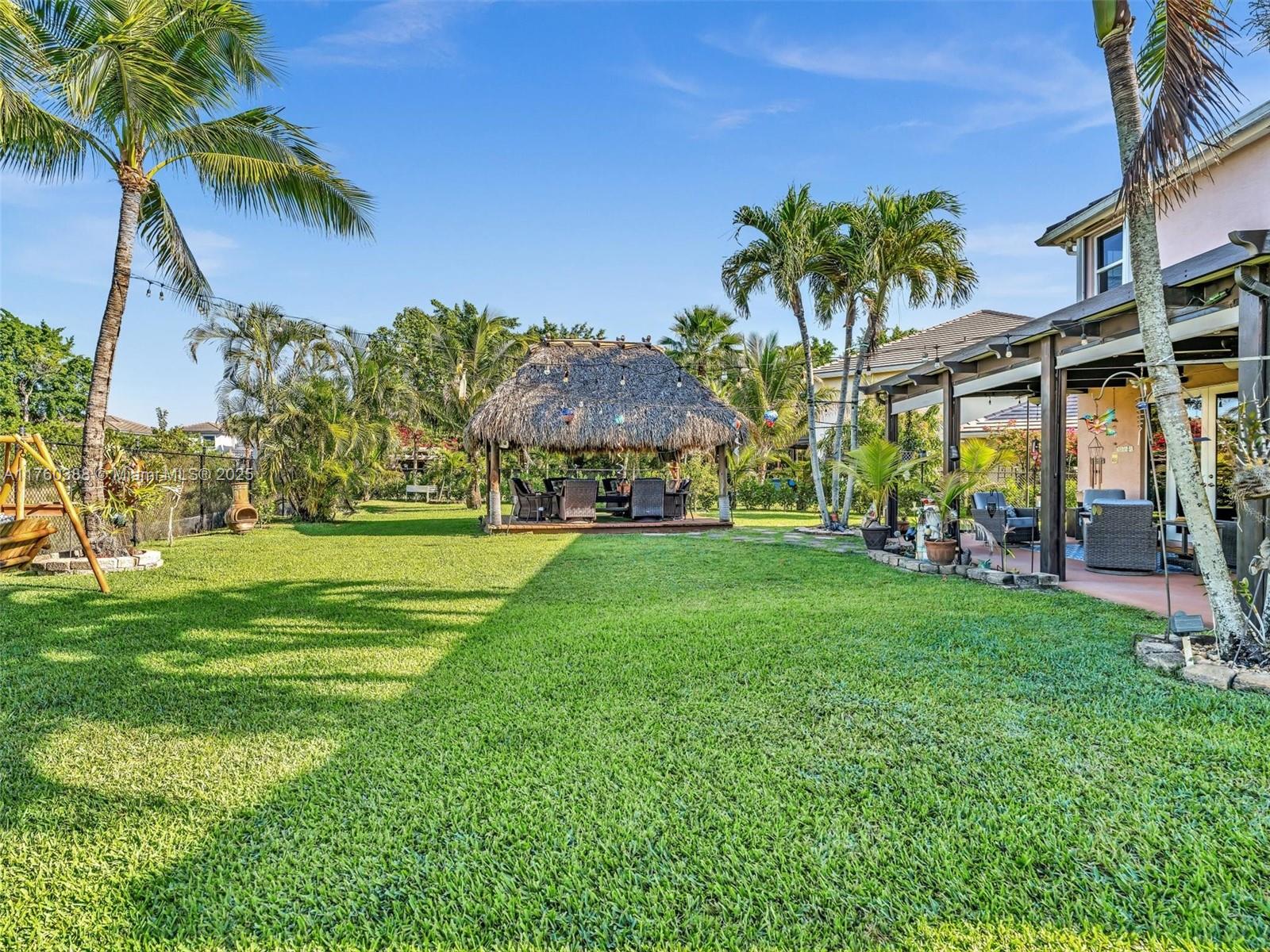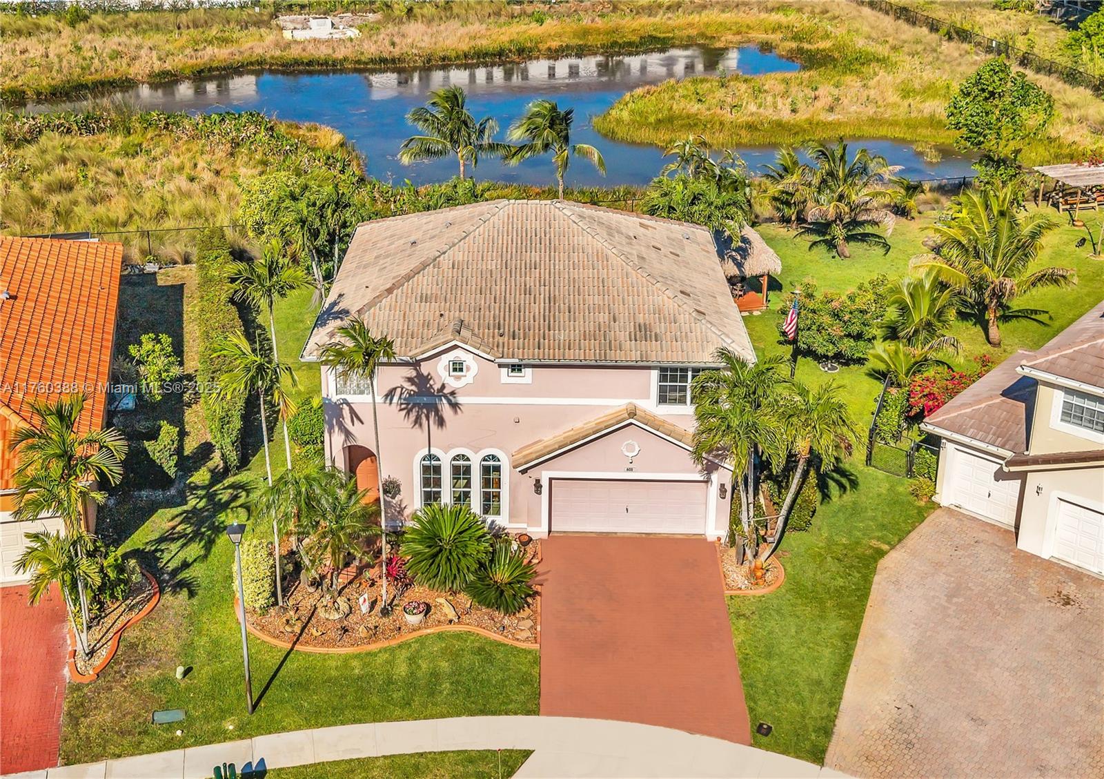 Make your outdoor entertaining dreams a reality! This home offers plenty of space to gather inside and out with an oversized lot big enough for a pool and then some! Enjoy mangos, avocados, and coconuts from your very own fruit trees and nature preserve-pond views from under either your Seminole Tiki or your covered patio! This home has been loved and cared for by its original owners with recently laid plank flooring that adorns the 1st floor and remodeled bathrooms with a luxurious spa vibe in the primary. Additional features include an upstairs laundry with sink, stainless steel appliances, under stairway storage, and an automatic sprinkler system. Pembroke Shores is a private, guard gated community that is located near I-75, parks, schools, hospitals, restaurants, and shopping.