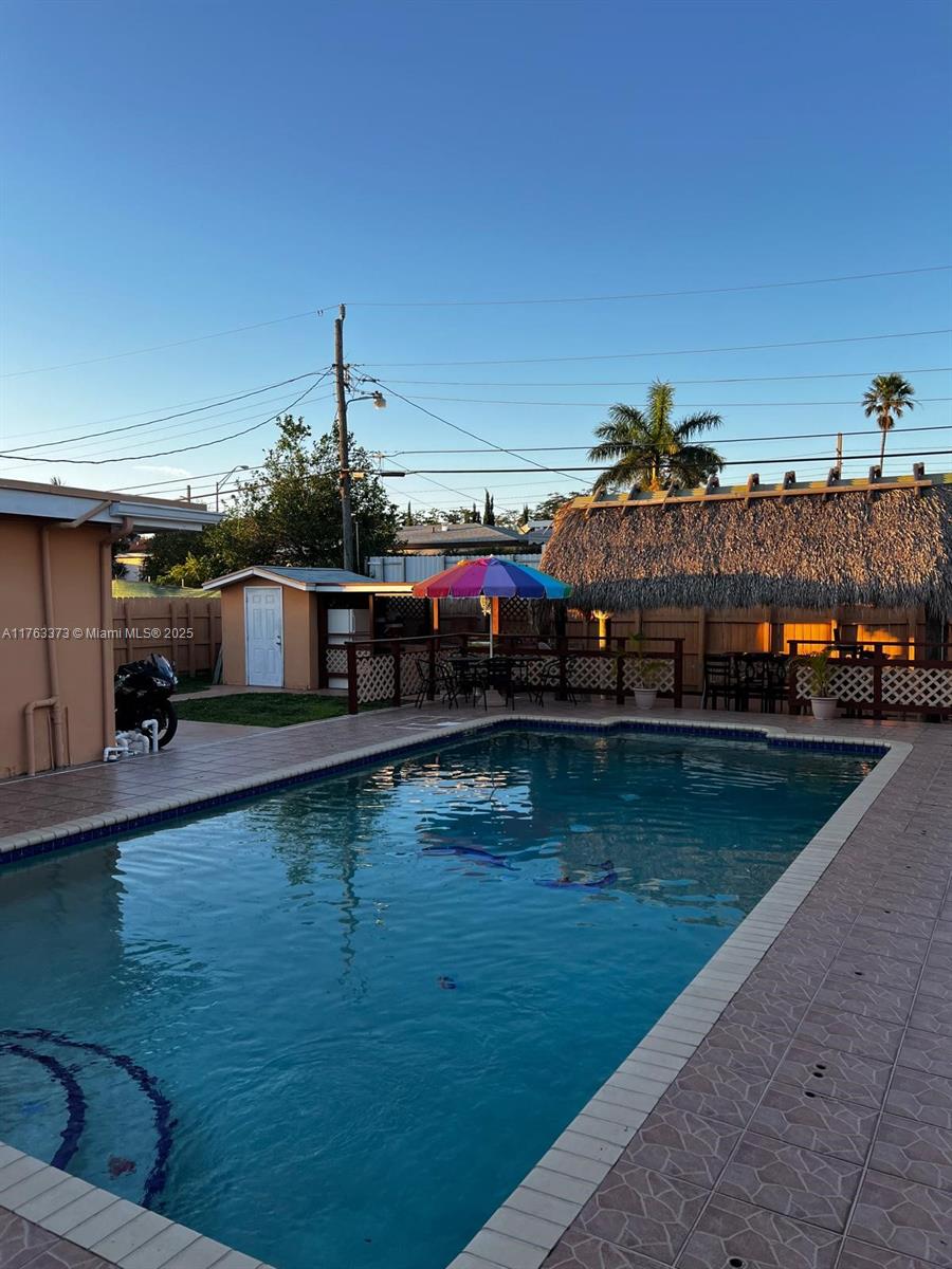 Welcome to this gem in the heart of Hialeah, near Amelia Park, with easy access to major roads while being situated on one of the quietest streets in the area. This house is ideal for large families or those looking for extra income, featuring a spacious backyard, pool, tiki hut, outdoor kitchen, shed, new fence, and more. This is a must-see!