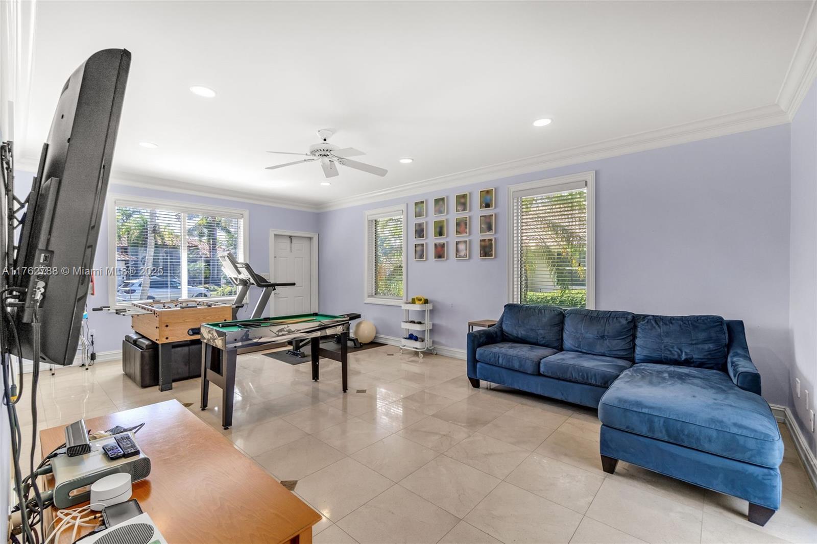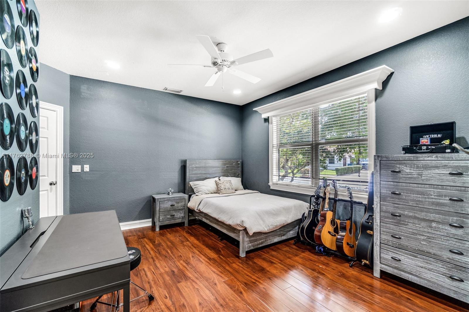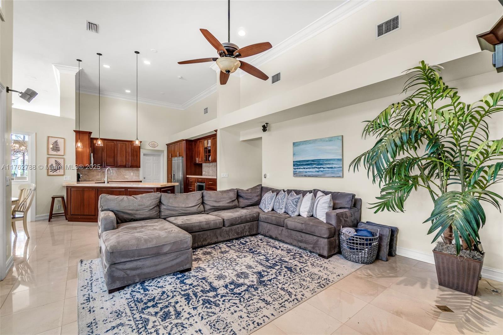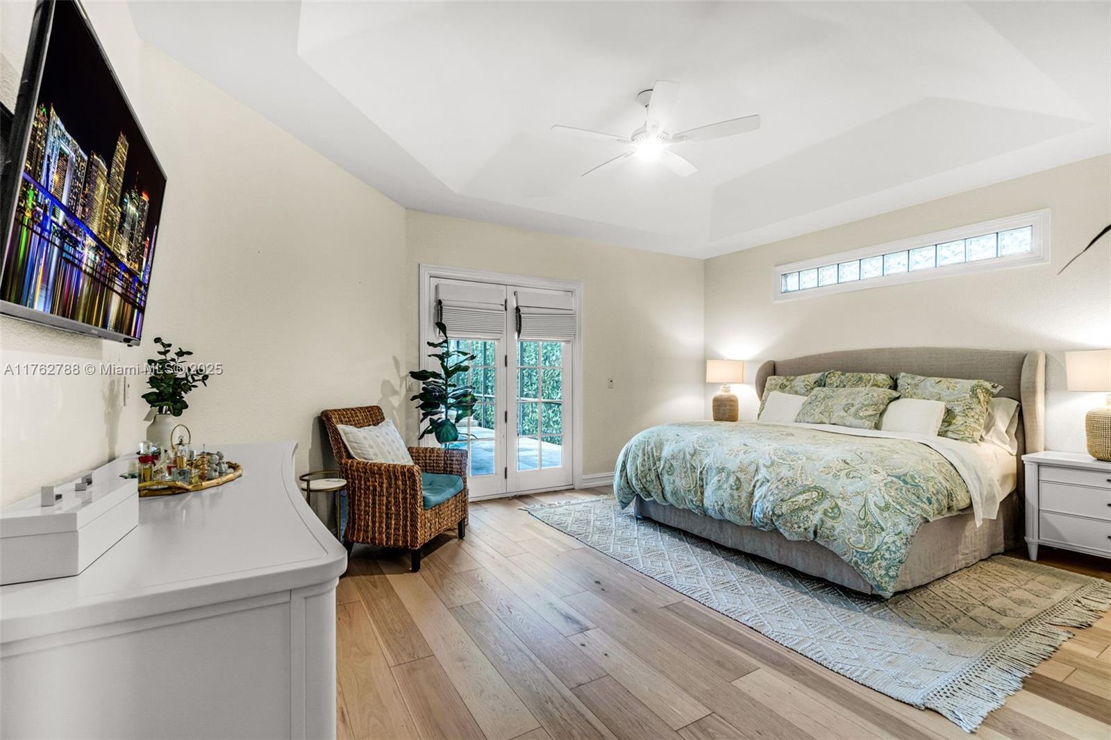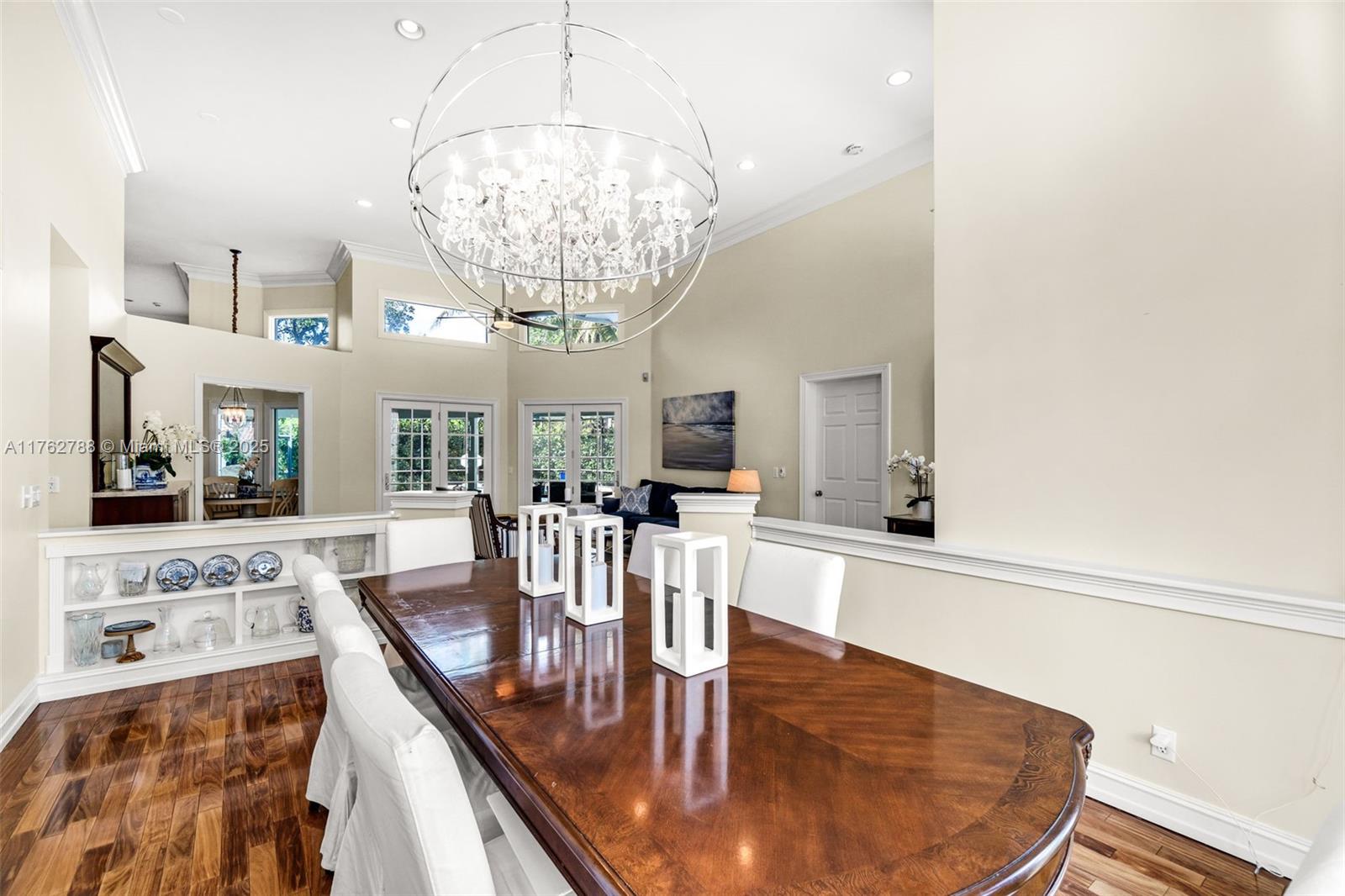 Nestled in the highly sought-after Palm Island community in Weston, this stunning corner-lot home offers A-rated schools and luxury living! Enjoy breathtaking pool view throughout, soaring ceilings, crown moldings, and abundant natural light. Gourmet kitchen features exquisite Taj Mahal countertops and a wine fridge, while custom closets provide ample storage. French doors open to a serene backyard with a saltwater pool, covered patio, and lush privacy hedges. The huge 5th bedroom can serve as a playroom or an extra master suite. Updated primary bathroom, with engineered hardwood floors in primary bedroom, Murphy bed in one of the bedrooms making it spacious. A circular driveway plus an additional side driveway offer plenty of parking. Steps from the community park—this home is a must-see!
