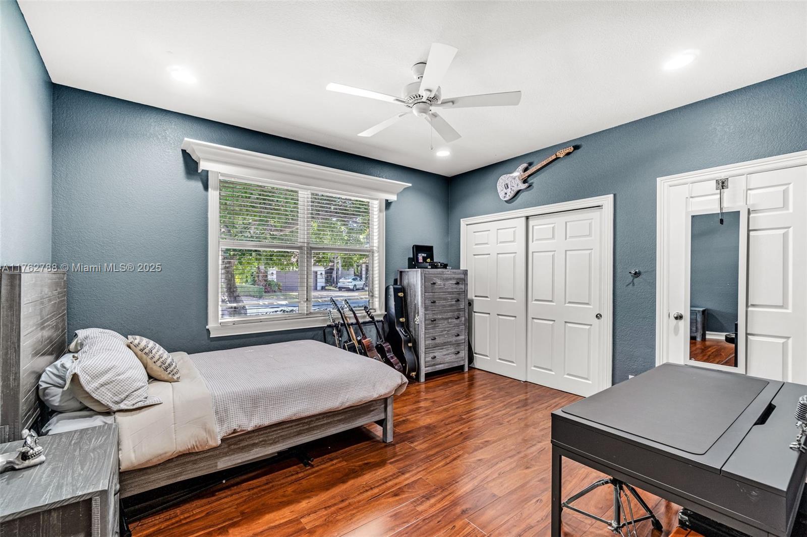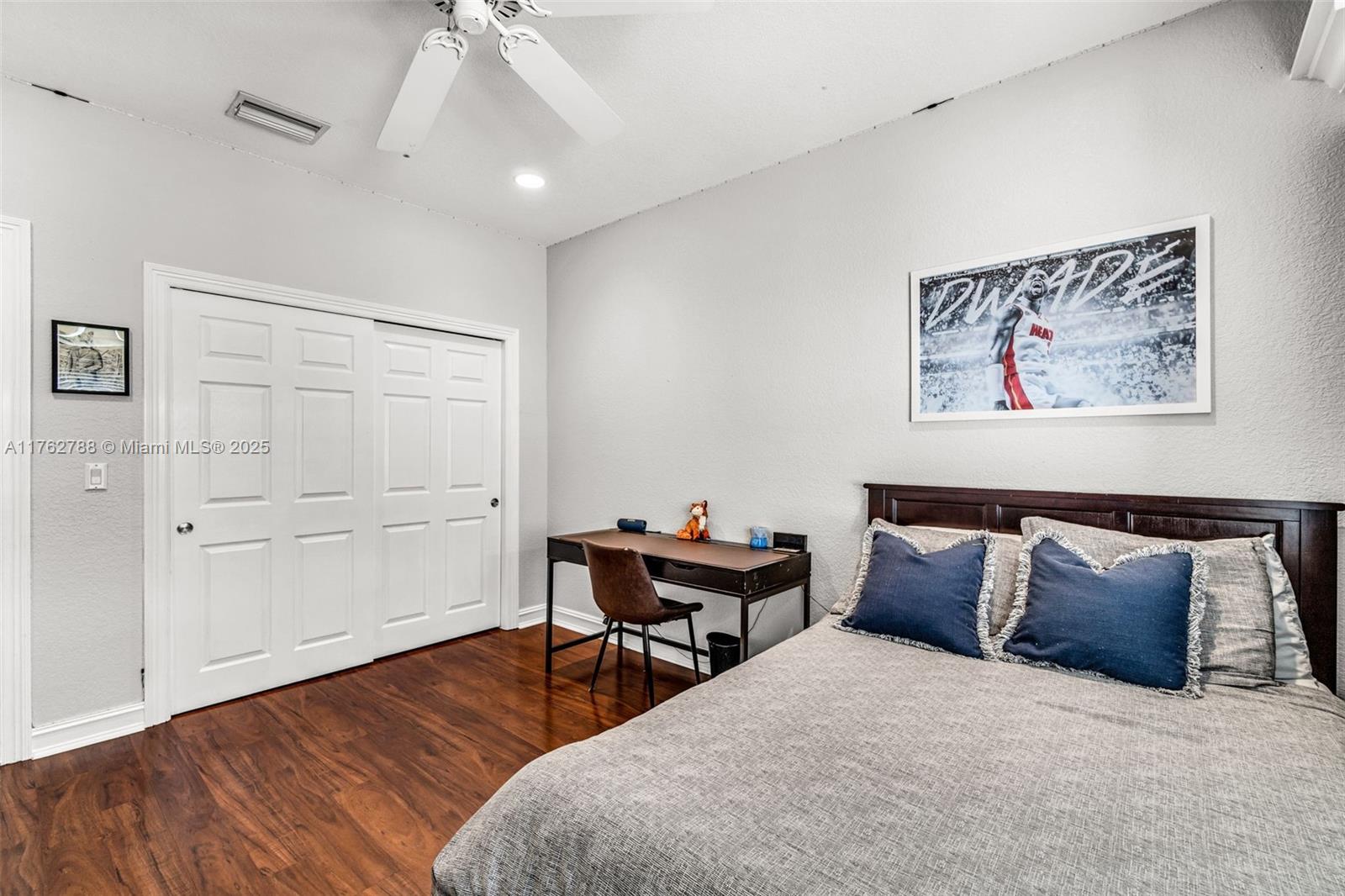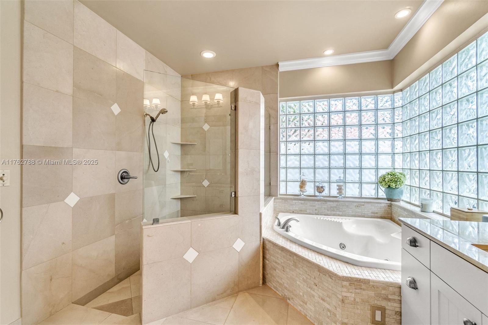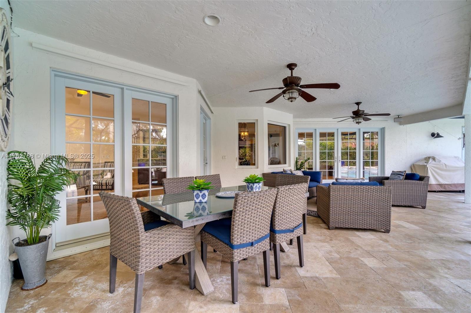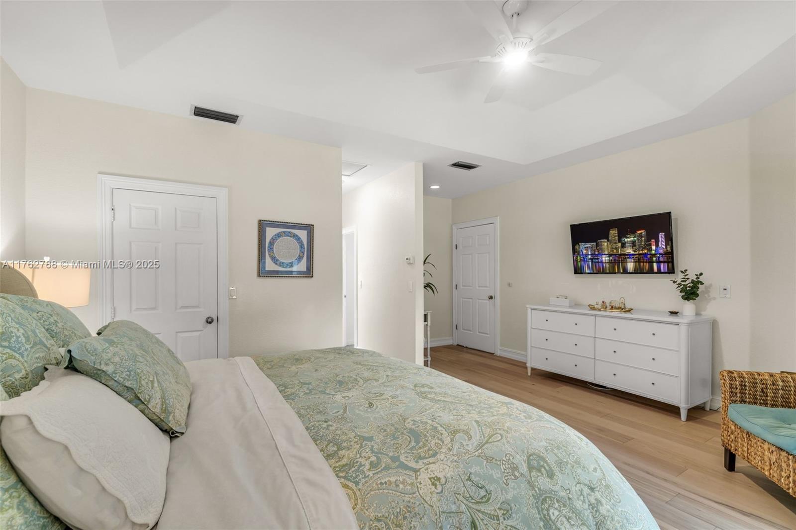 Nestled in the highly sought-after Palm Island community in Weston, this stunning corner-lot home offers A-rated schools and luxury living! Enjoy breathtaking pool view throughout, soaring ceilings, crown moldings, and abundant natural light. Gourmet kitchen features exquisite Taj Mahal countertops and a wine fridge, while custom closets provide ample storage. French doors open to a serene backyard with a saltwater pool, covered patio, and lush privacy hedges. The huge 5th bedroom can serve as a playroom or an extra master suite. Updated primary bathroom, with engineered hardwood floors in primary bedroom, Murphy bed in one of the bedrooms making it spacious. A circular driveway plus an additional side driveway offer plenty of parking. Steps from the community park—this home is a must-see!