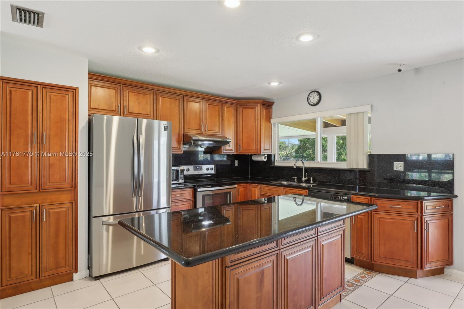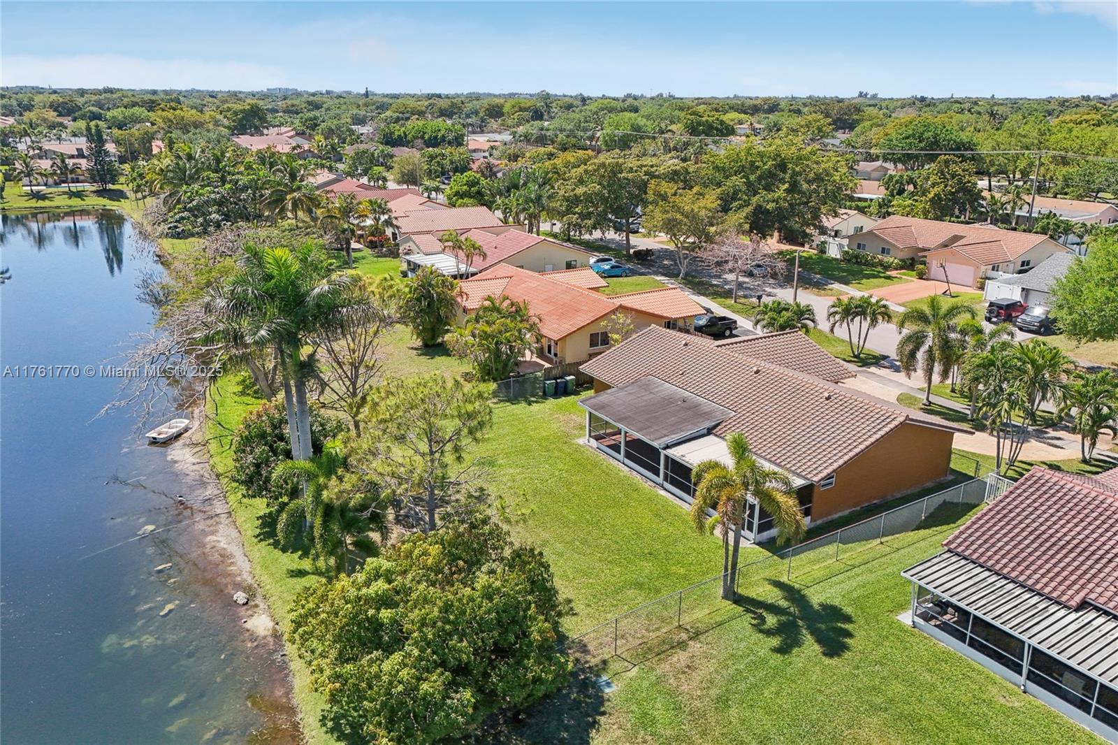 Charming 4-Bedroom, 2-Bathroom waterfront home in Cooper City's Forest Lake Community. Feel secure and receive your full insurance discount with a 2017 TILE ROOF AS WELL AS HURRICANE IMPACT WINDOWS, SLIDING DOOR AND GARAGE DOOR. This home features a serene water view, large enclosed patio for entertaining plus plenty of space for a pool. Inside you will find updated bathrooms with modern touches, a beautiful, functional kitchen with real wood cabinets, spacious granite countertops with room for seating and plenty of storage space. Large circular stamped concrete driveway for multiple vehicles to park. Located near A-rated schools, parks, and shopping centers for ultimate convenience This move-in-ready home in a quiet neighborhood is perfect for families.