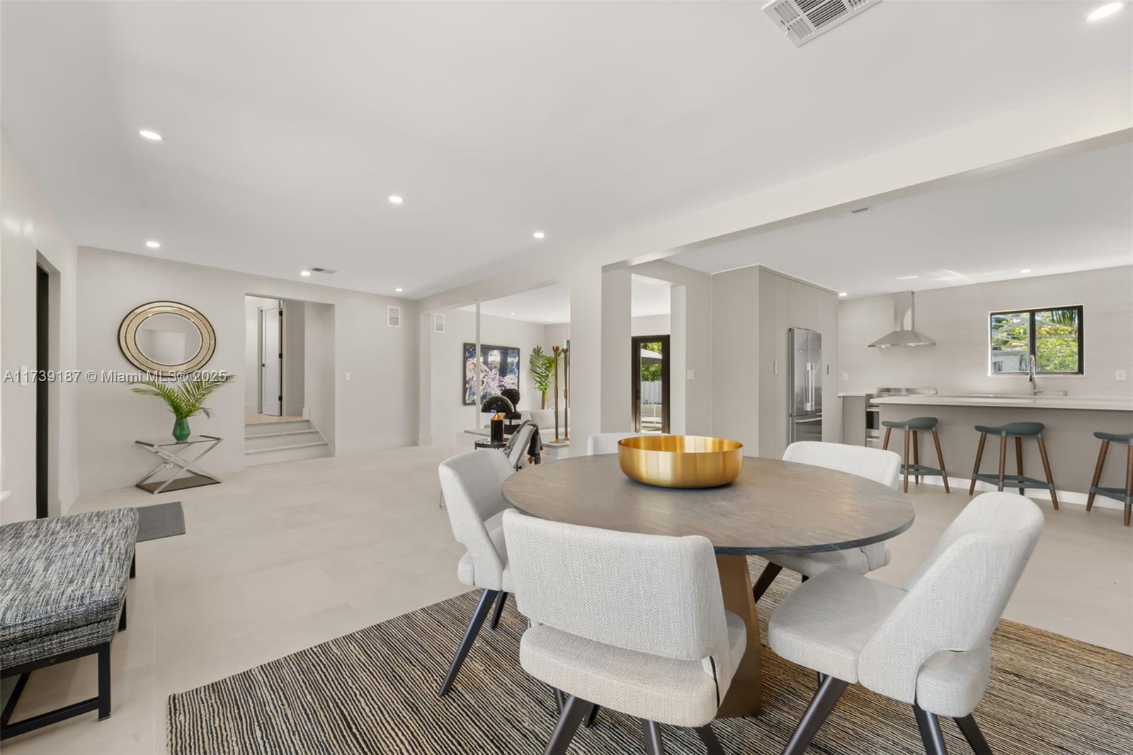A fully renovated 4-bed, 3-bath mid-century home, nestled in a beautiful enclave near Miami Shores, is a true seamless blend of modern design and custom finishes. The residence boasts a new roof (2025), new impact windows, and a new two-zone AC system. Every inch has been thoughtfully resurfaced, renovated and reimagined, blending indoor and outdoor living. The gourmet eat-in kitchen is equipped with custom cabinetry and premium appliances. Spacious living areas include a formal dining room, living room, and den with french doors that open to a lush, private backyard oasis. This home has 2 bedrooms with ensuite bathrooms and a dedicated laundry room, enhancing its functionality and convenience. Just steps from top schools, dining, and recreation, this is refined living at a great price.