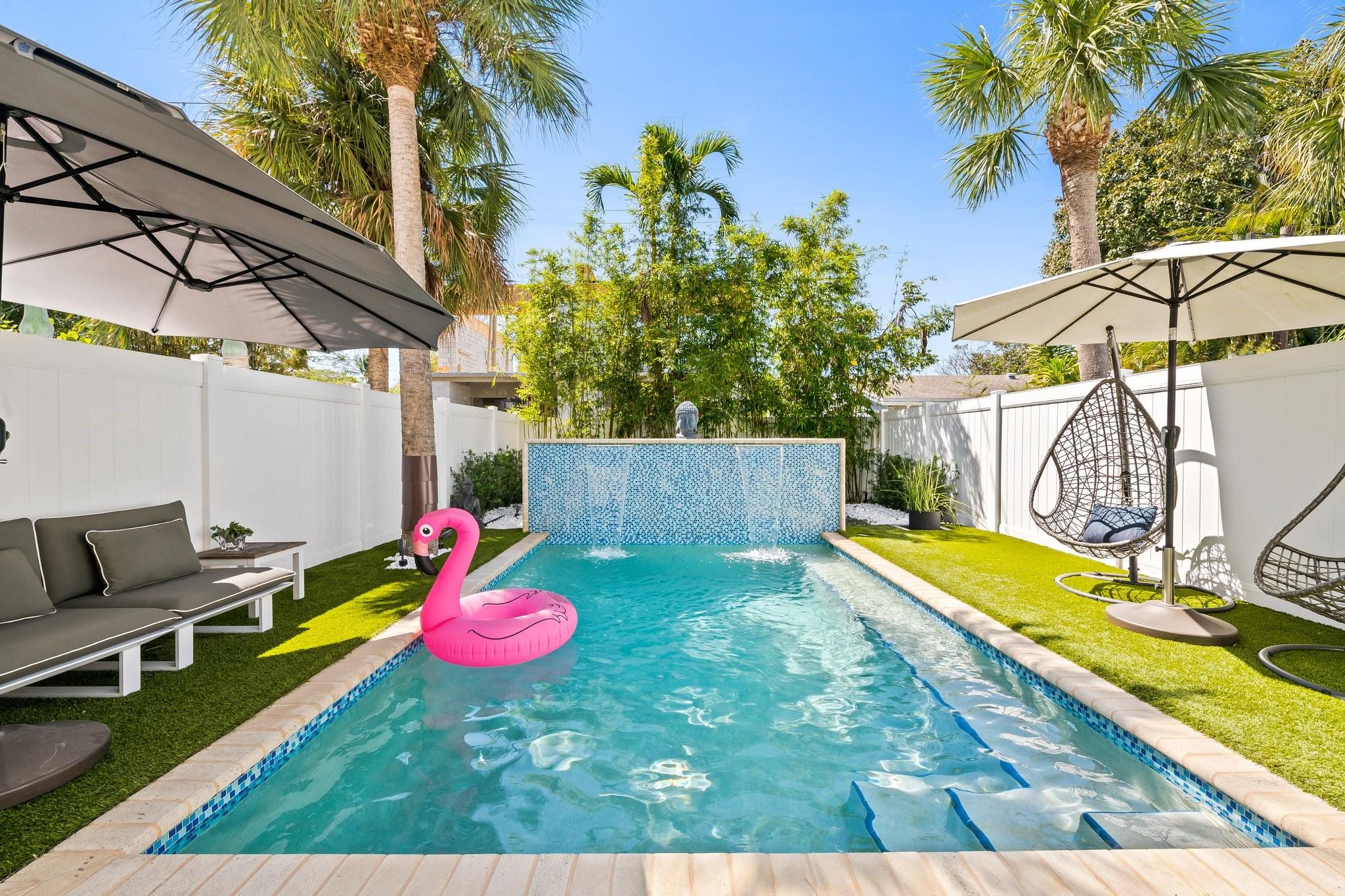 Motivated Seller! Beautiful 3 beds + Loft, and 2.5 baths Townhouse on a High-elevation spacious 3,374 sf lot. No HOA, No Rental Restrictions. Open concept floor plan w/soaring 40-ft ceilings. The expansive impact glass windows & doors fill the space with an abundance of natural light! Modern kitchen with st. steel appliances, quartz countertops, huge pantry & a half bath, along with 2-car garage with brand-new epoxy floor. The private backyard is a true oasis with a large saltwater heated pool completed by a stunning waterfall. 2nd floor features a massive primary suite w/a terrace. Upstairs-2 spacious beds & full bath, each w/access to a wraparound terrace. Brand new AC systems. Oversized private driveway. Just minutes to Galleria Mall, Dining, Downtown-Las Olas, Wilton Manors & Beaches.