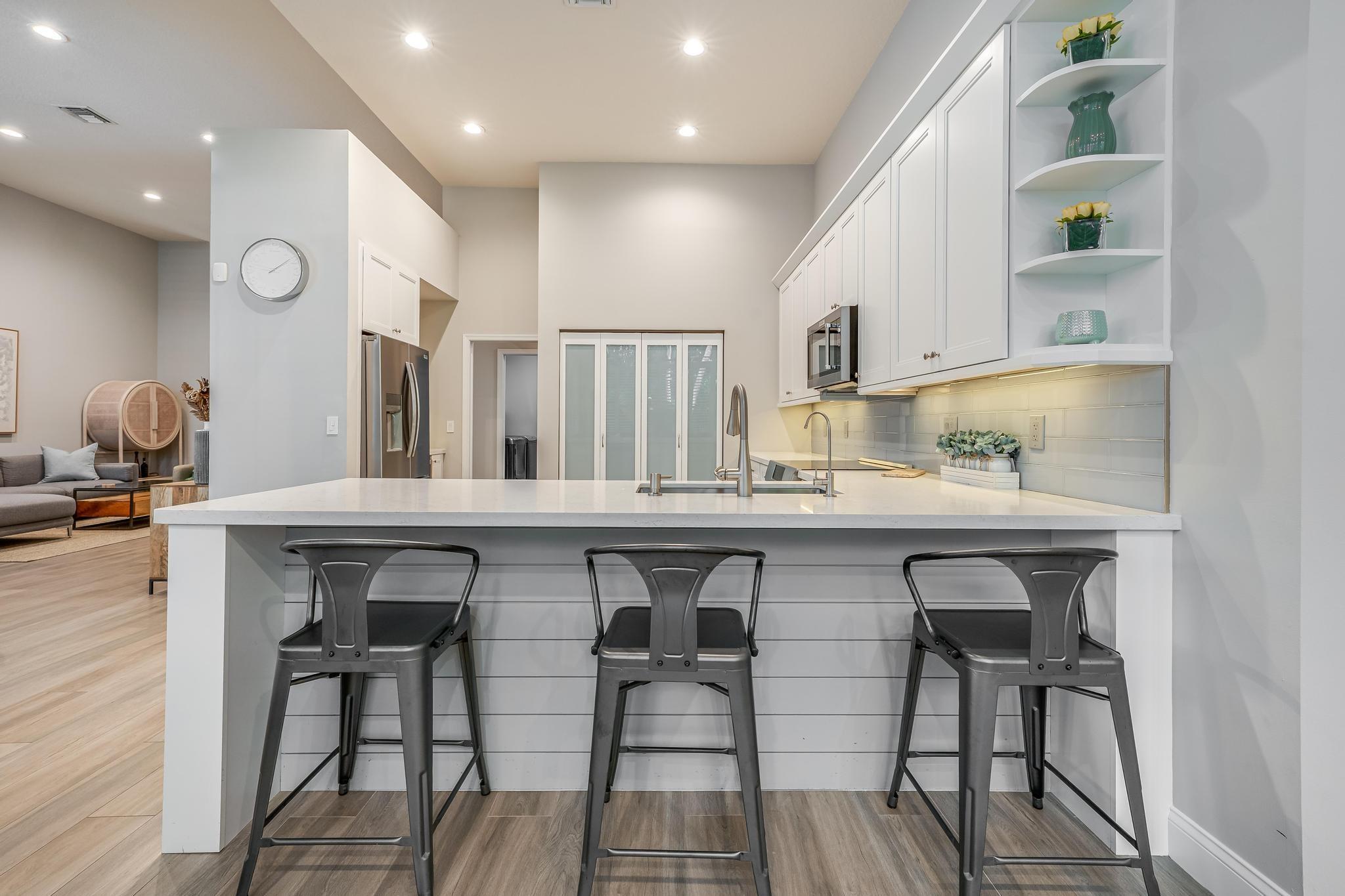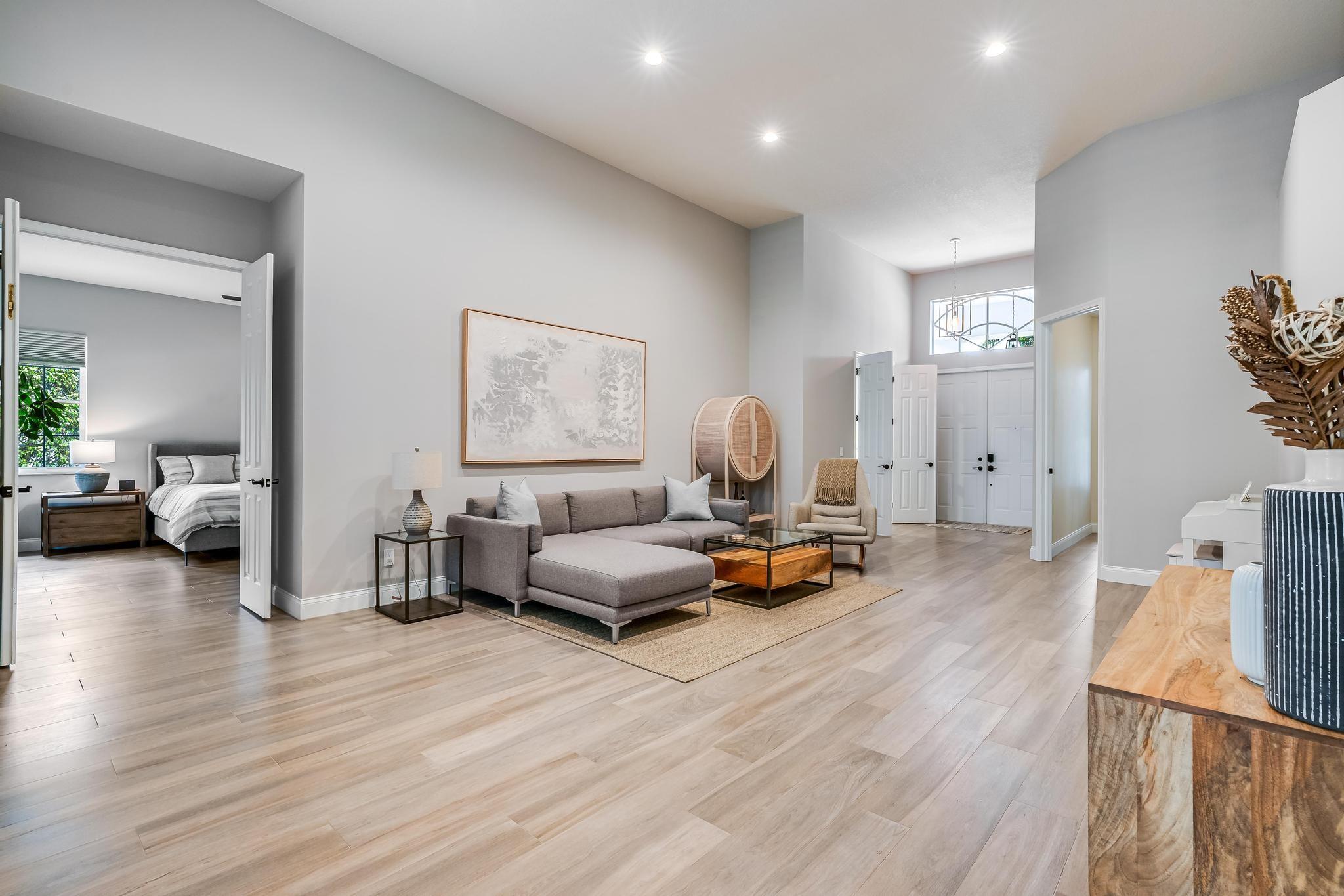 Welcome to this beautifully renovated estate home nestled in Davie’s sought-after Lake Estates at Rolling Hills guard-gated community. This immaculate, turn-key residence boasts porcelain tile throughout the 4 bedrooms, family & living areas, 3 stylish bathrooms, large private office, separate laundry room, & spacious kitchen complete w/ built-in wine fridge & coffee bar area. The newly rescreened oversized patio is ideal for year-round entertaining or relaxing w/ an option to add a pool. The 2.5 car garage comes fully equipped with an EV car charging station & dedicated golf cart space. Additional features include a newer tile roof/gutters (2021) & a/c (2020), hurricane protected windows, & whole house generator hook up. Enjoy the 9-hole community golf course. Close to NSU & HCA Hospital.