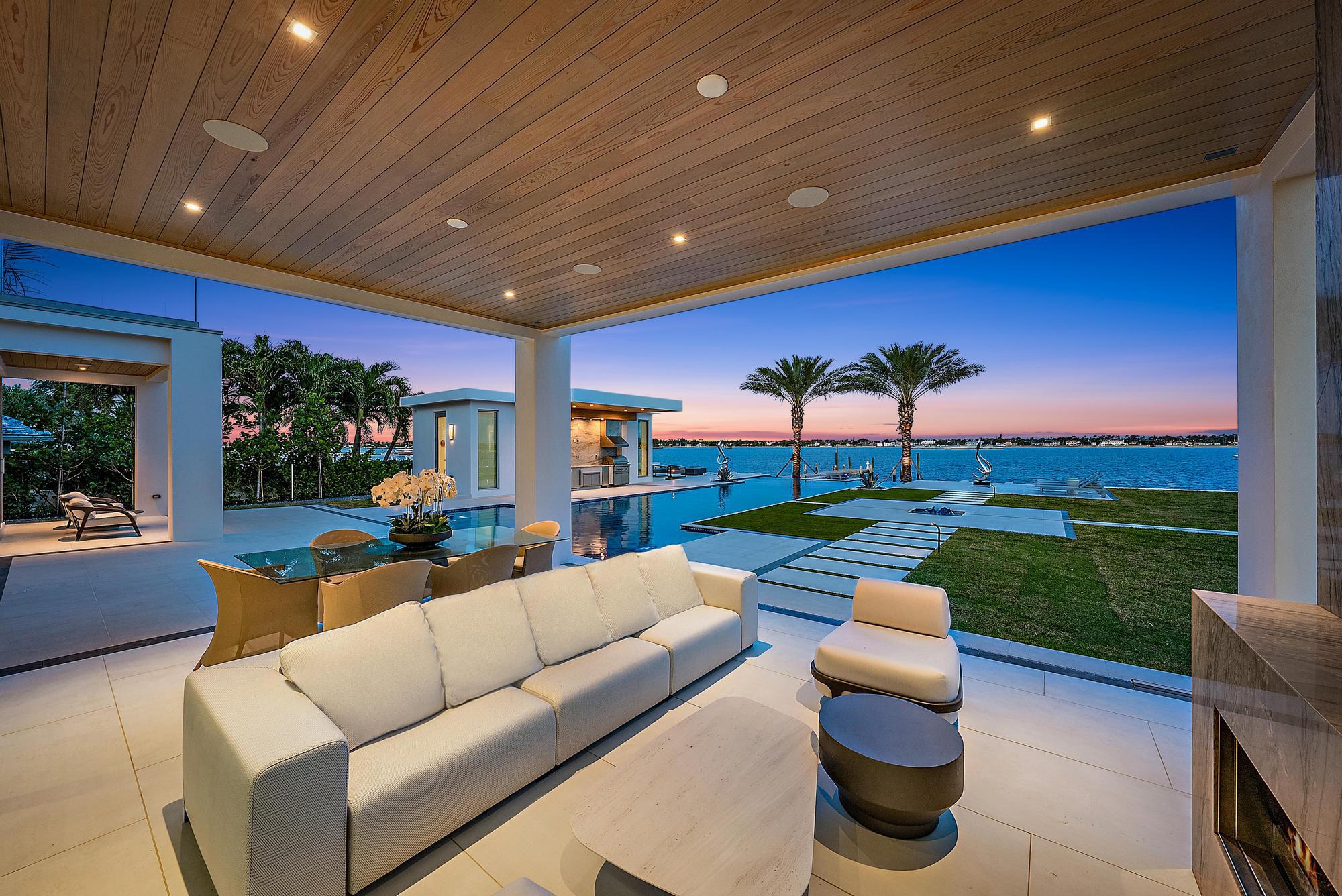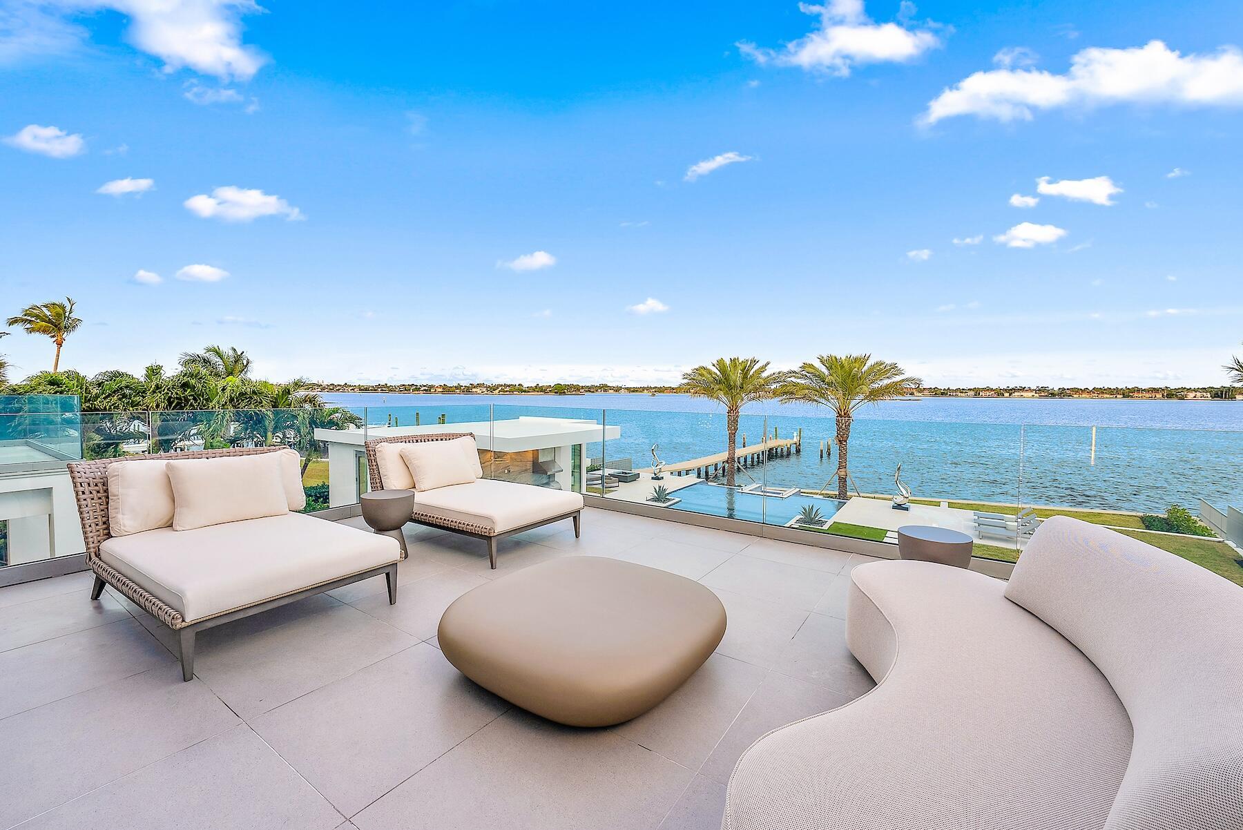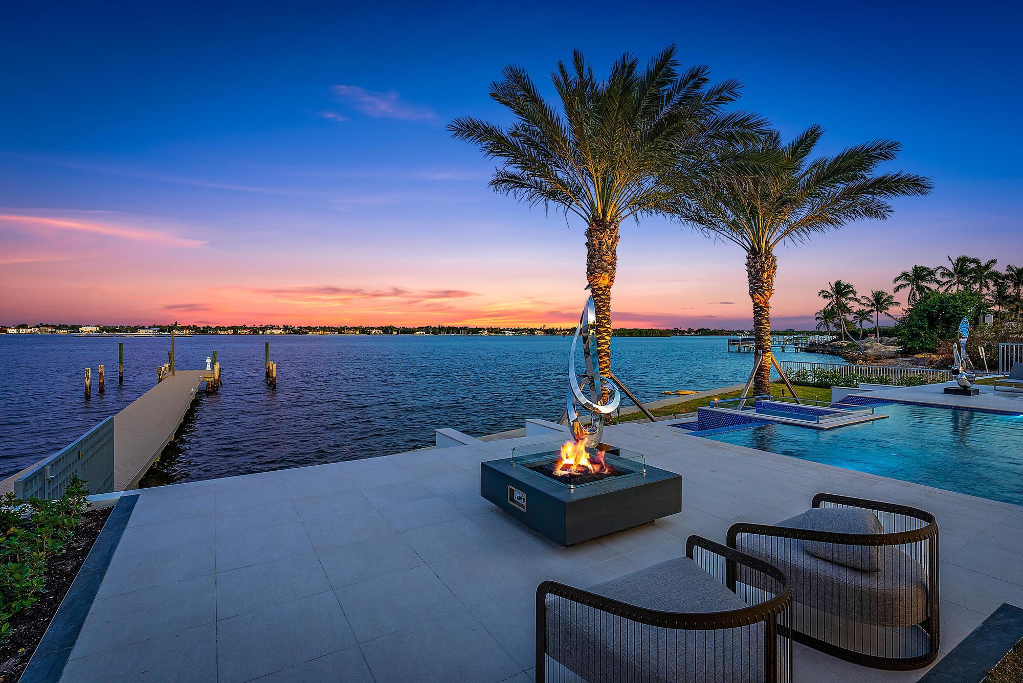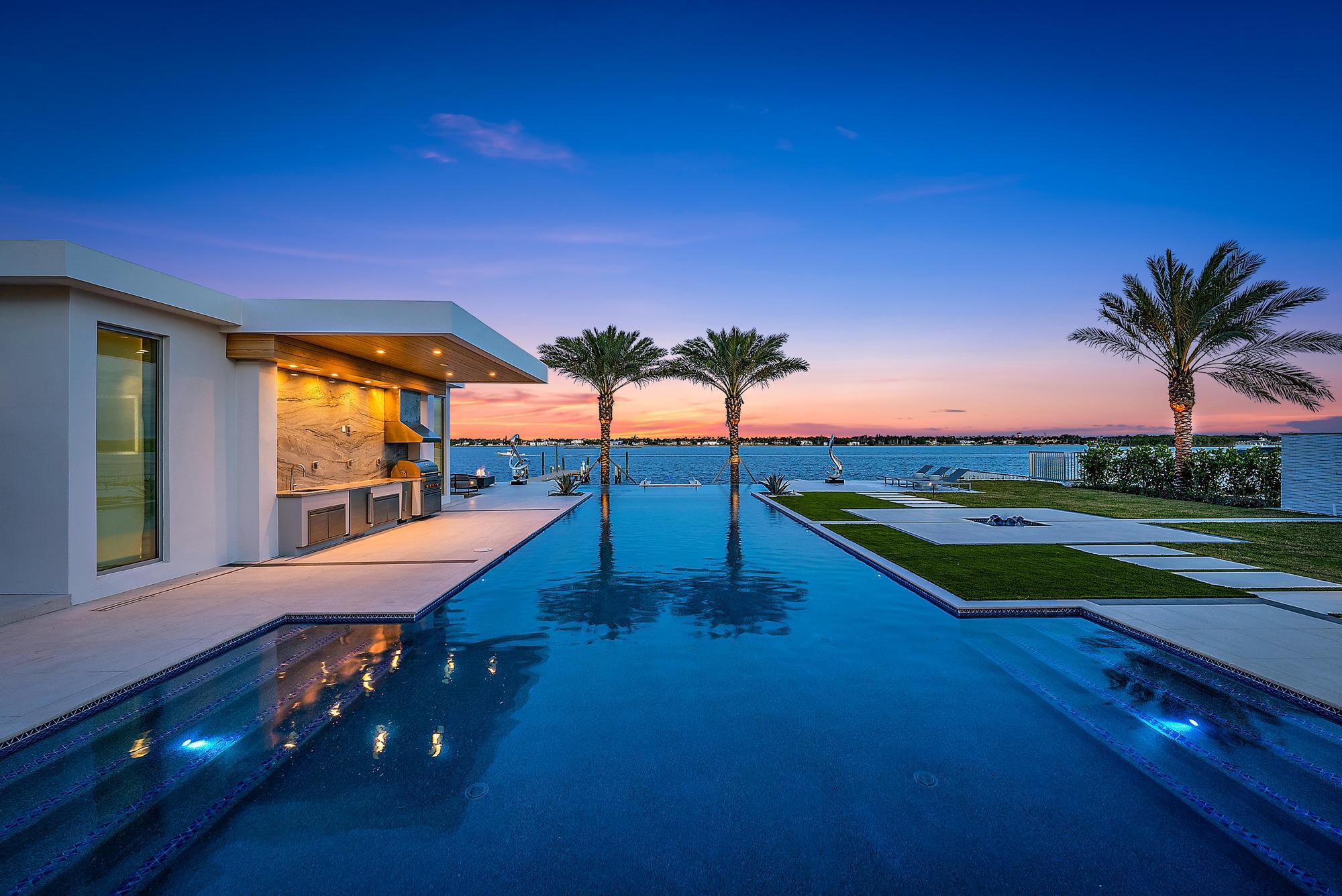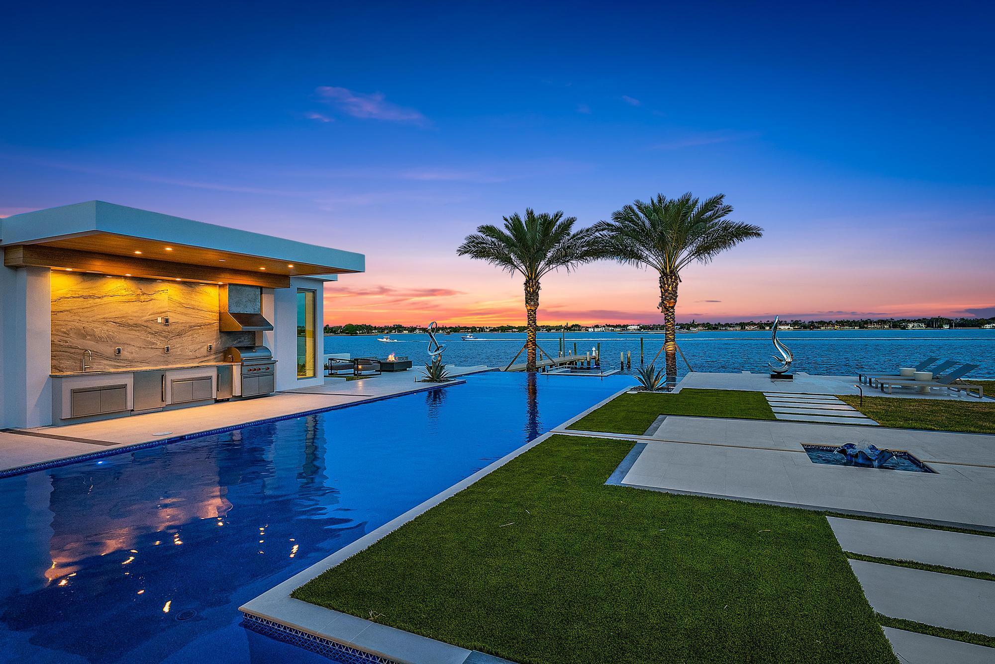 Spectacular waterfront contemporary oasis. Newly completed 7 bedroom, 10 bath beautifully sited on over 1 acre with approx. 10,000 sq. ft of light filled living space. Exciting features include: chef's kitchen with Wolf/SubZero appliances, 450 bottle wine room, saltwater pool, cabana, dock, large office with water view, media room, 3-car garage, glass elevator, roof top lounge with summer kitchen and fire pit. The luxurious primary suite has dual baths and closets and overlooks the Intracoastal waterway. Additional smart home features include: Control4 automation, Lutron lighting & shades, invisible speakers, a high-end security system, a 125-kW whole home generator, and a 30.8-kW solar system. An exceptional home in which to live.