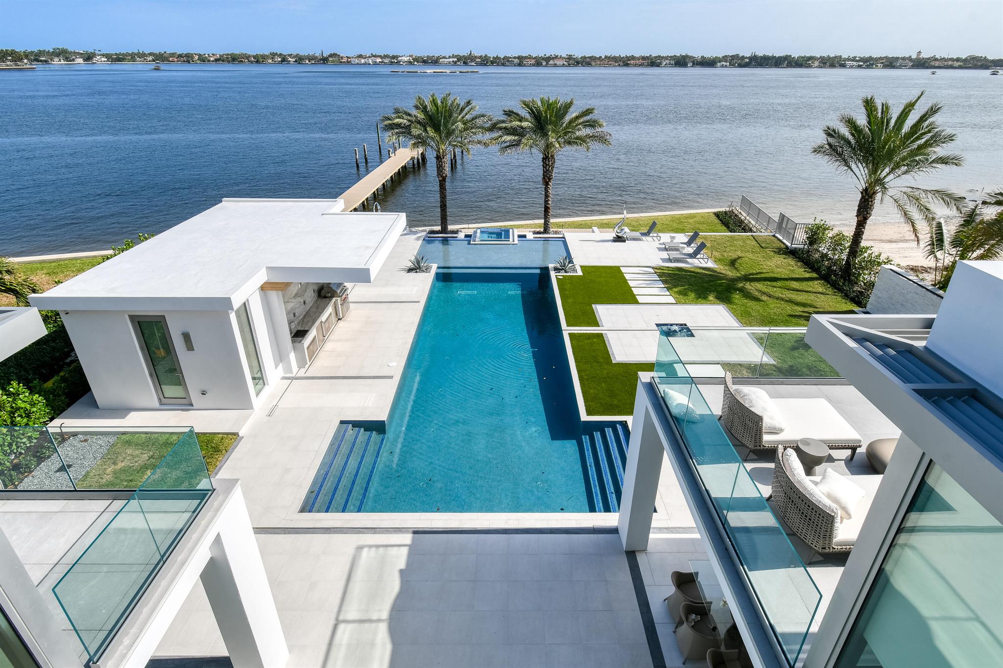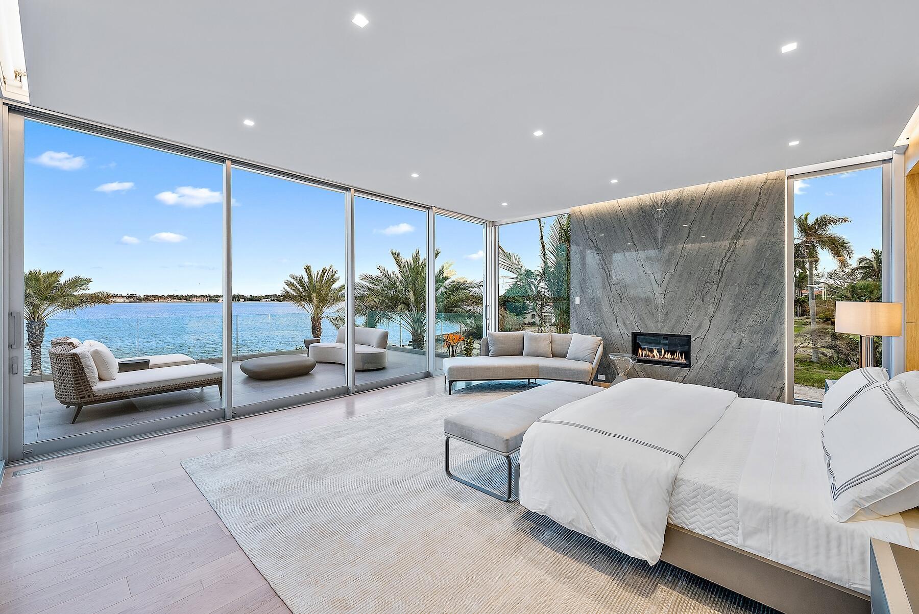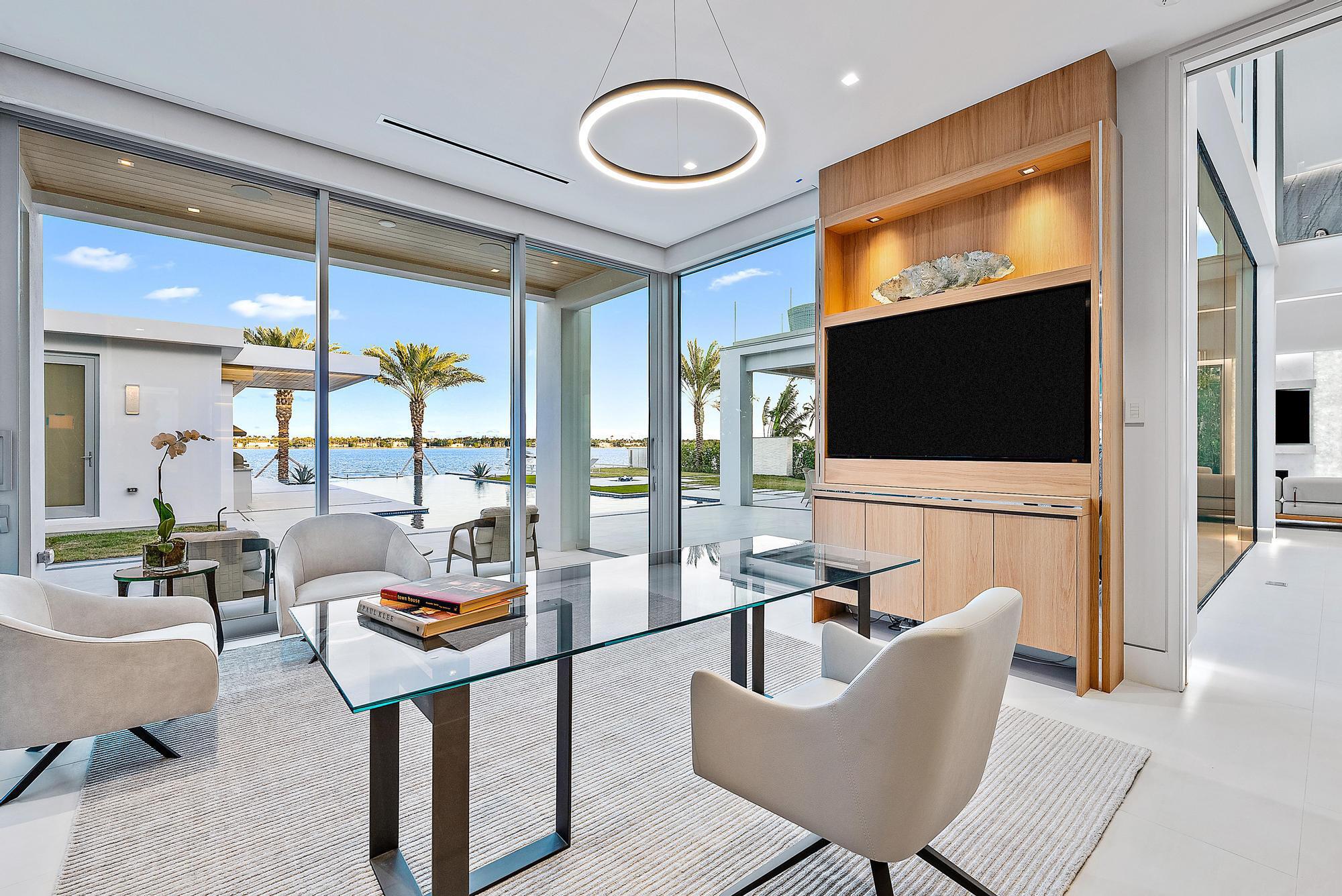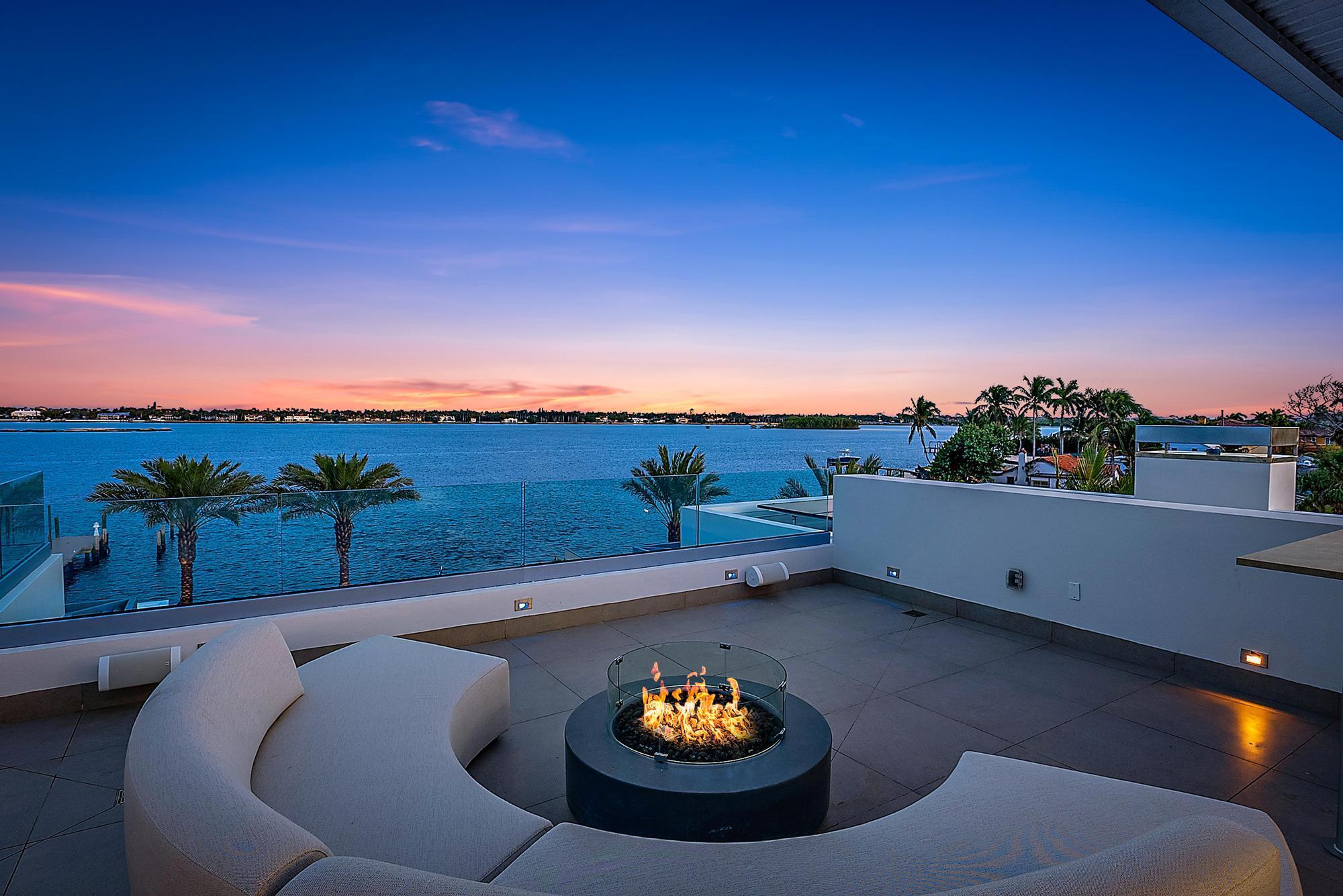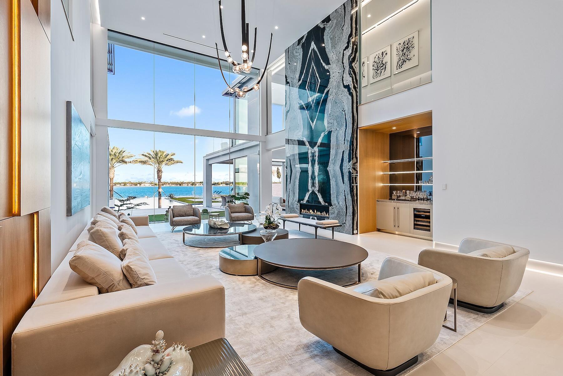 Spectacular waterfront contemporary oasis. Newly completed 7 bedroom, 10 bath beautifully sited on over 1 acre with approx. 10,000 sq. ft of light filled living space. Exciting features include: chef's kitchen with Wolf/SubZero appliances, 450 bottle wine room, saltwater pool, cabana, dock, large office with water view, media room, 3-car garage, glass elevator, roof top lounge with summer kitchen and fire pit. The luxurious primary suite has dual baths and closets and overlooks the Intracoastal waterway. Additional smart home features include: Control4 automation, Lutron lighting & shades, invisible speakers, a high-end security system, a 125-kW whole home generator, and a 30.8-kW solar system. An exceptional home in which to live.