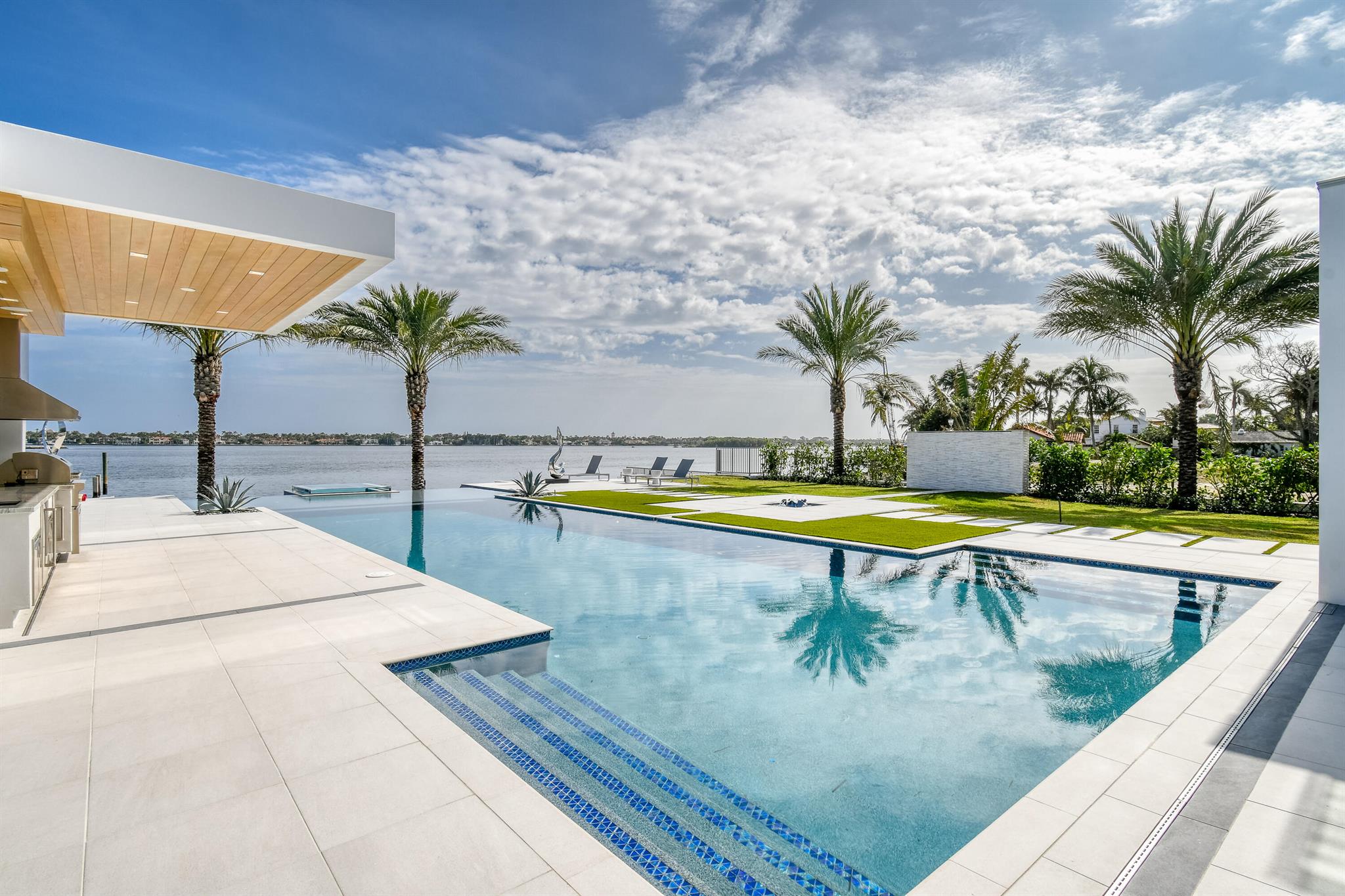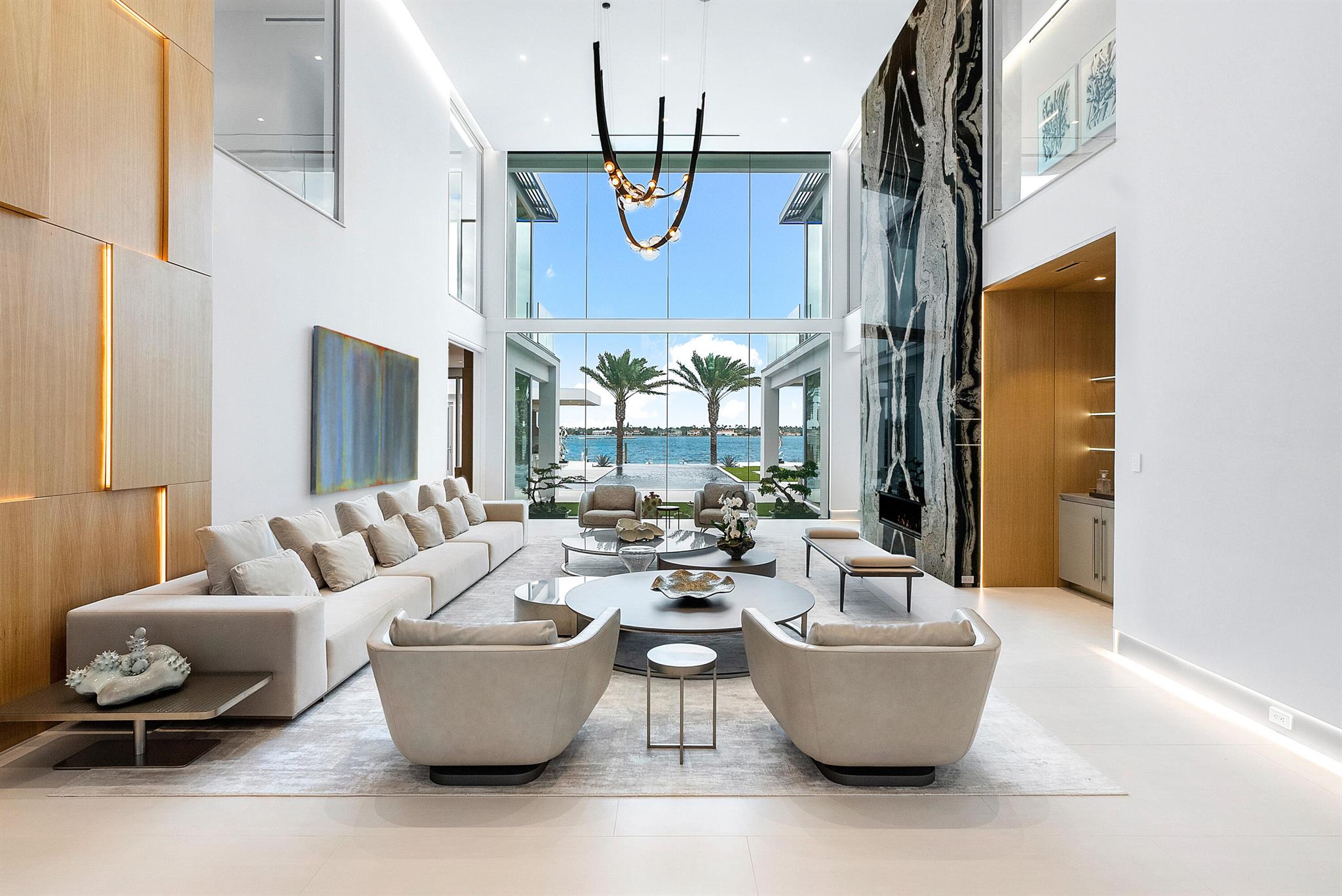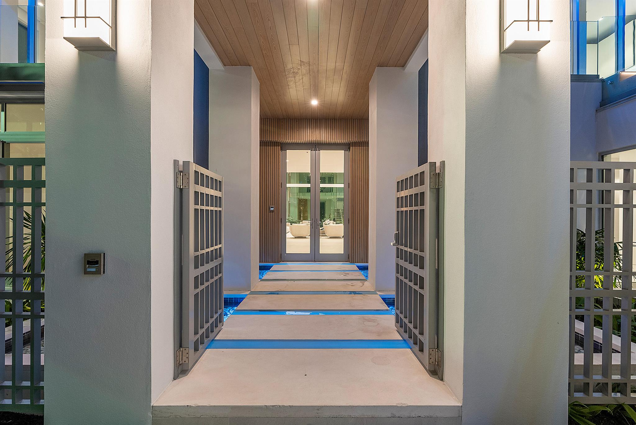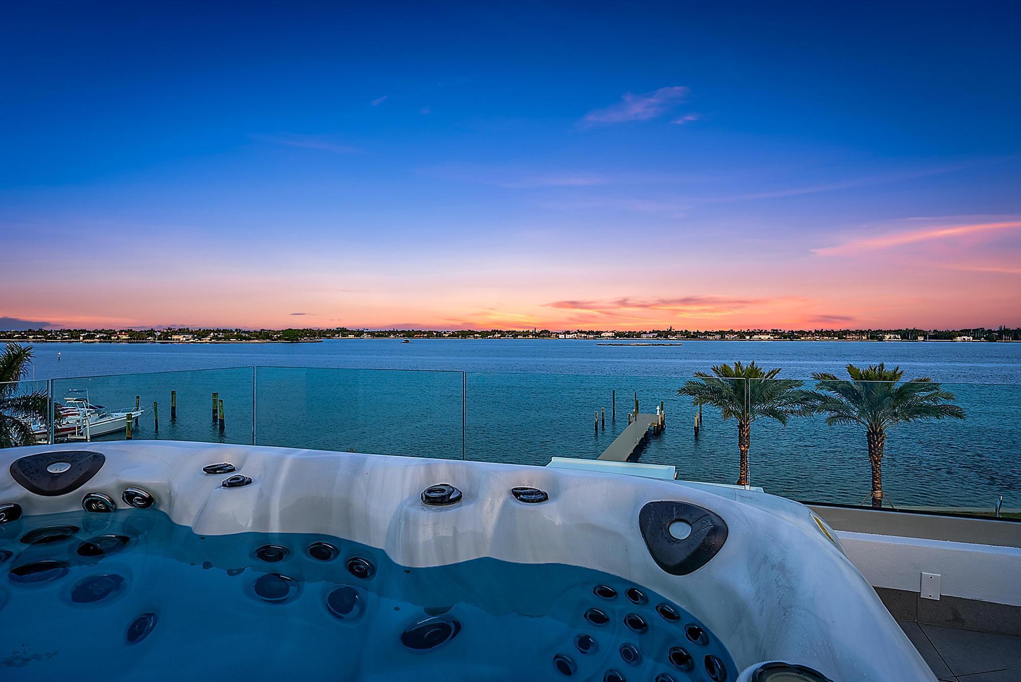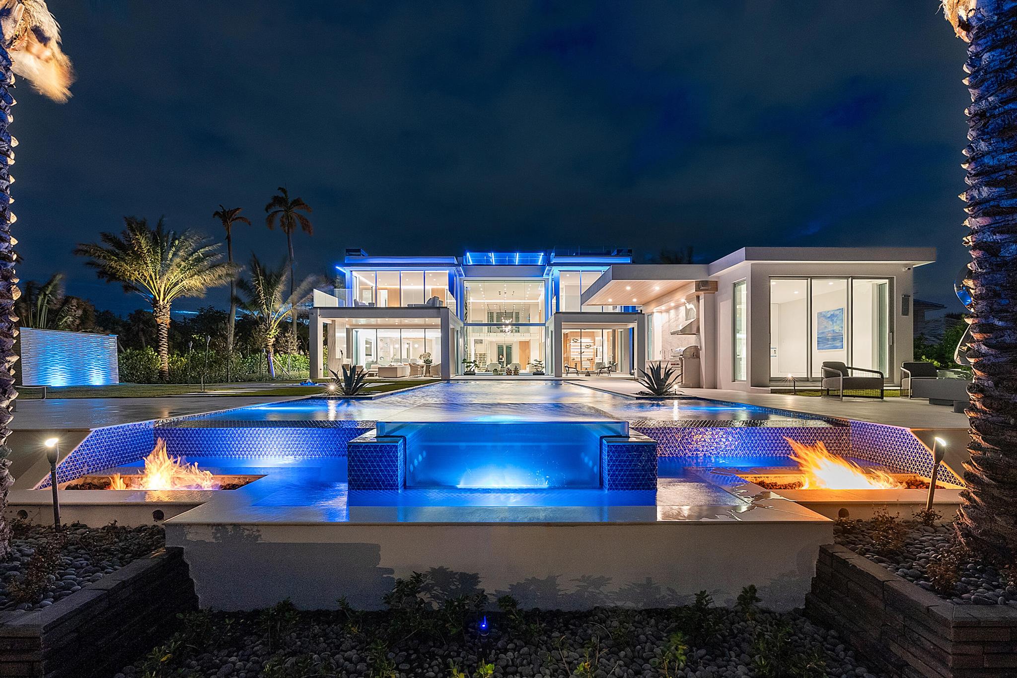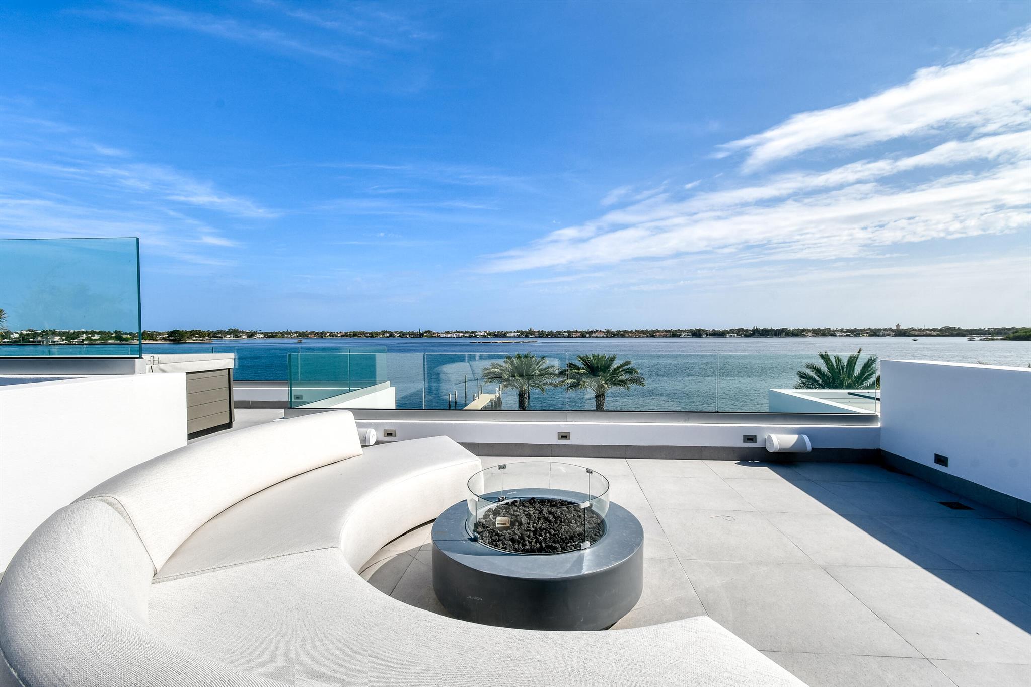 Spectacular waterfront contemporary oasis. Newly completed 7 bedroom, 10 bath beautifully sited on over 1 acre with approx. 10,000 sq. ft of light filled living space. Exciting features include: chef's kitchen with Wolf/SubZero appliances, 450 bottle wine room, saltwater pool, cabana, dock, large office with water view, media room, 3-car garage, glass elevator, roof top lounge with summer kitchen and fire pit. The luxurious primary suite has dual baths and closets and overlooks the Intracoastal waterway. Additional smart home features include: Control4 automation, Lutron lighting & shades, invisible speakers, a high-end security system, a 125-kW whole home generator, and a 30.8-kW solar system. An exceptional home in which to live.