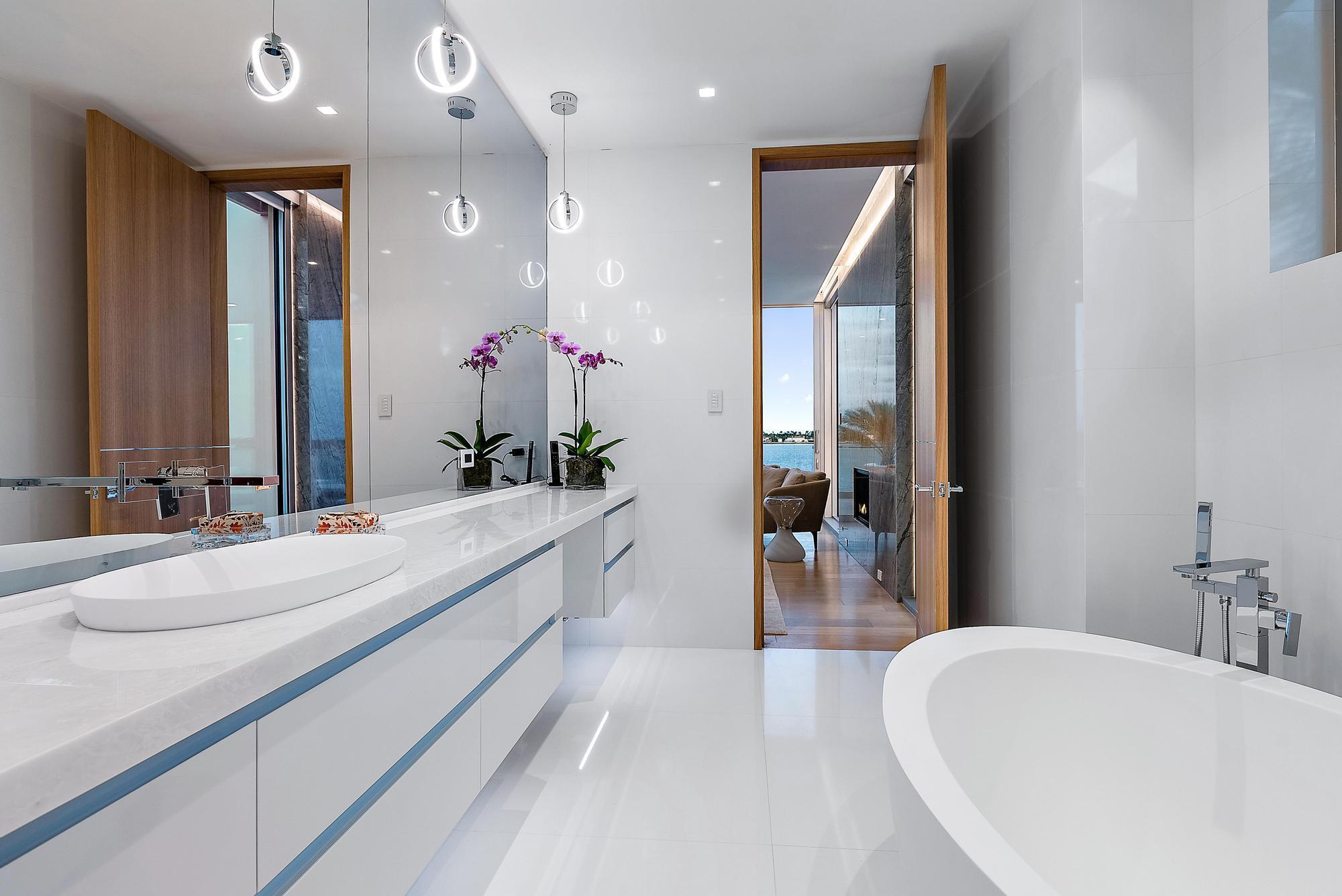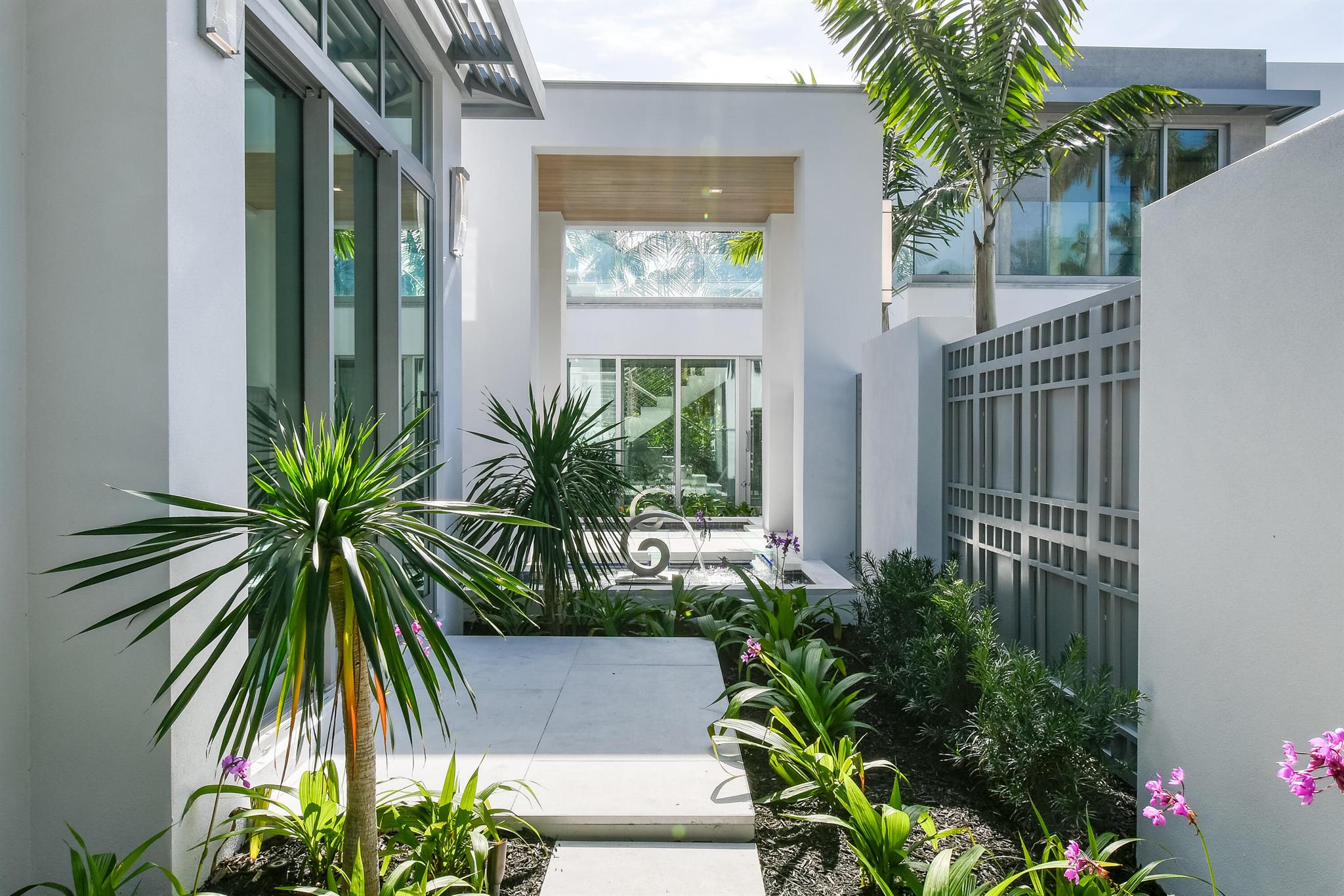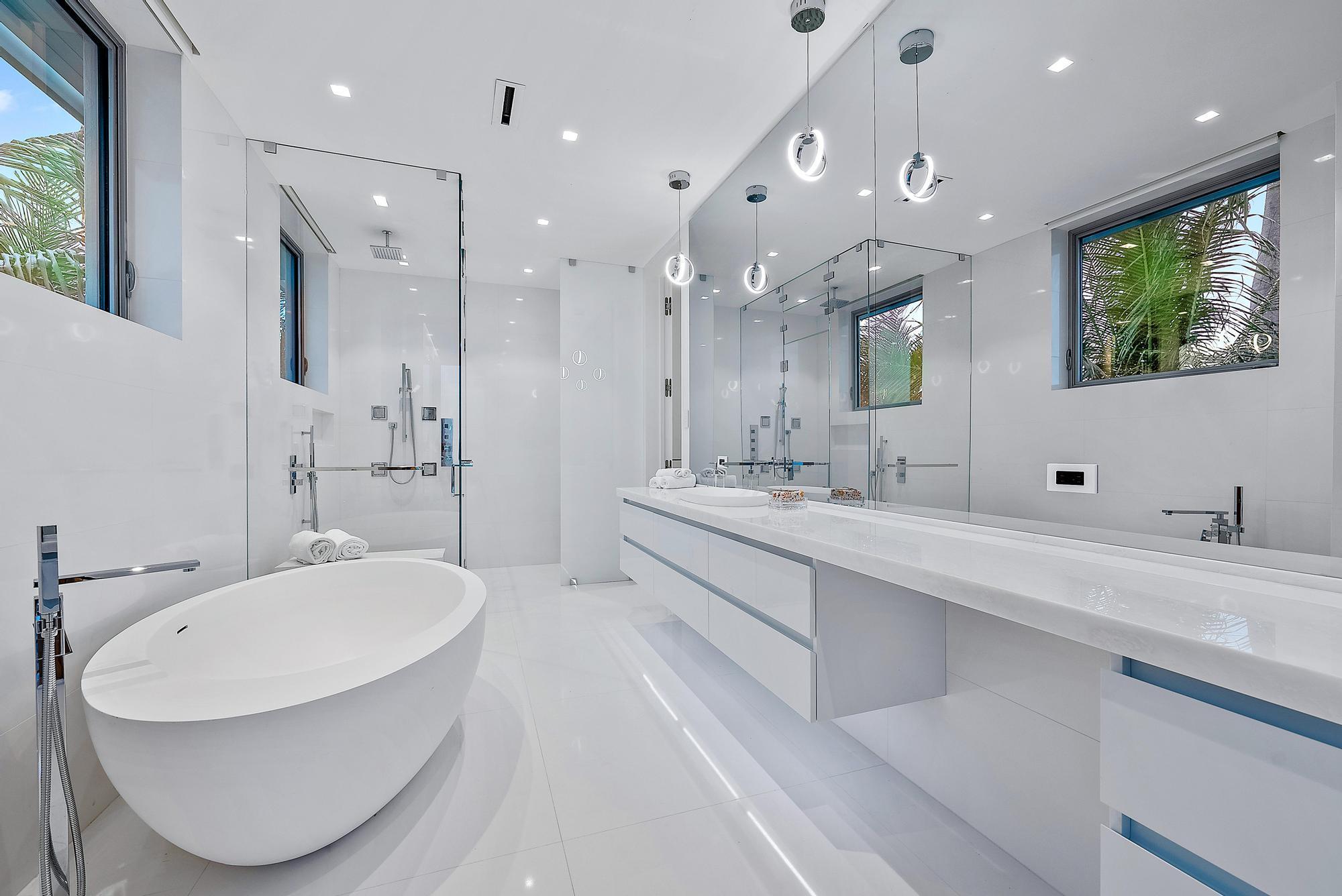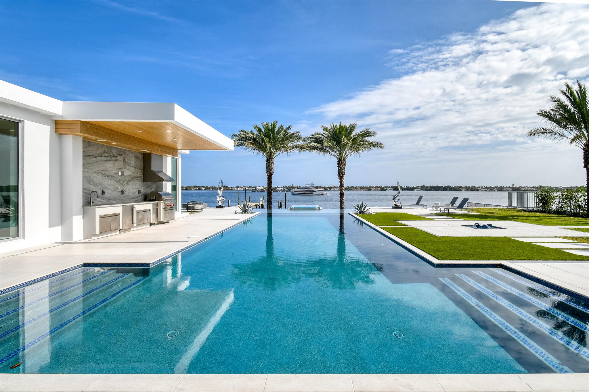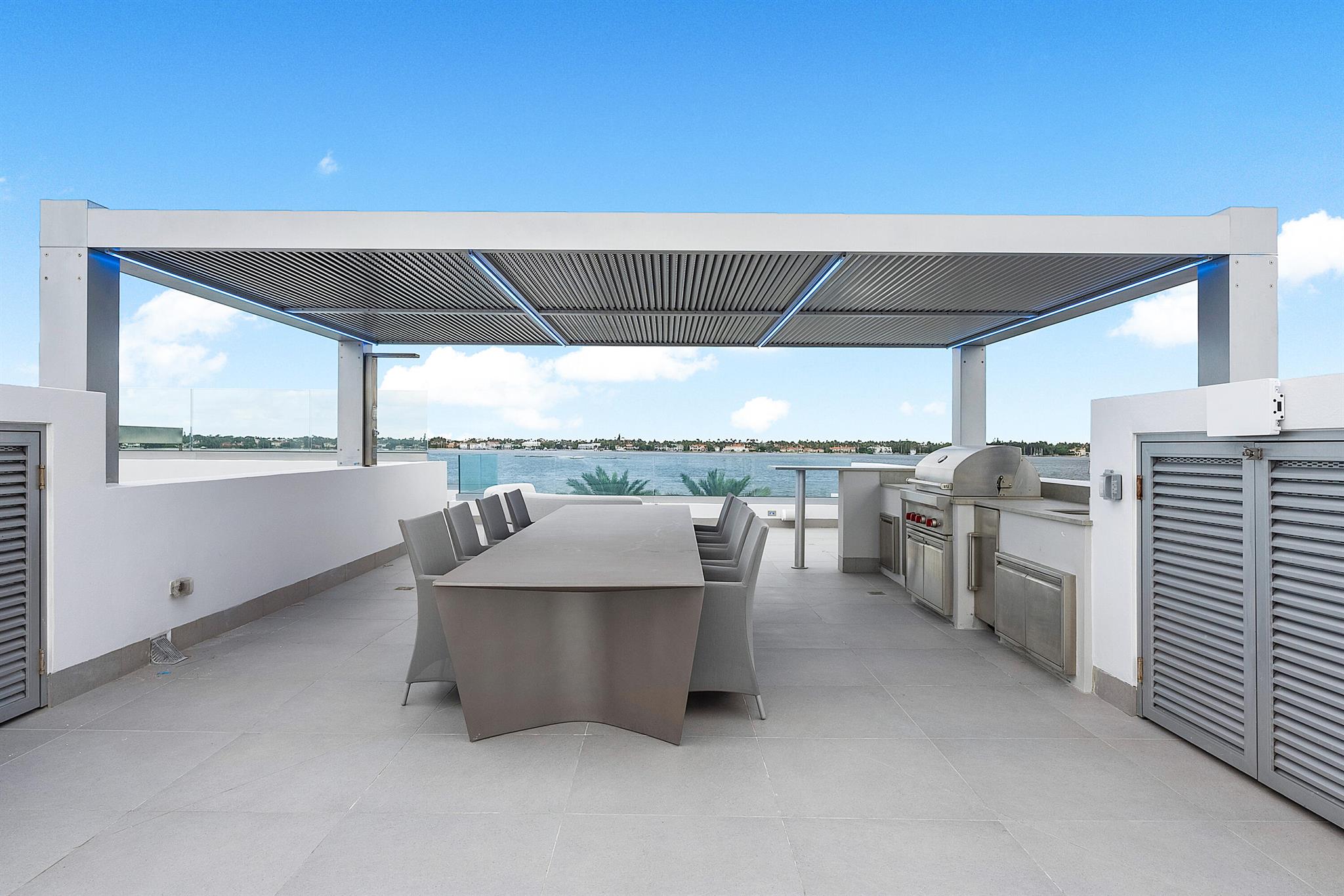 Spectacular waterfront contemporary oasis. Newly completed 7 bedroom, 10 bath beautifully sited on over 1 acre with approx. 10,000 sq. ft of light filled living space. Exciting features include: chef's kitchen with Wolf/SubZero appliances, 450 bottle wine room, saltwater pool, cabana, dock, large office with water view, media room, 3-car garage, glass elevator, roof top lounge with summer kitchen and fire pit. The luxurious primary suite has dual baths and closets and overlooks the Intracoastal waterway. Additional smart home features include: Control4 automation, Lutron lighting & shades, invisible speakers, a high-end security system, a 125-kW whole home generator, and a 30.8-kW solar system. An exceptional home in which to live.