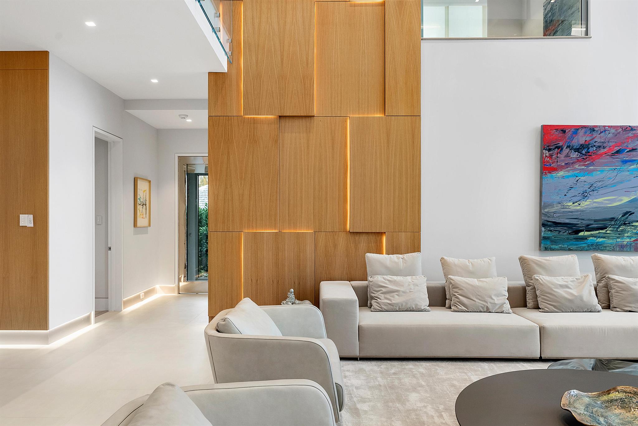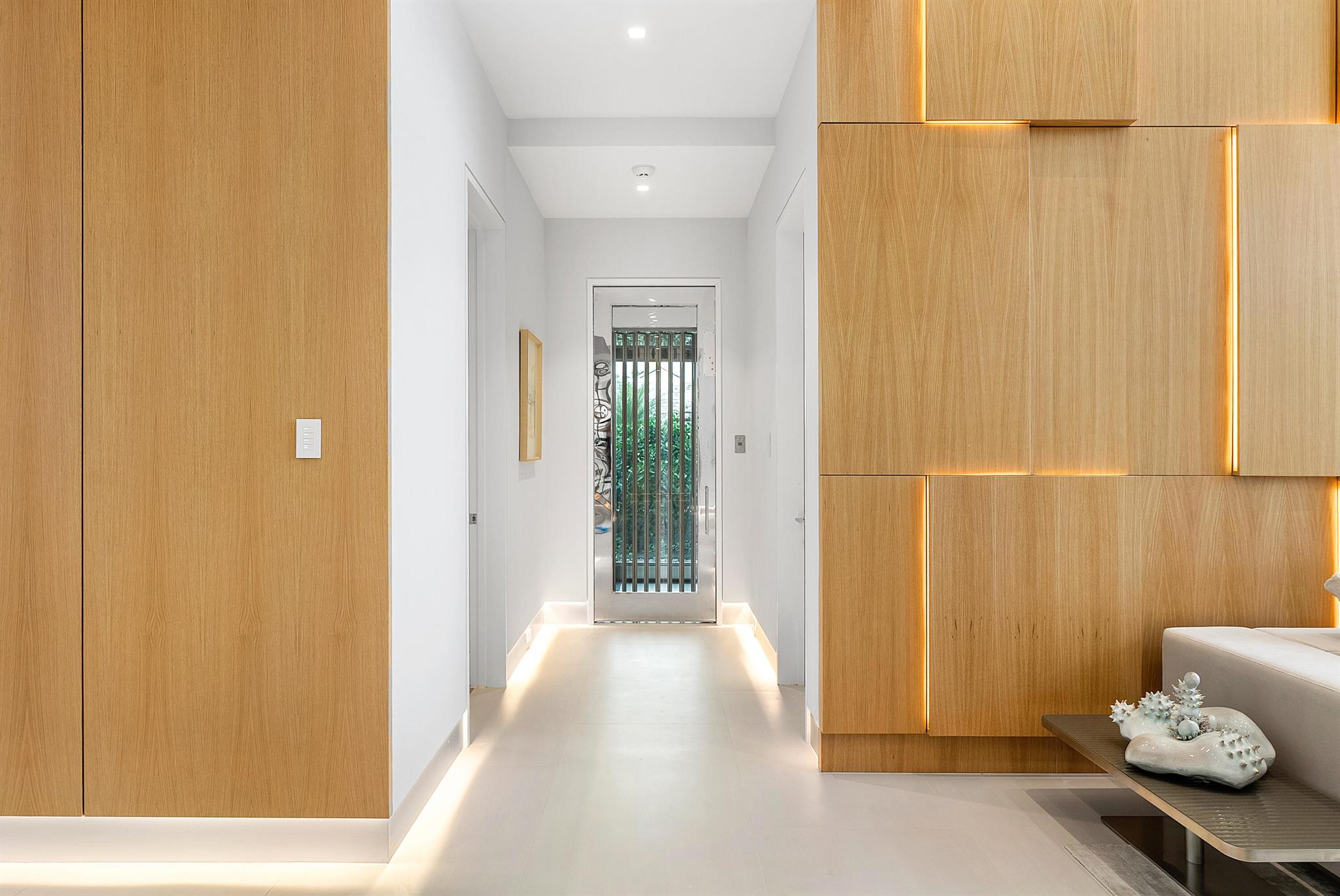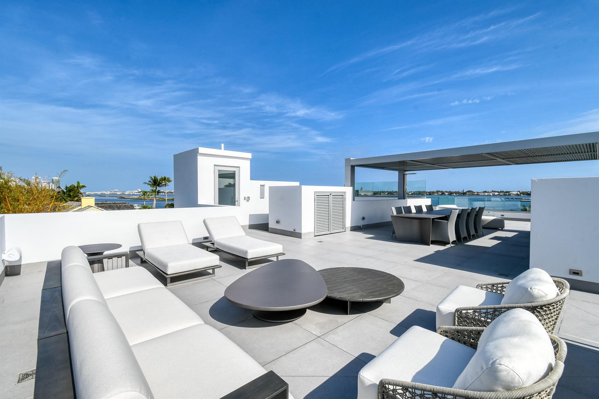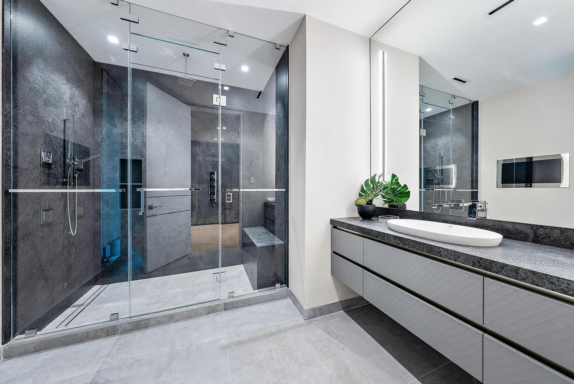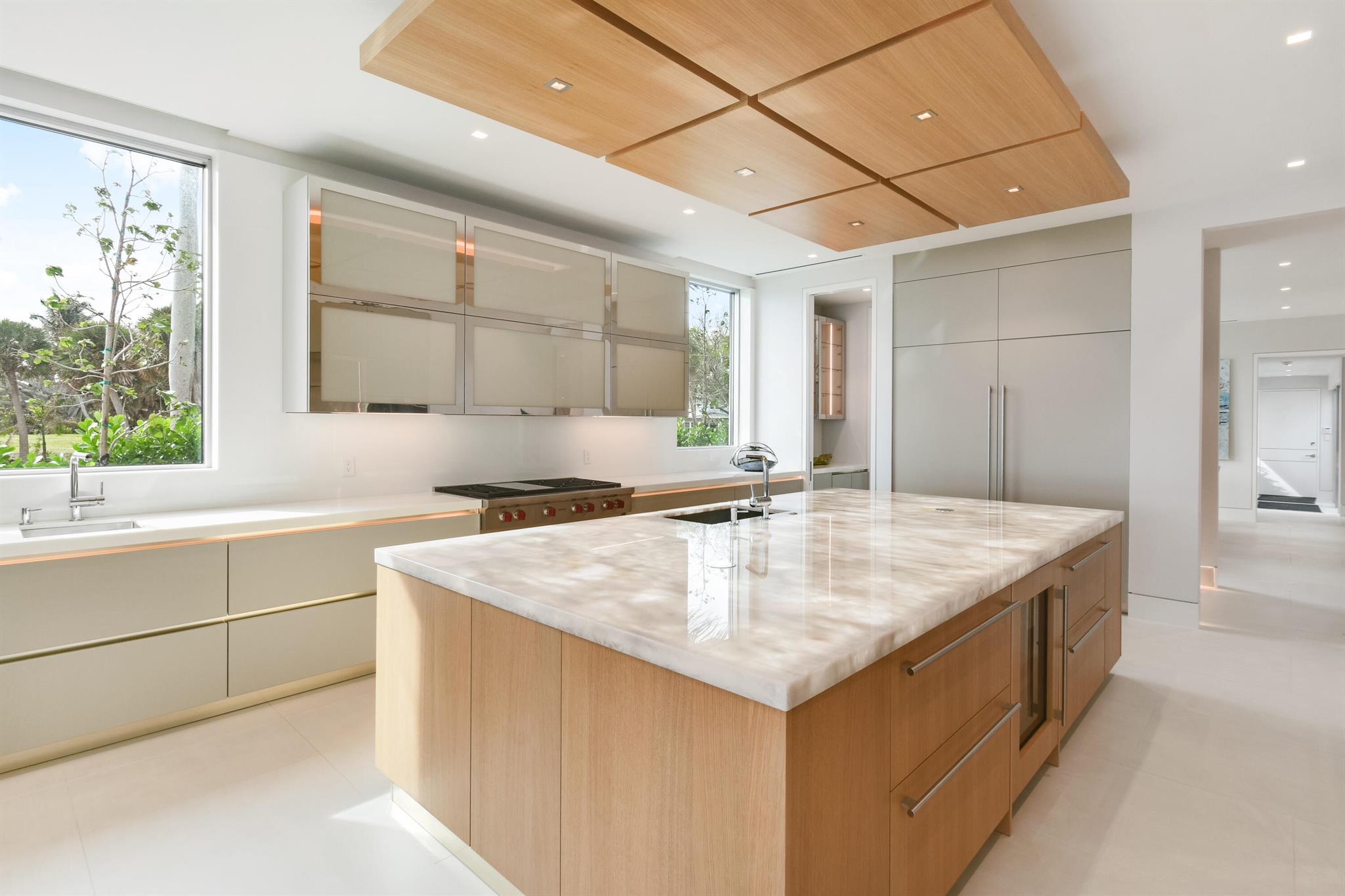 Spectacular waterfront contemporary oasis. Newly completed 7 bedroom, 10 bath beautifully sited on over 1 acre with approx. 10,000 sq. ft of light filled living space. Exciting features include: chef's kitchen with Wolf/SubZero appliances, 450 bottle wine room, saltwater pool, cabana, dock, large office with water view, media room, 3-car garage, glass elevator, roof top lounge with summer kitchen and fire pit. The luxurious primary suite has dual baths and closets and overlooks the Intracoastal waterway. Additional smart home features include: Control4 automation, Lutron lighting & shades, invisible speakers, a high-end security system, a 125-kW whole home generator, and a 30.8-kW solar system. An exceptional home in which to live.